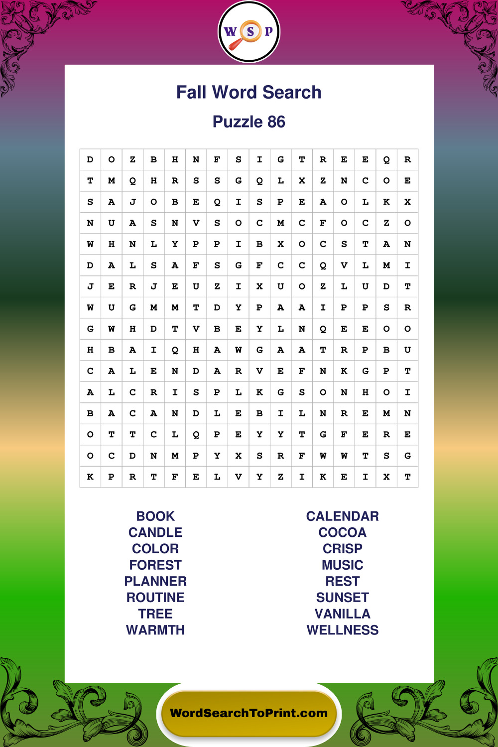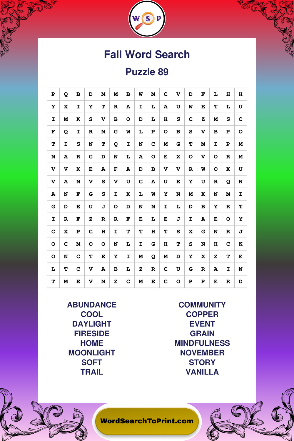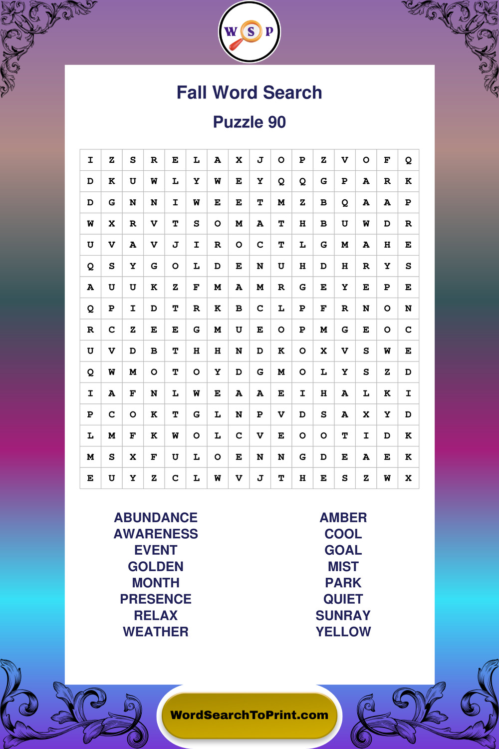 Discover large print Fall wordsearches designed to support relaxed thinking and comfortable reading.