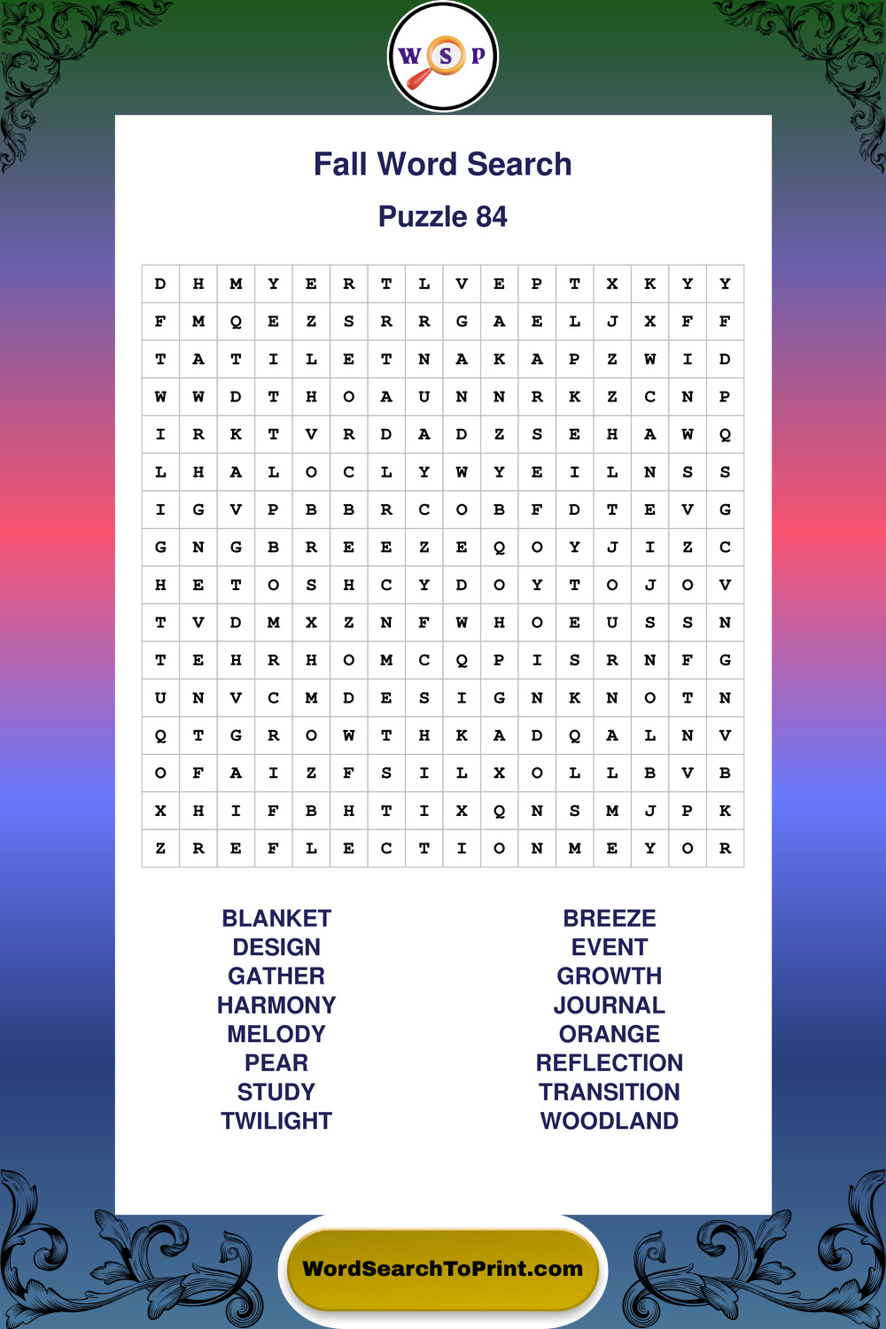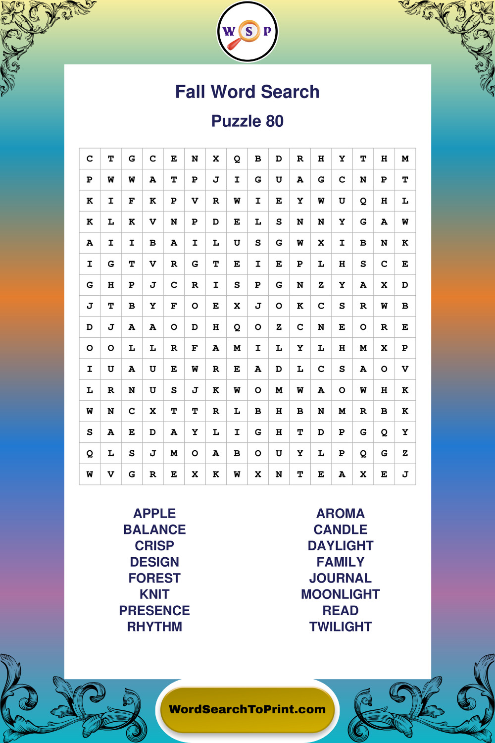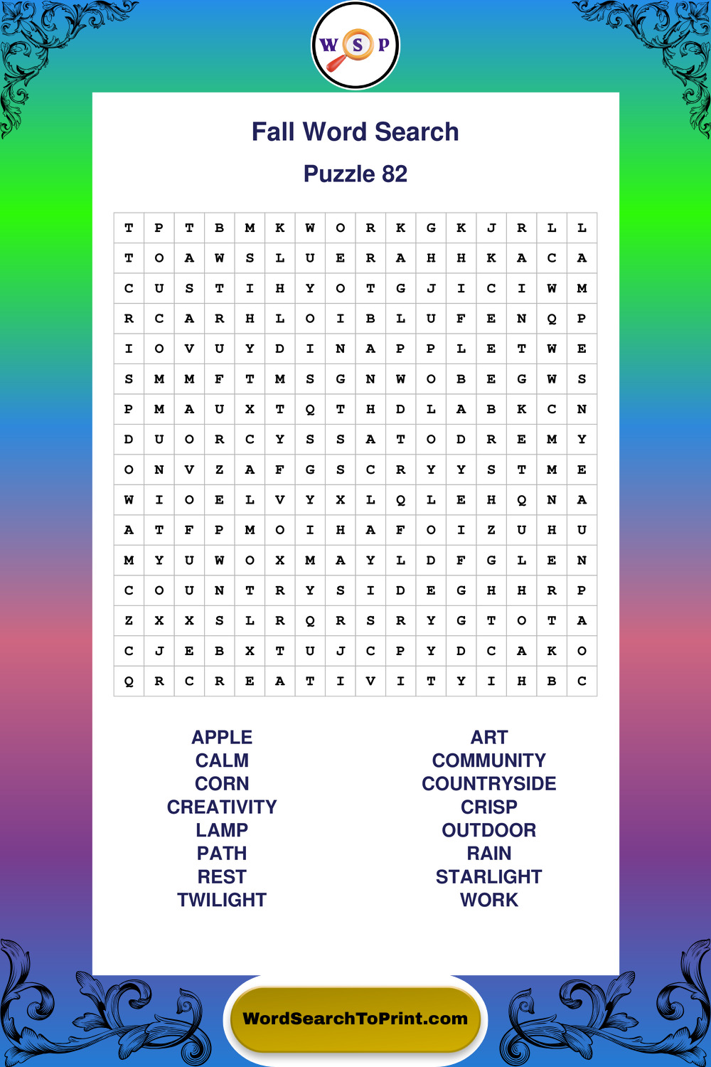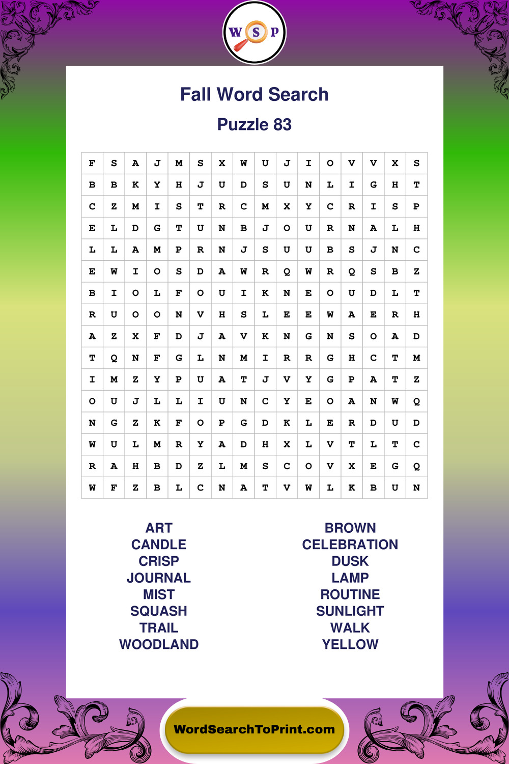 Discover large print Fall wordsearches designed to support relaxed thinking and comfortable reading.