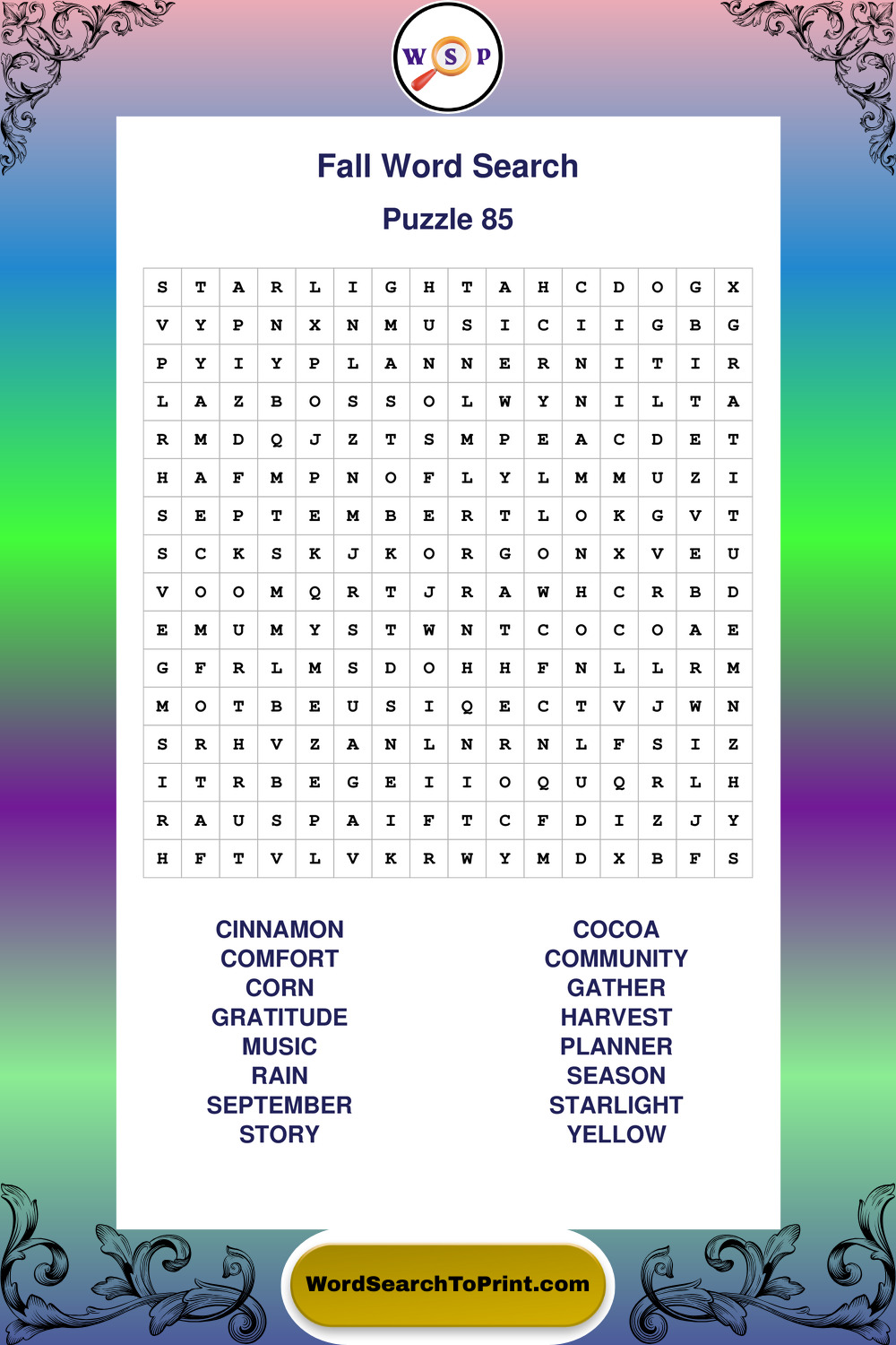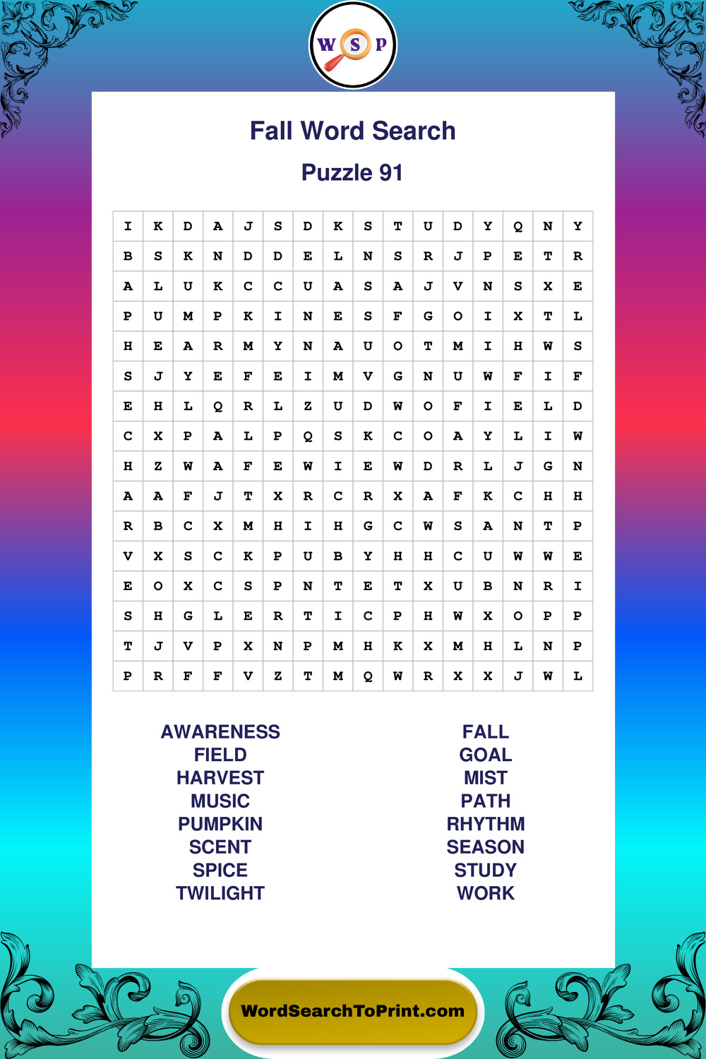 Printable Fall Wordsearch Puzzles