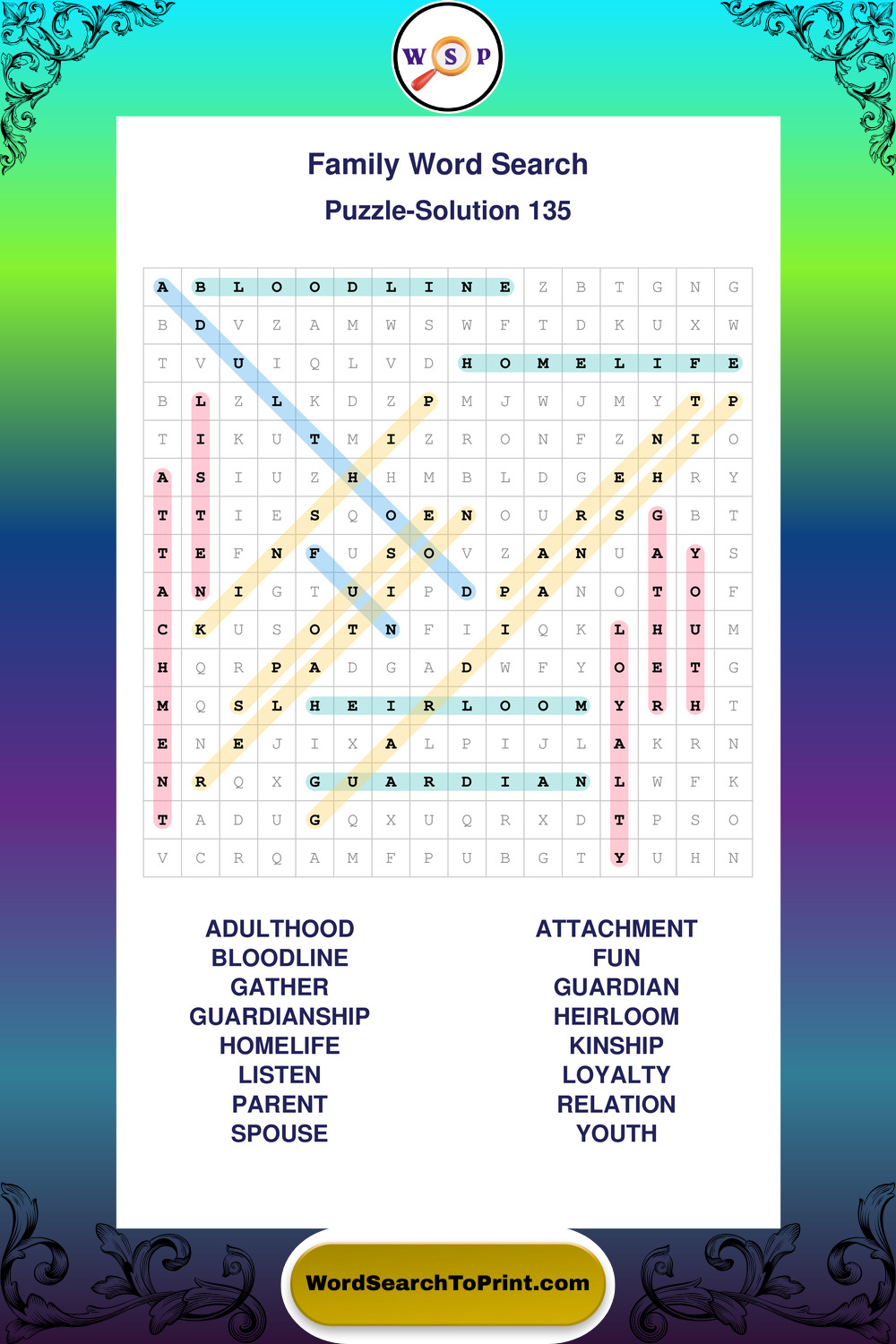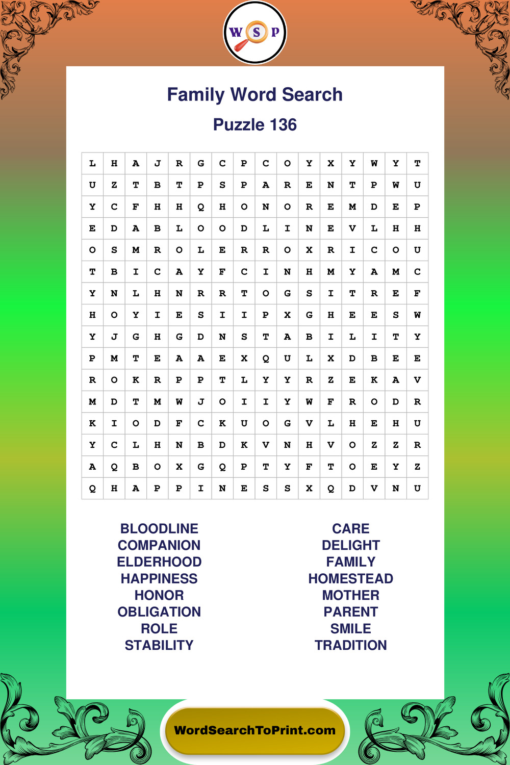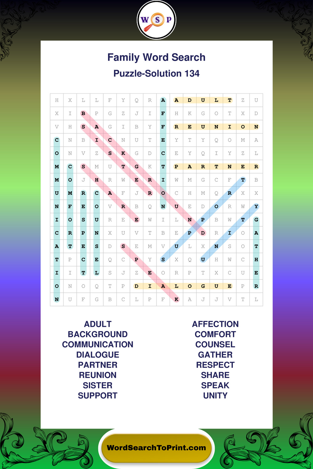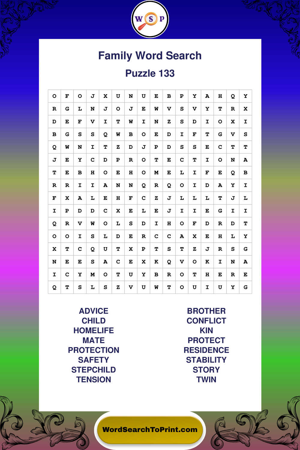 Find easy-to-read large print Family wordsearches designed for peaceful focus and simple, enjoyable solving.