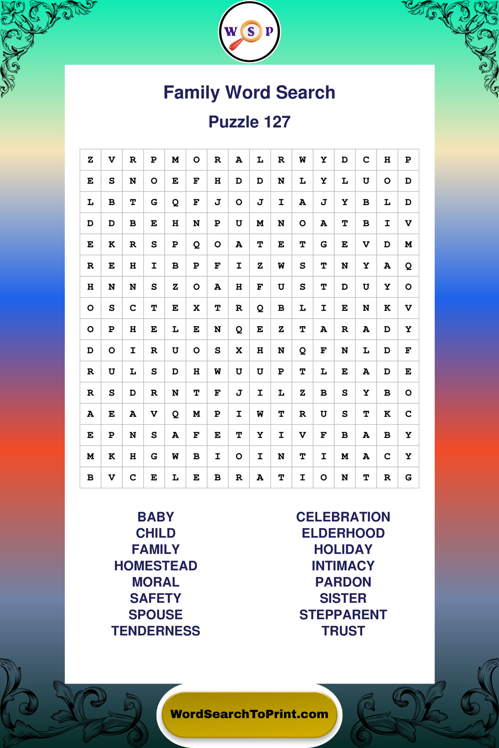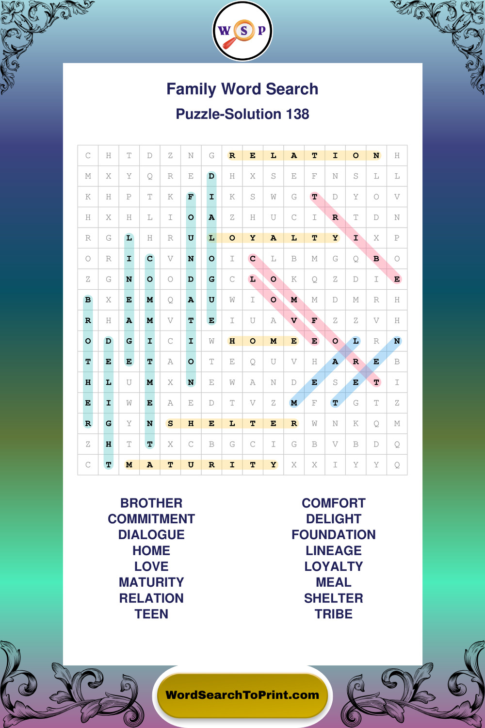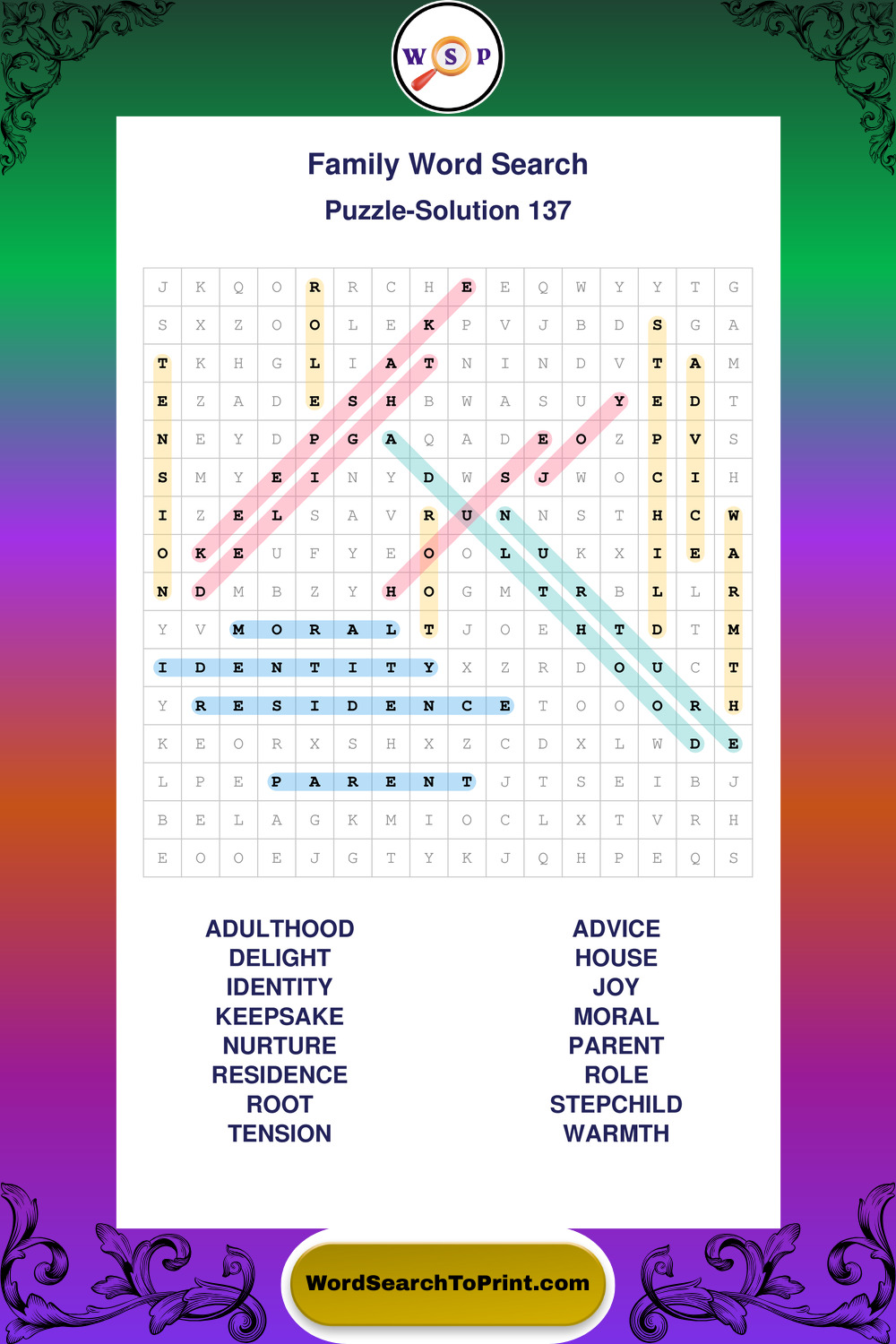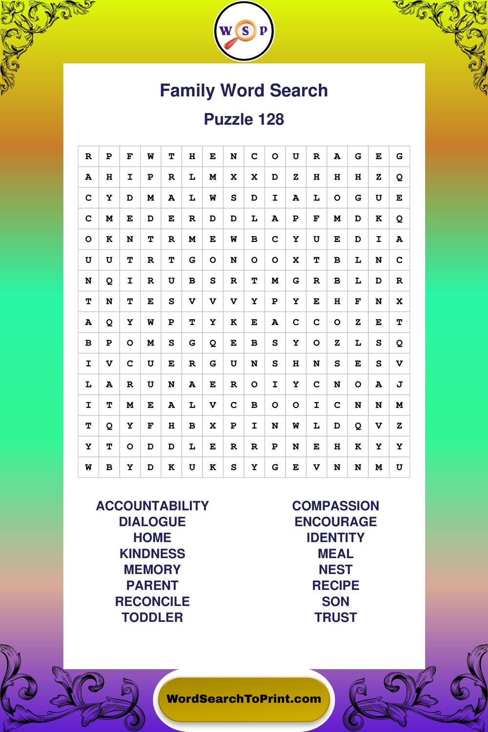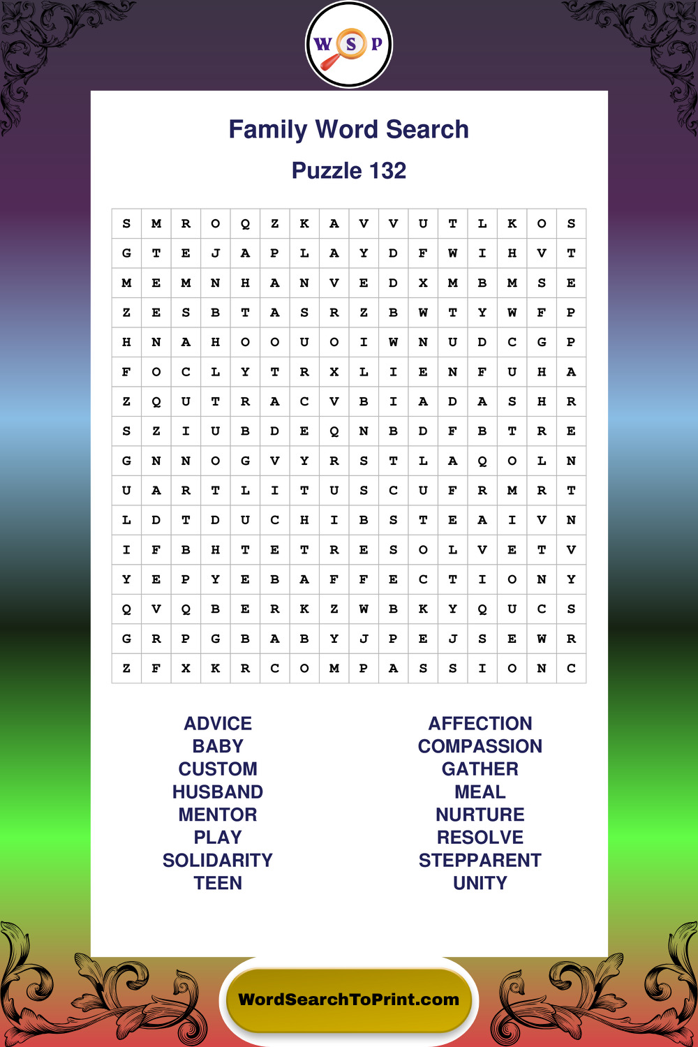Find easy-to-read large print Family wordsearches designed for peaceful focus and simple, enjoyable solving.