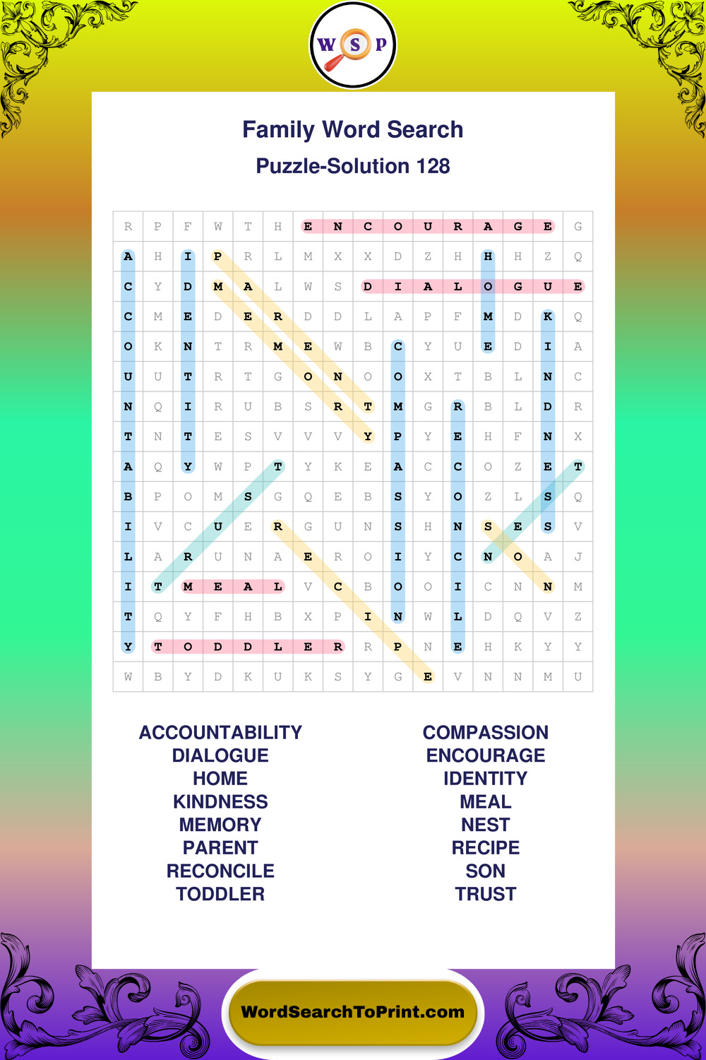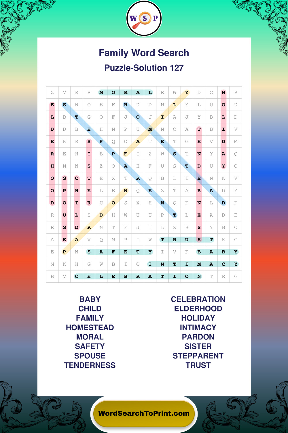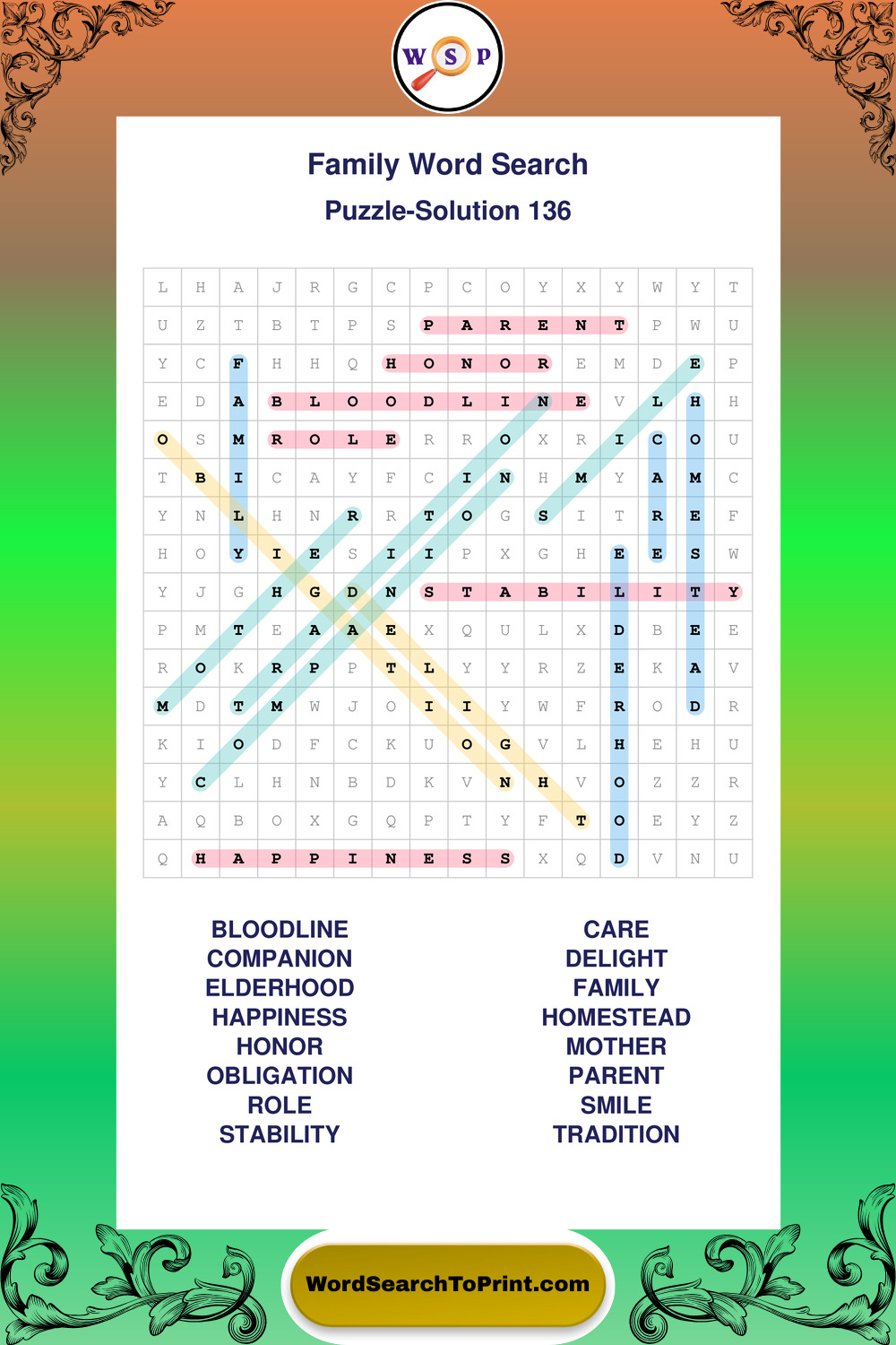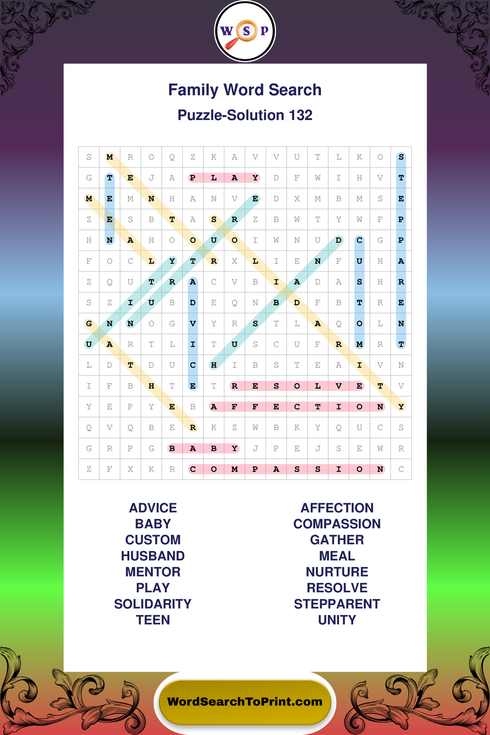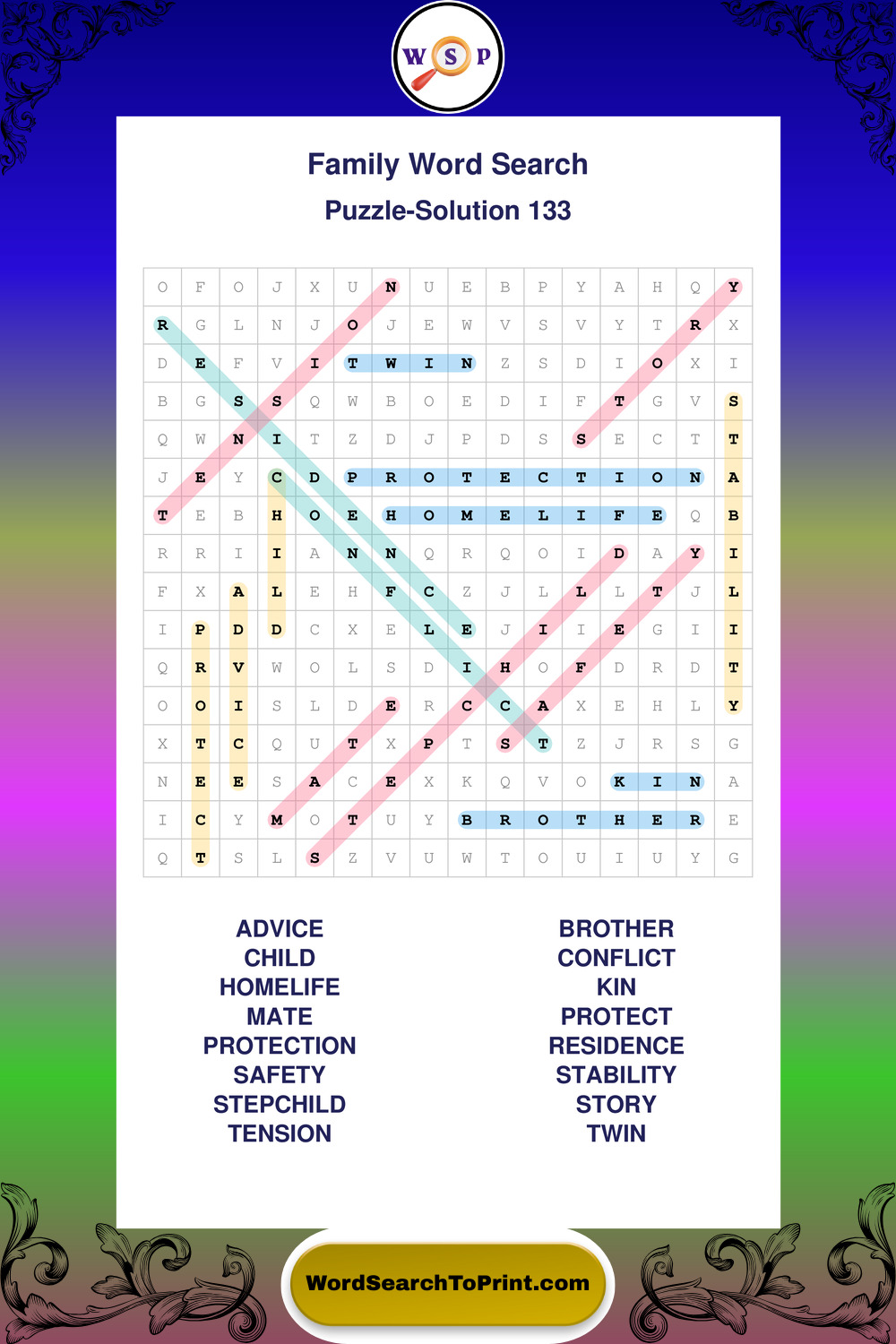 Find easy-to-read large print Family wordsearches designed for peaceful focus and simple, enjoyable solving.