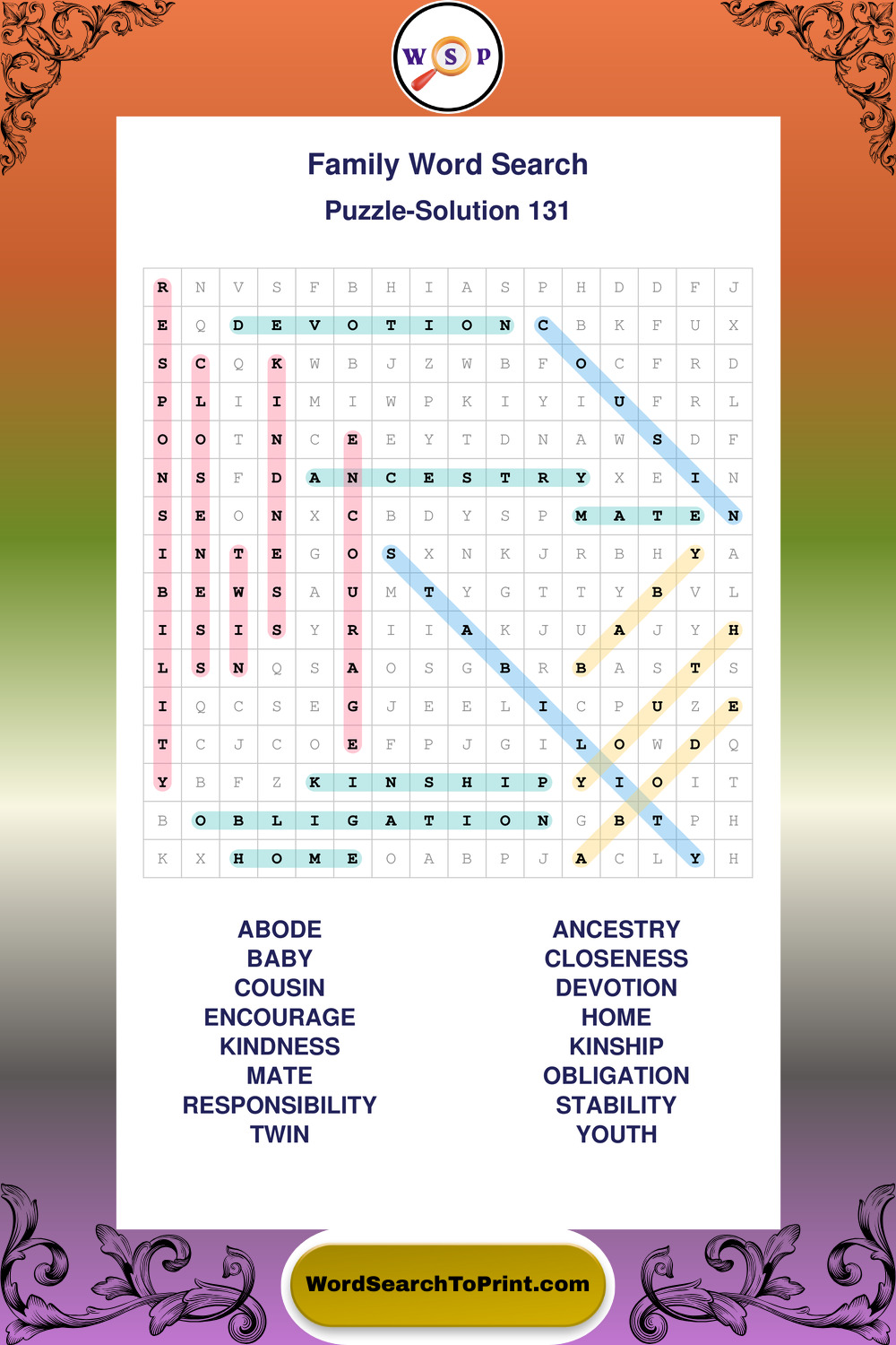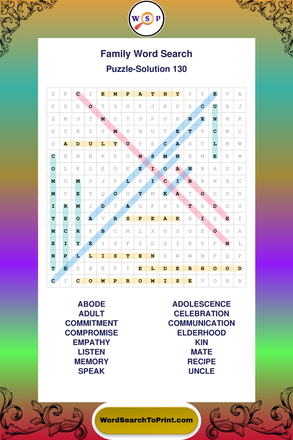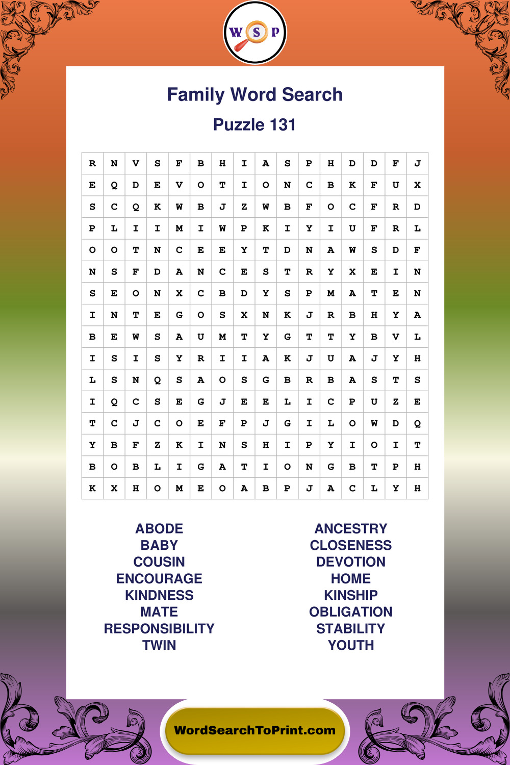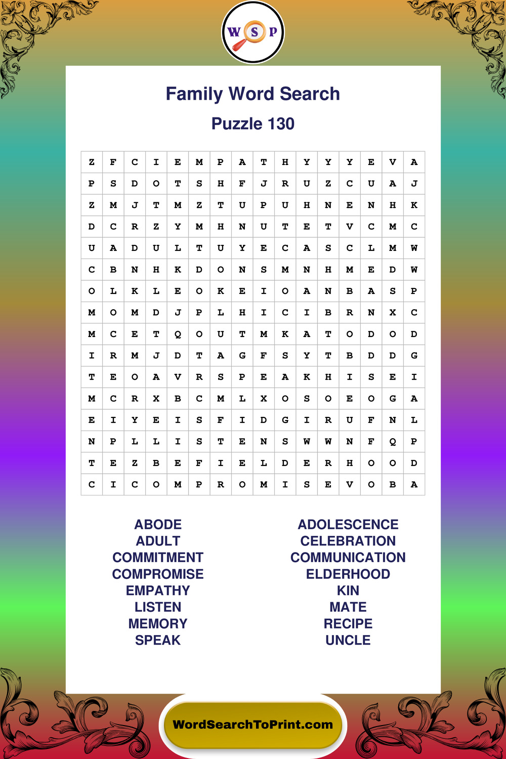 Printable Family Wordsearch Puzzles