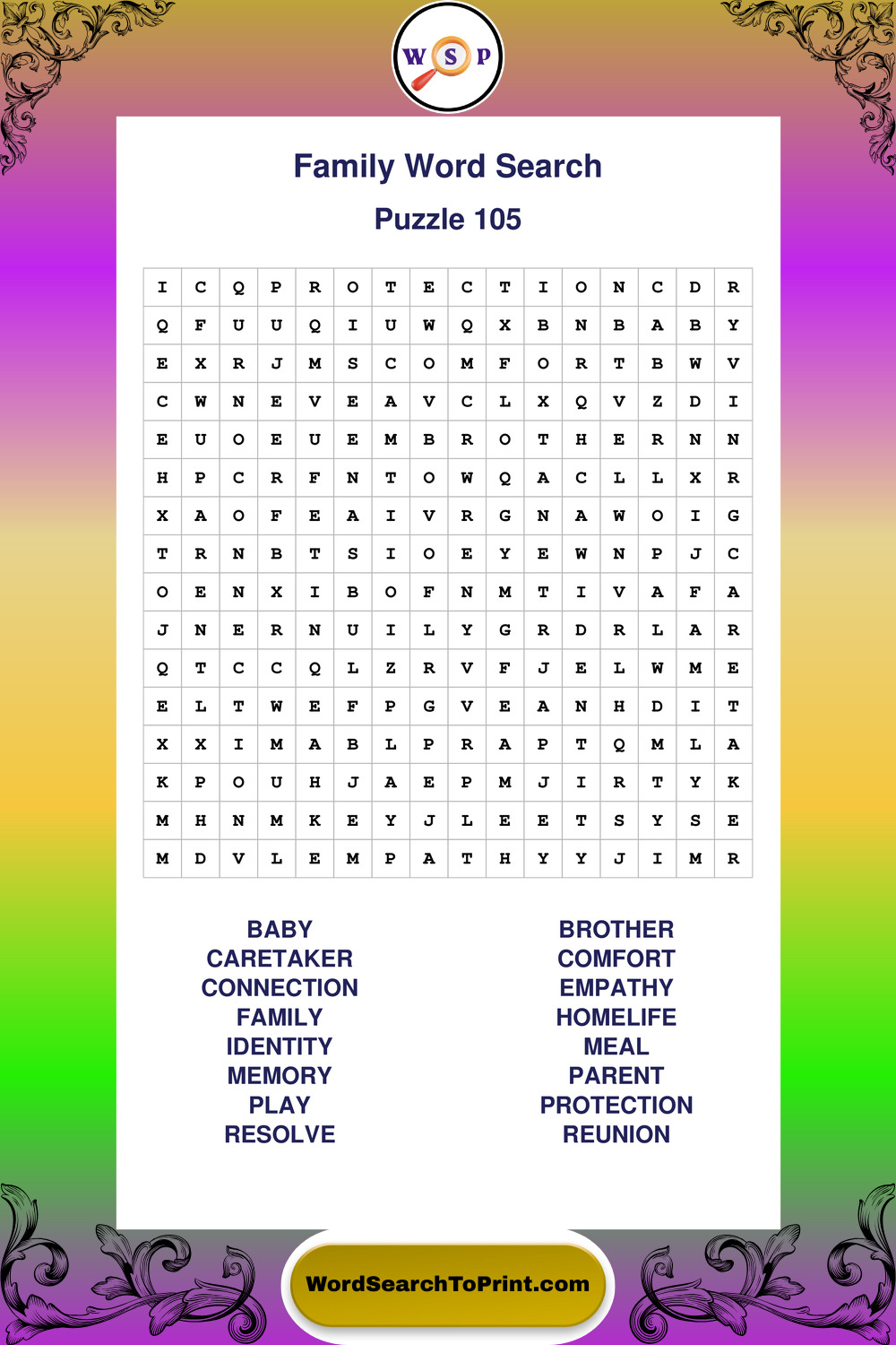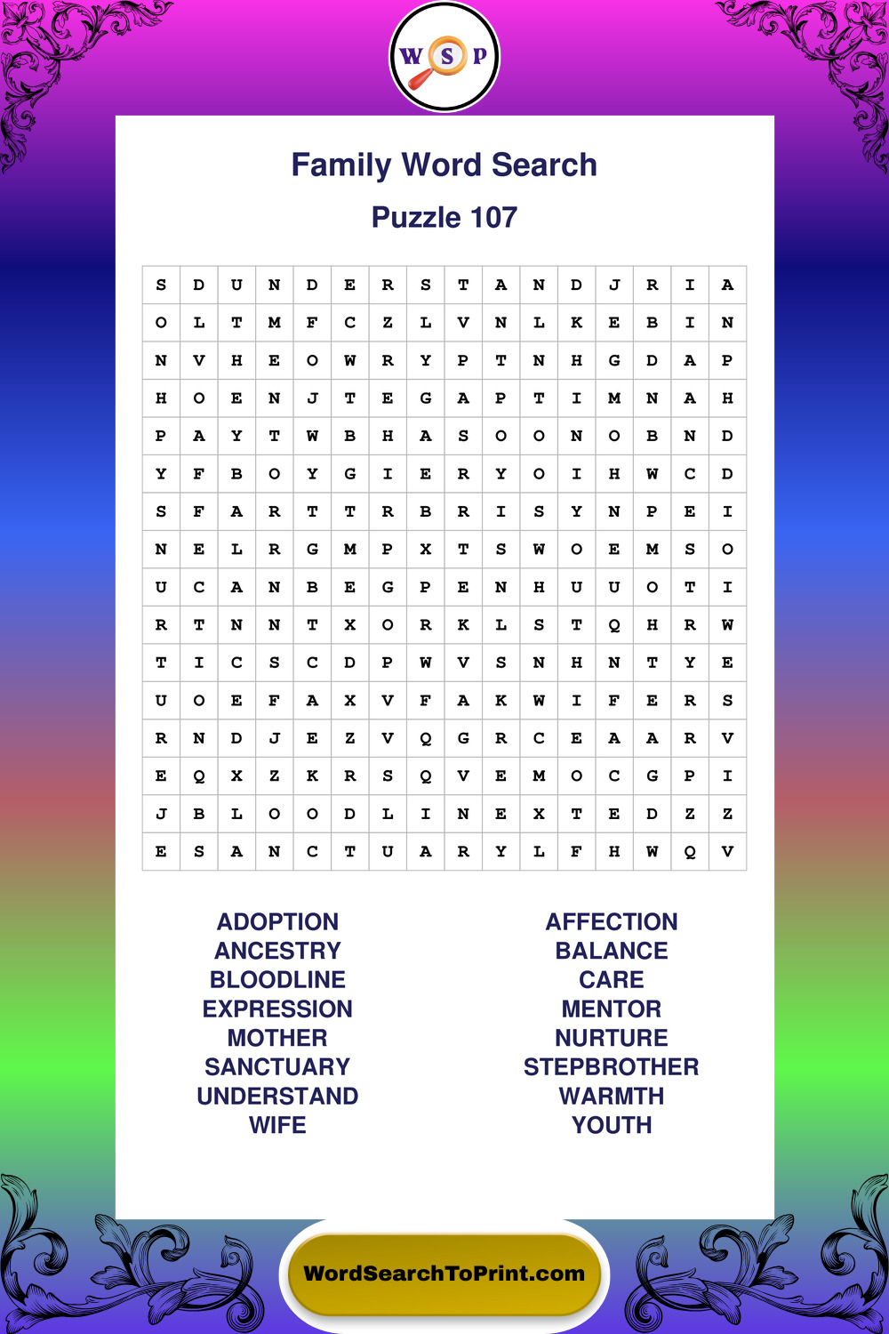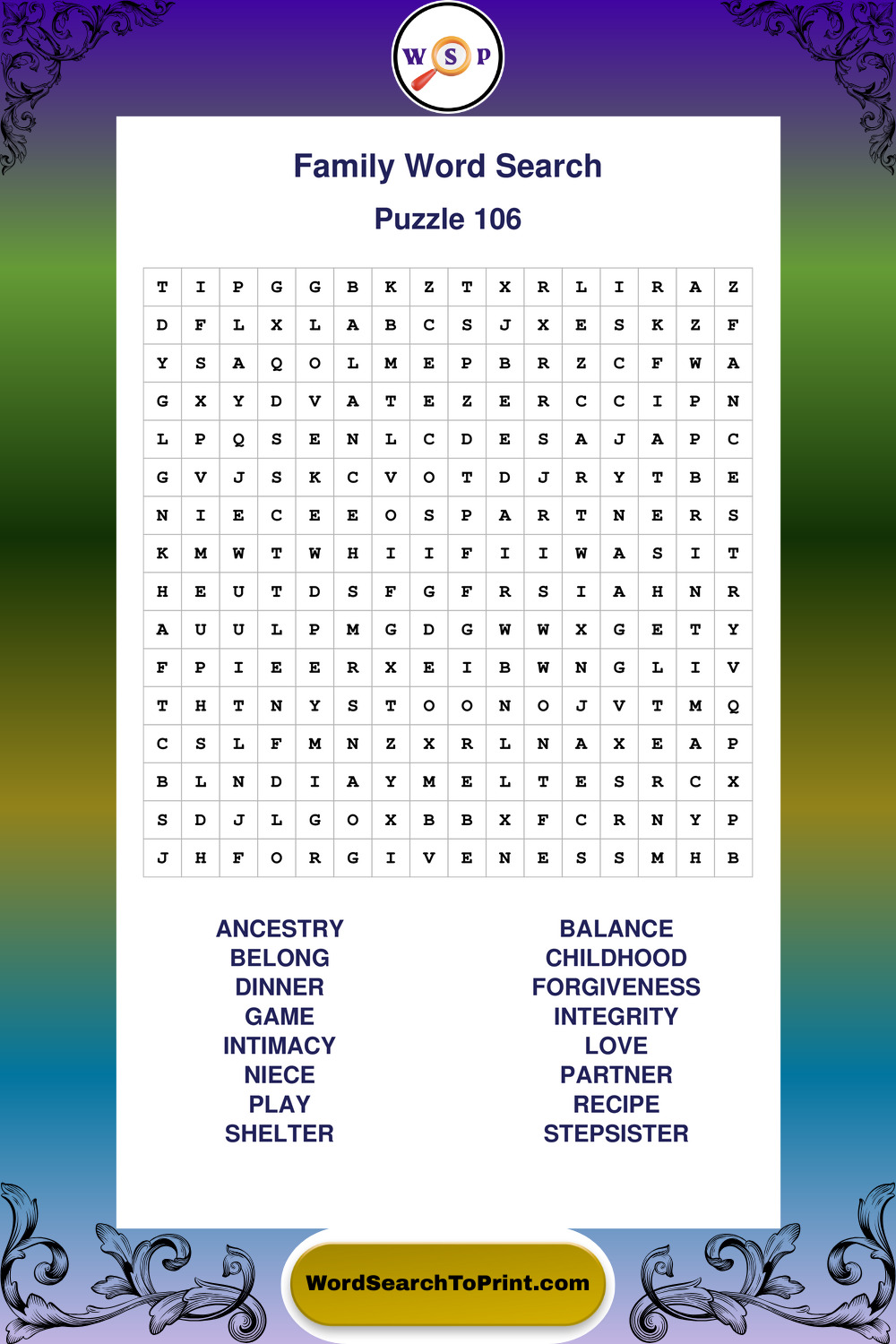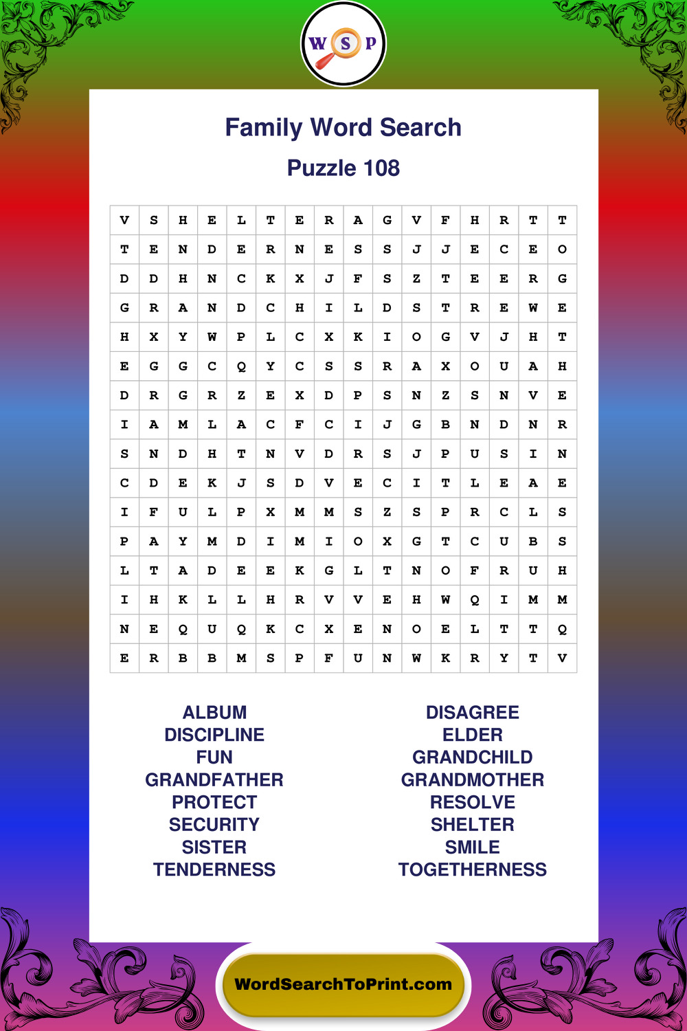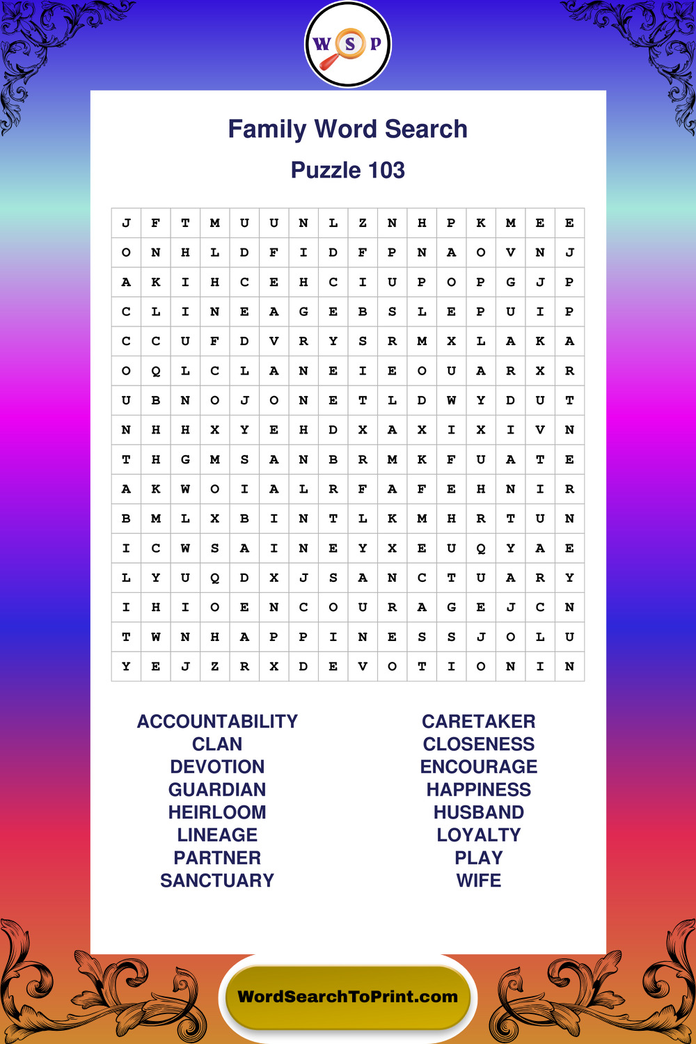 Find easy-to-read large print Family wordsearches designed for peaceful focus and simple, enjoyable solving.