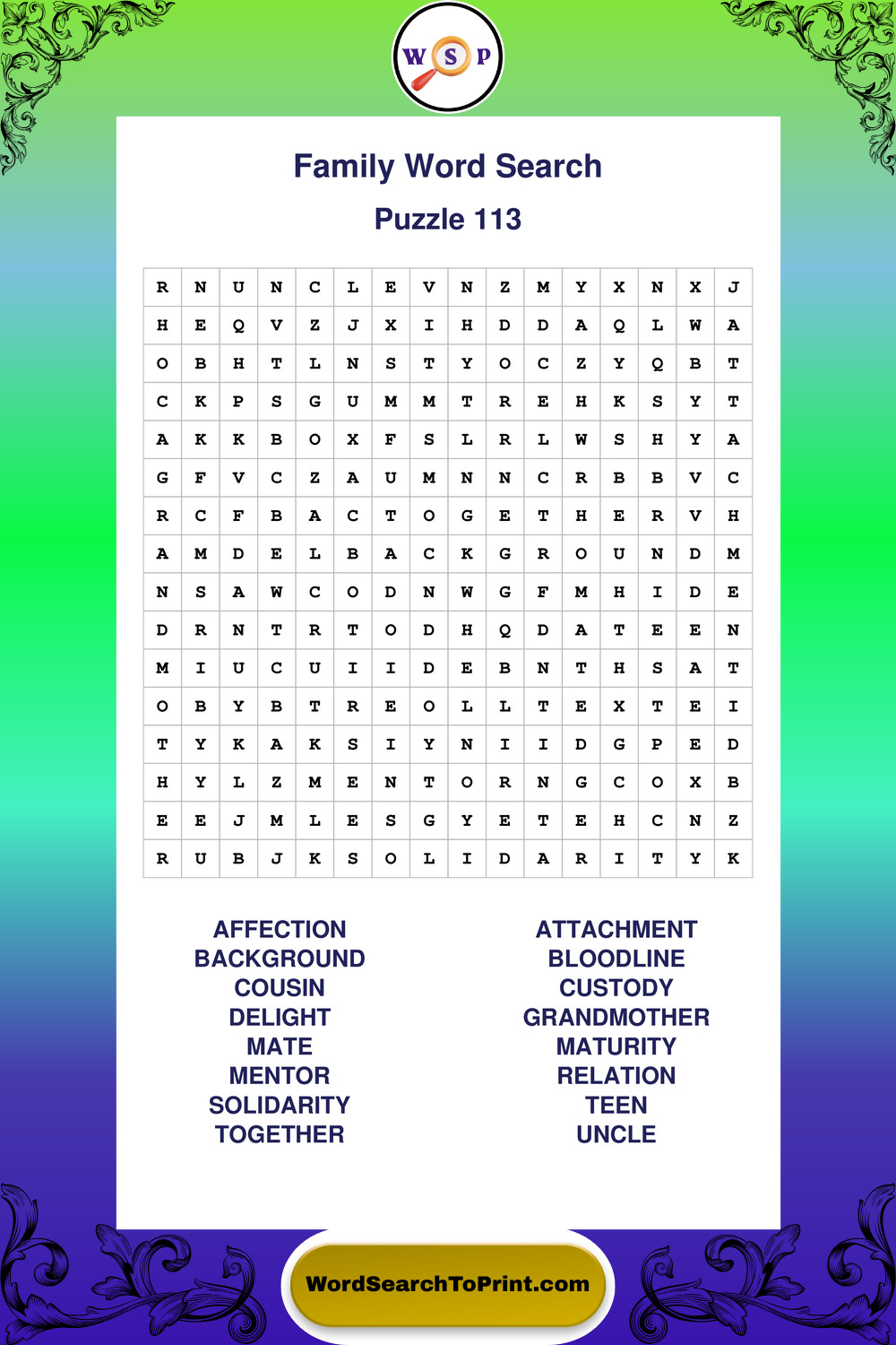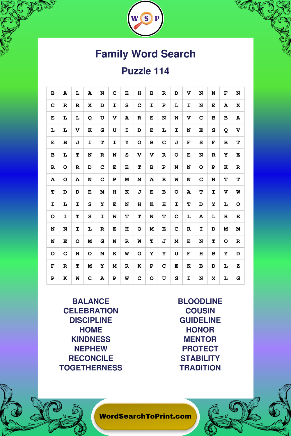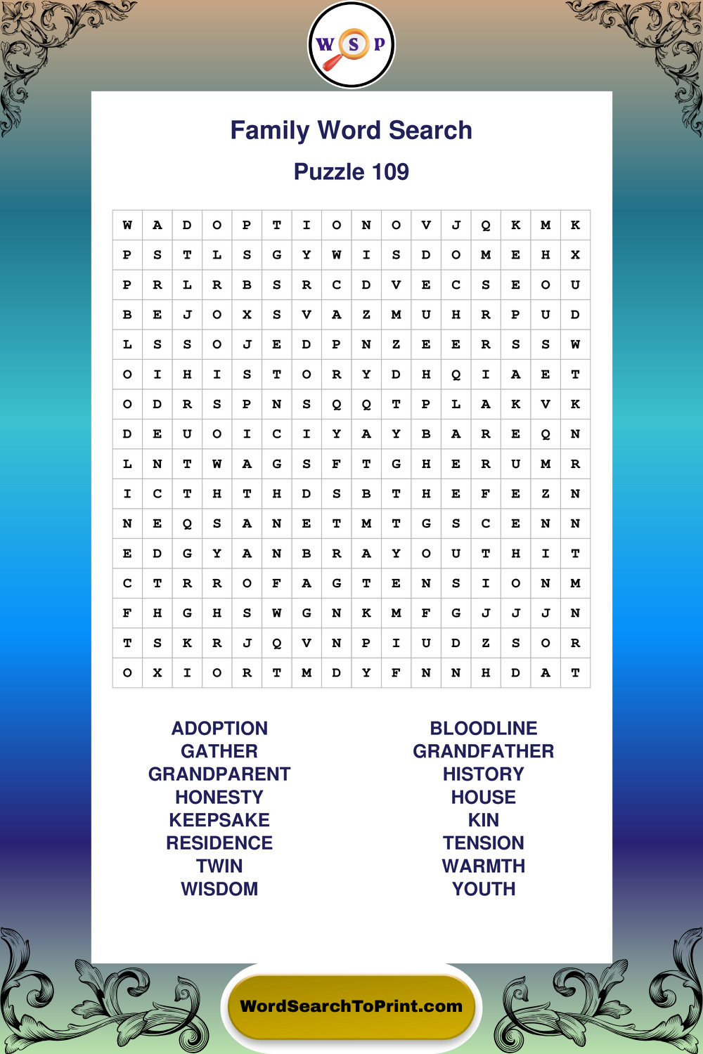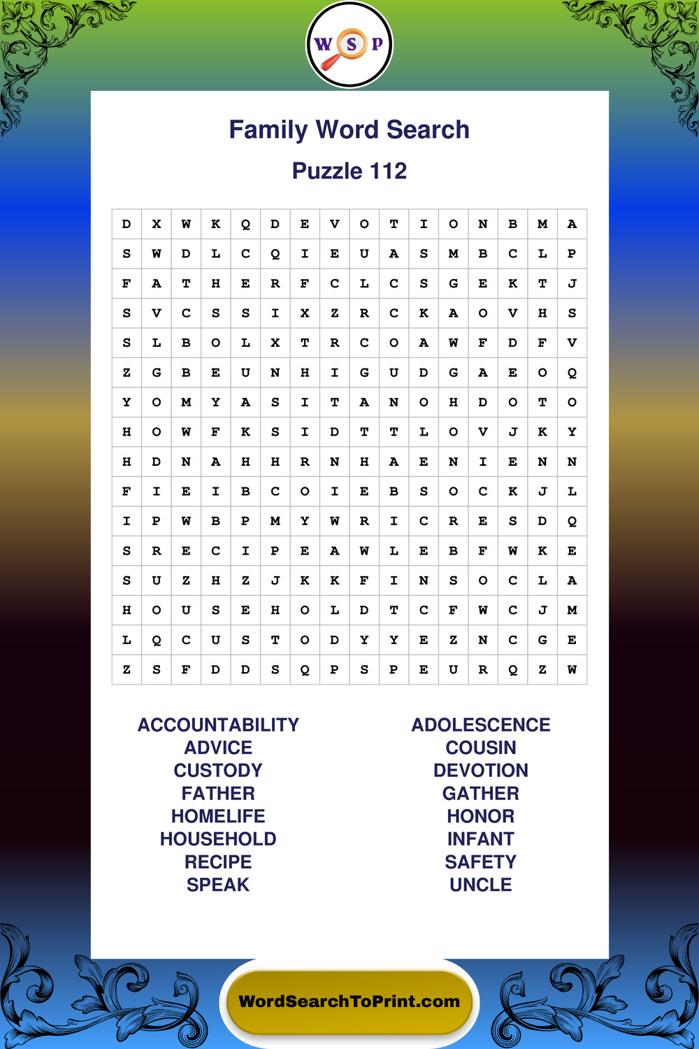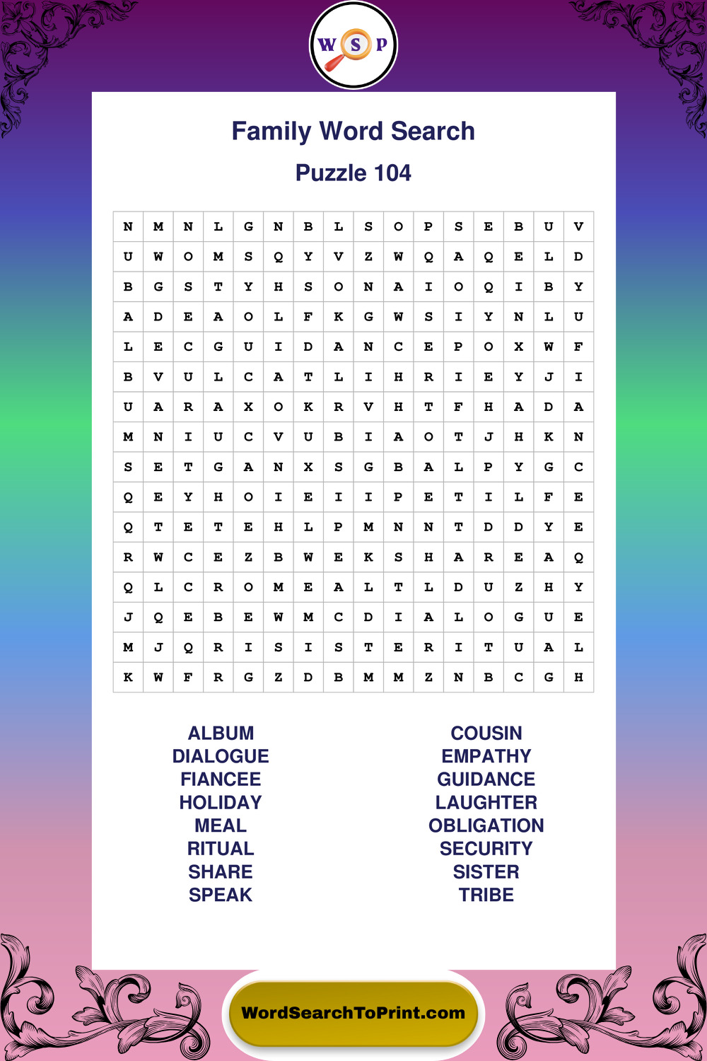 Find easy-to-read large print Family wordsearches designed for peaceful focus and simple, enjoyable solving.