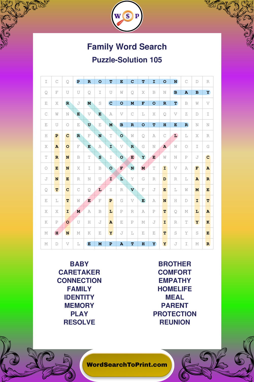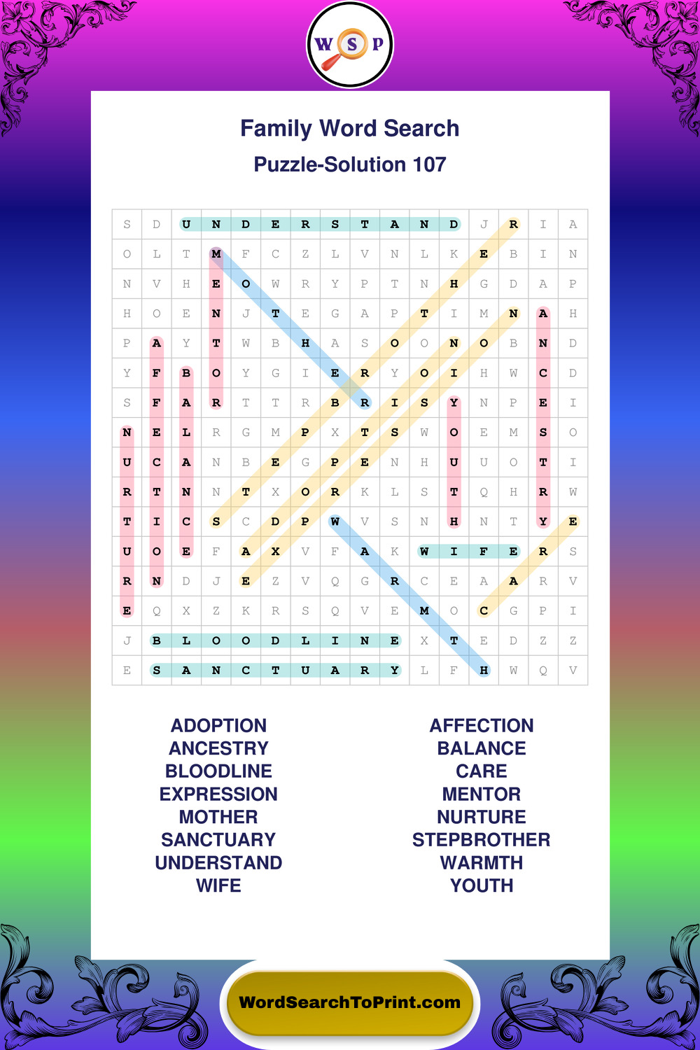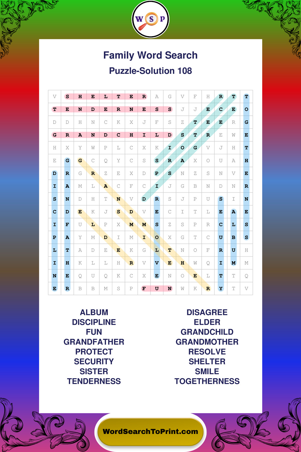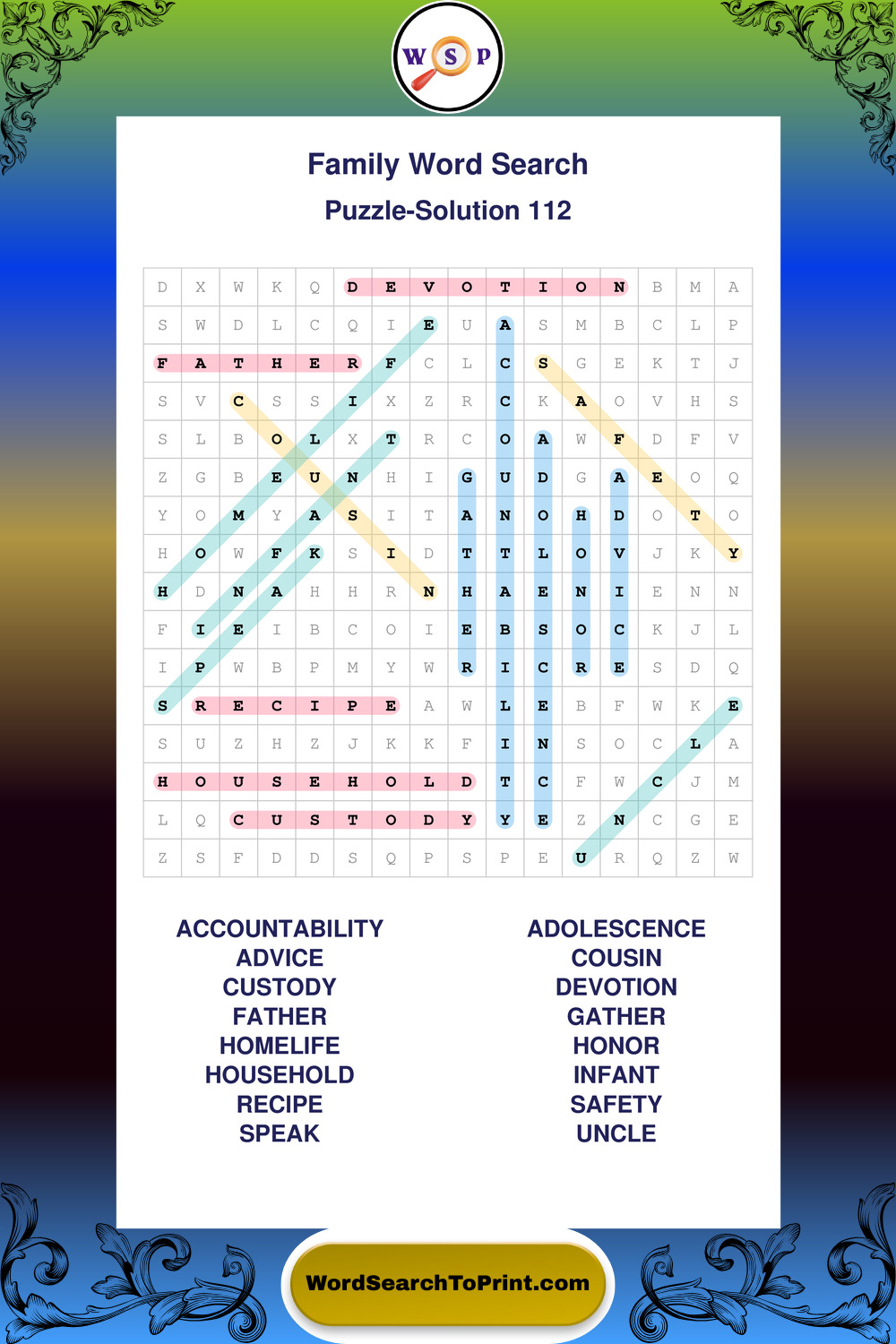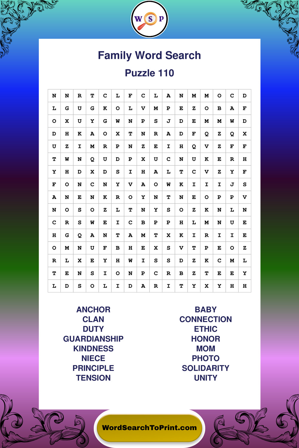 Find easy-to-read large print Family wordsearches designed for peaceful focus and simple, enjoyable solving.