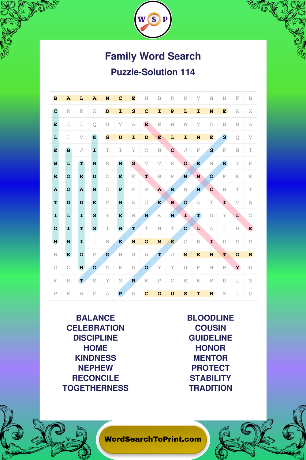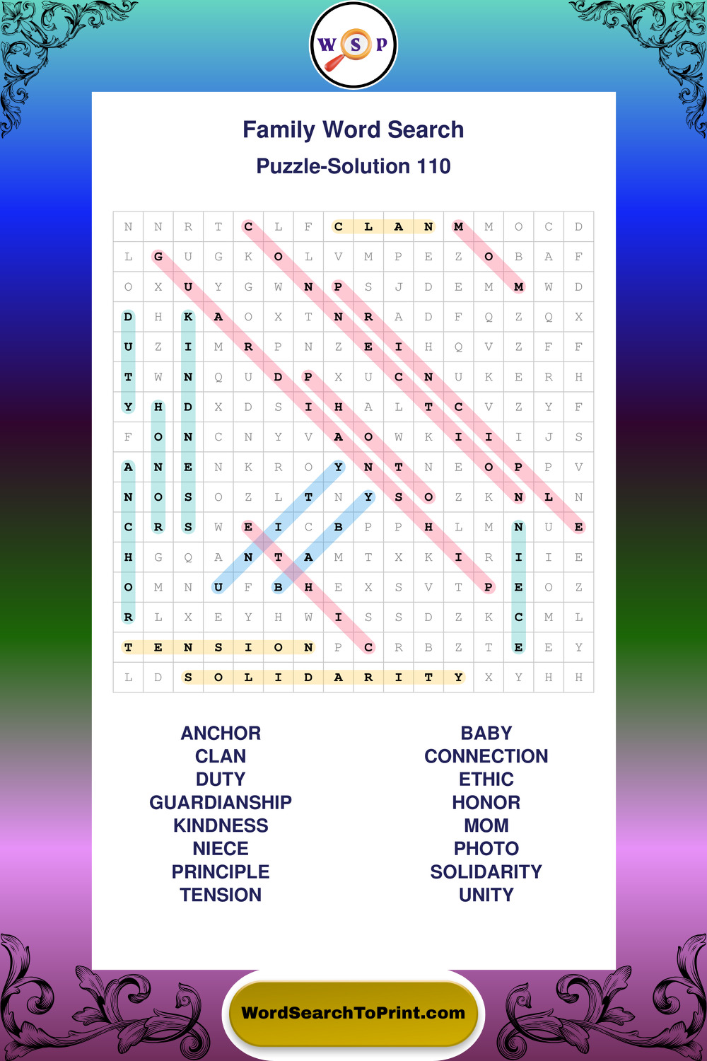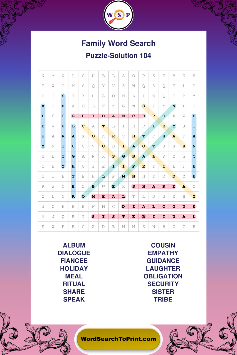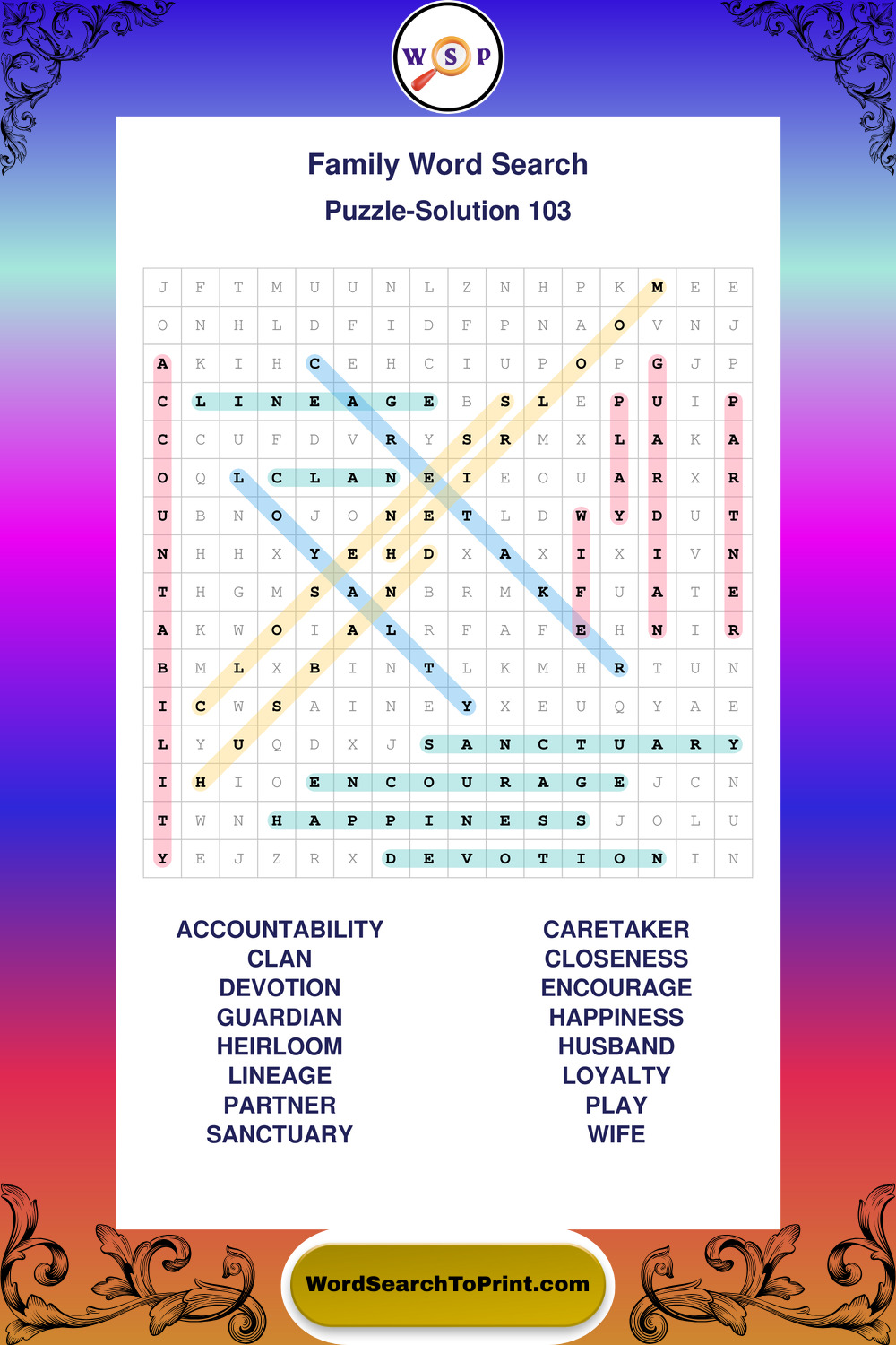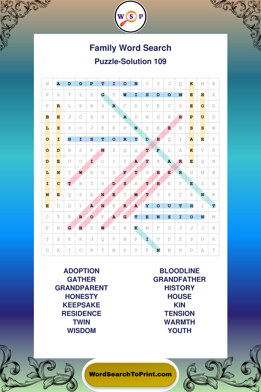Find easy-to-read large print Family wordsearches designed for peaceful focus and simple, enjoyable solving.