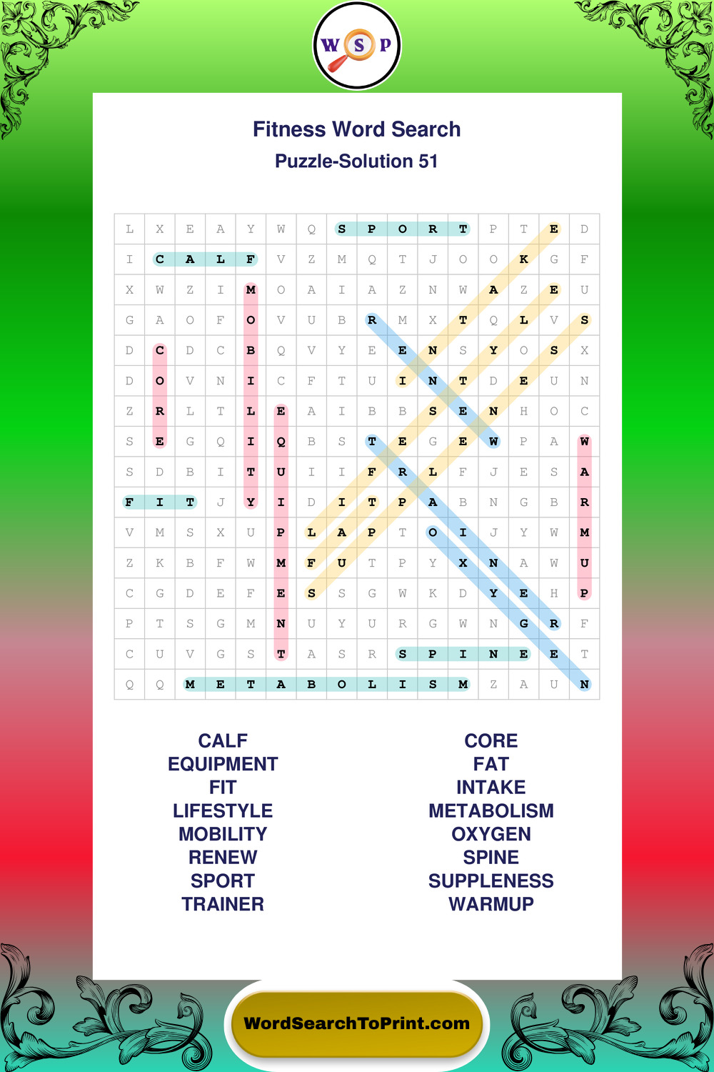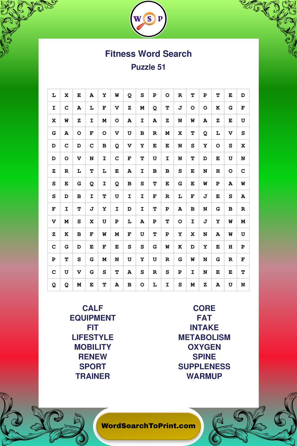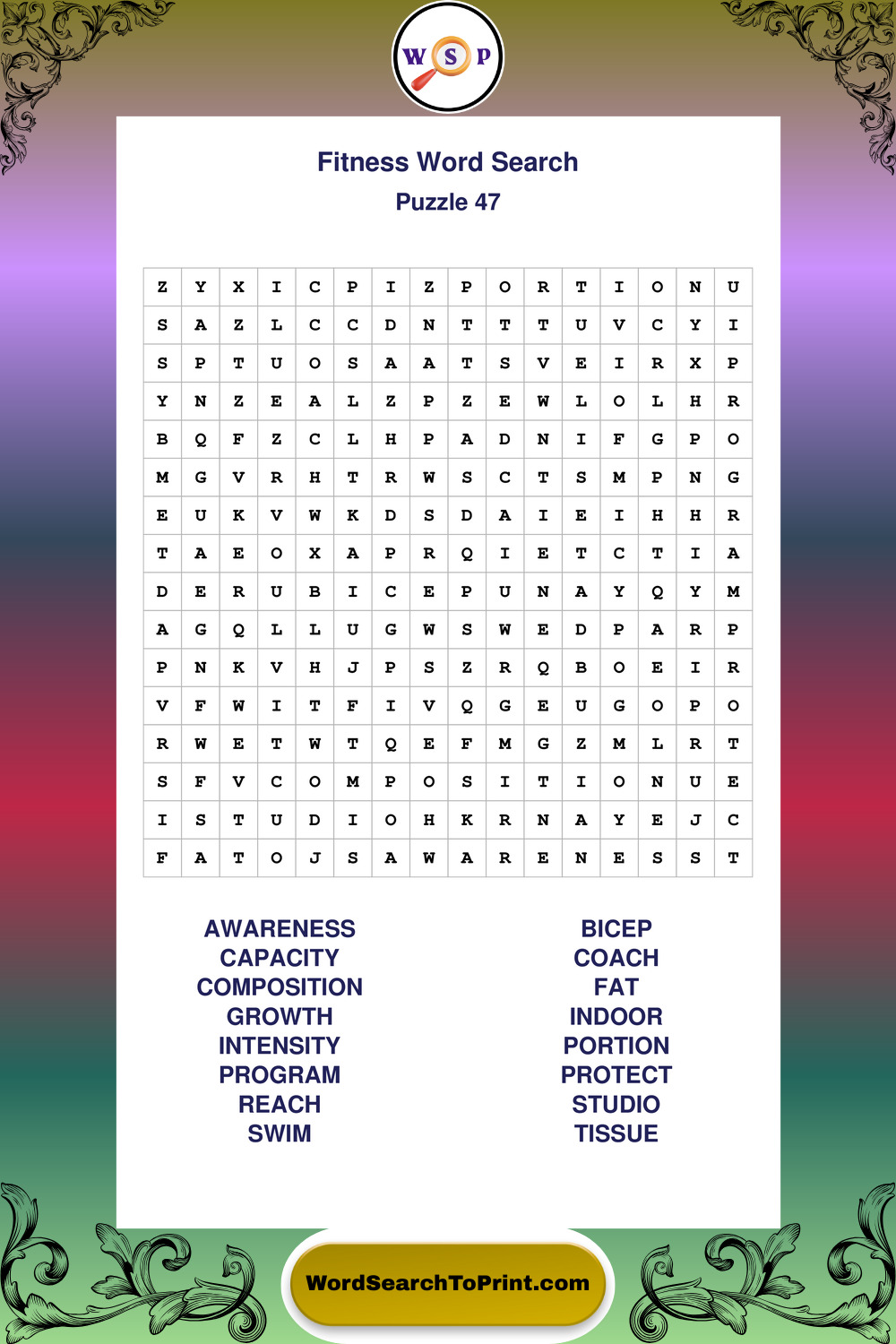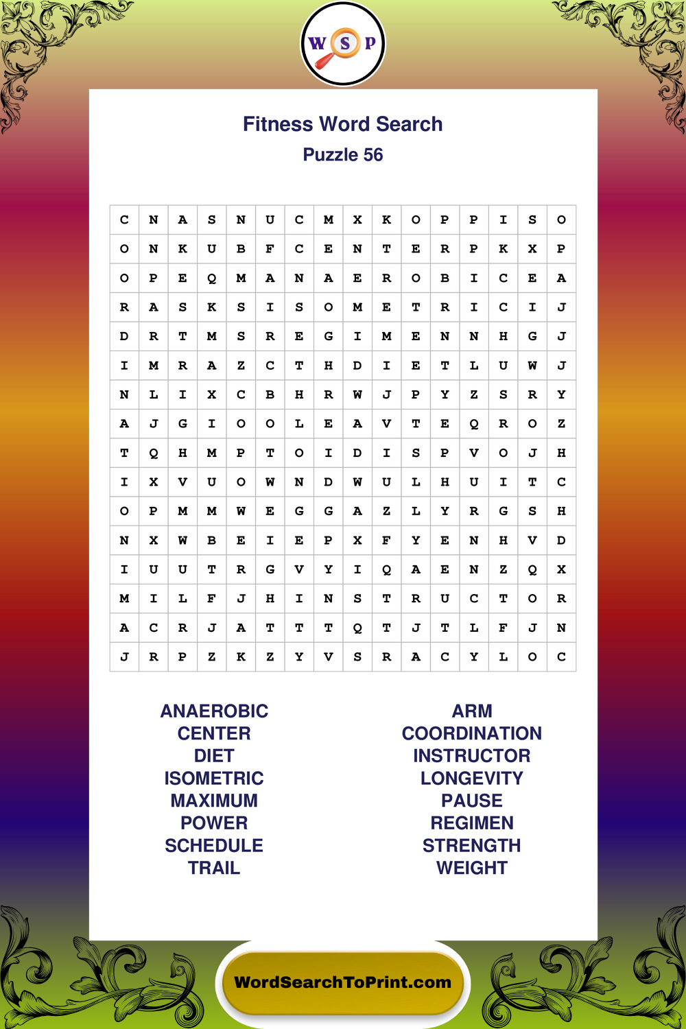 Fitness Wordsearches
