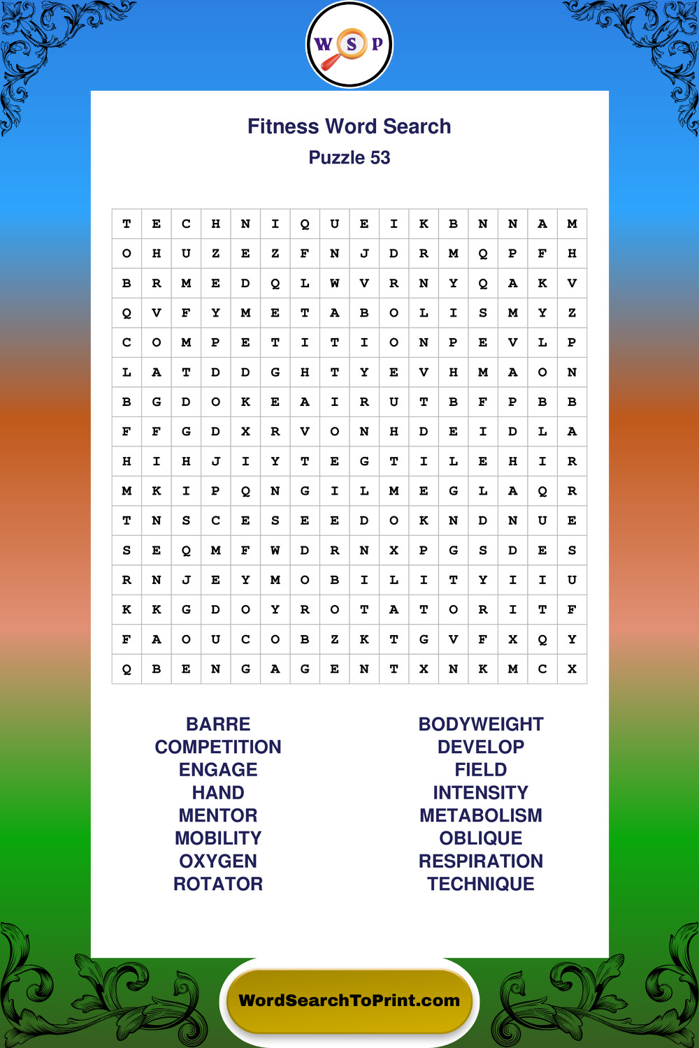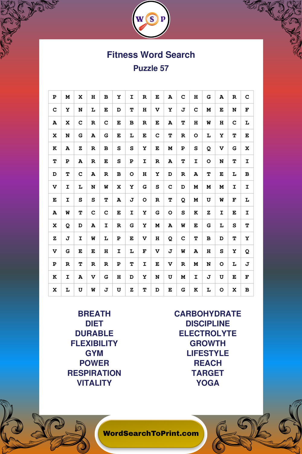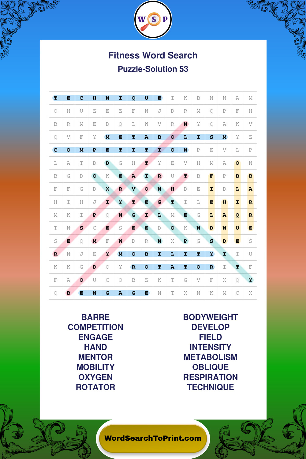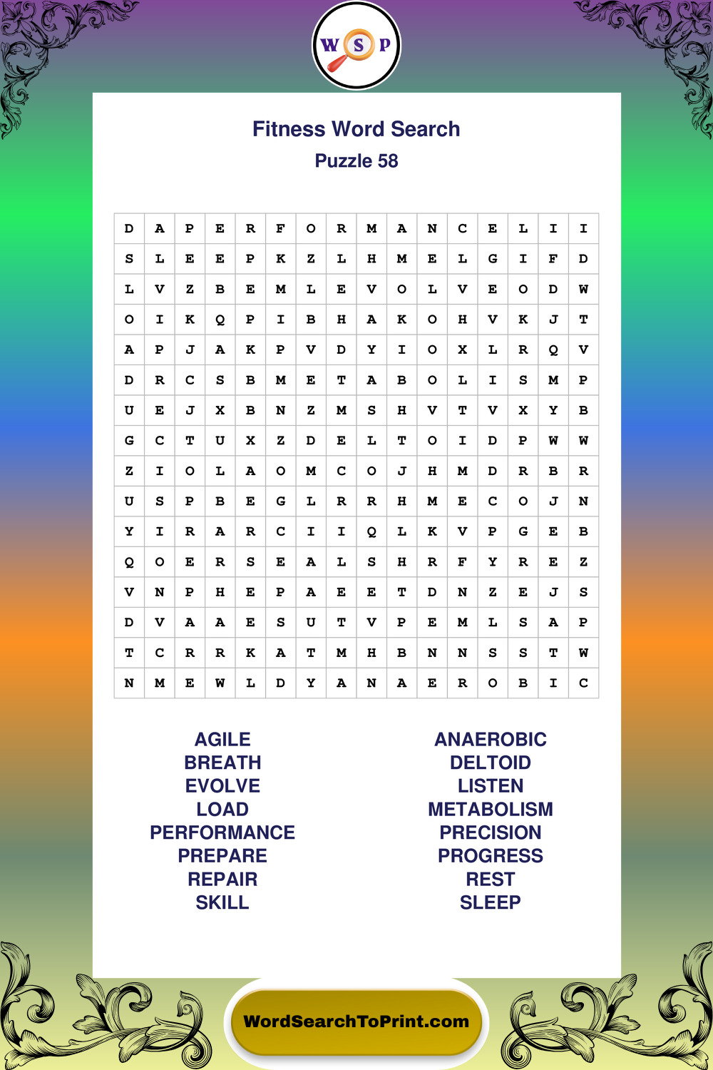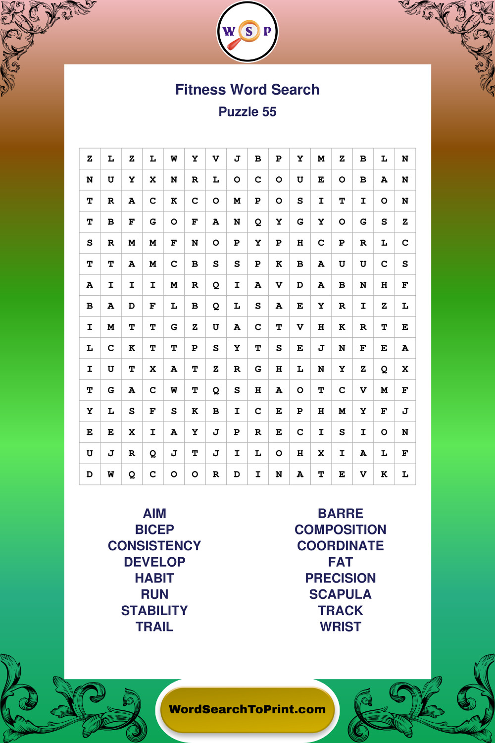 Fitness Wordsearches
