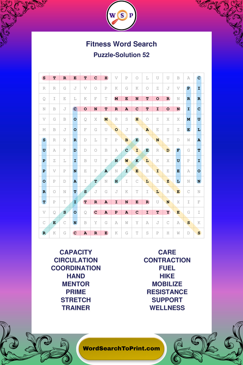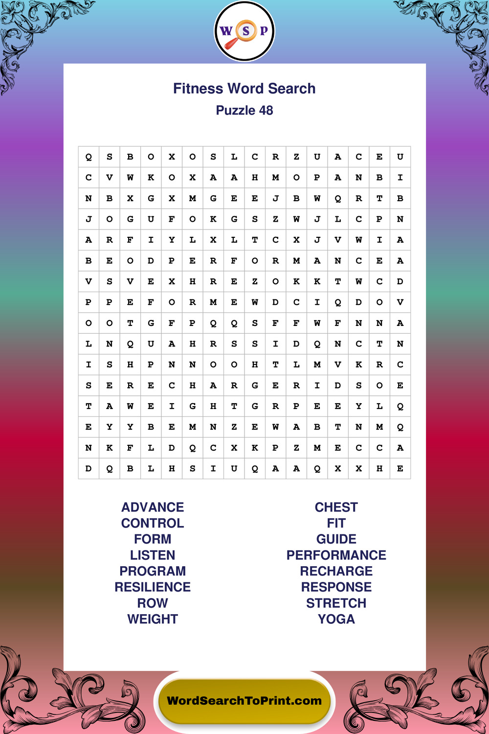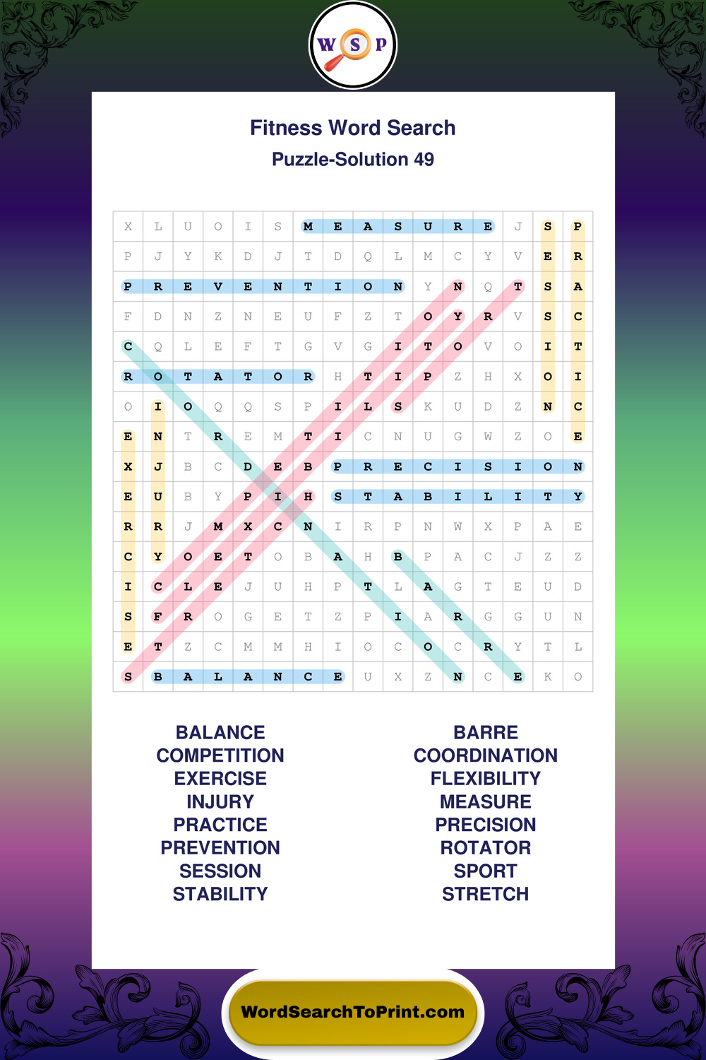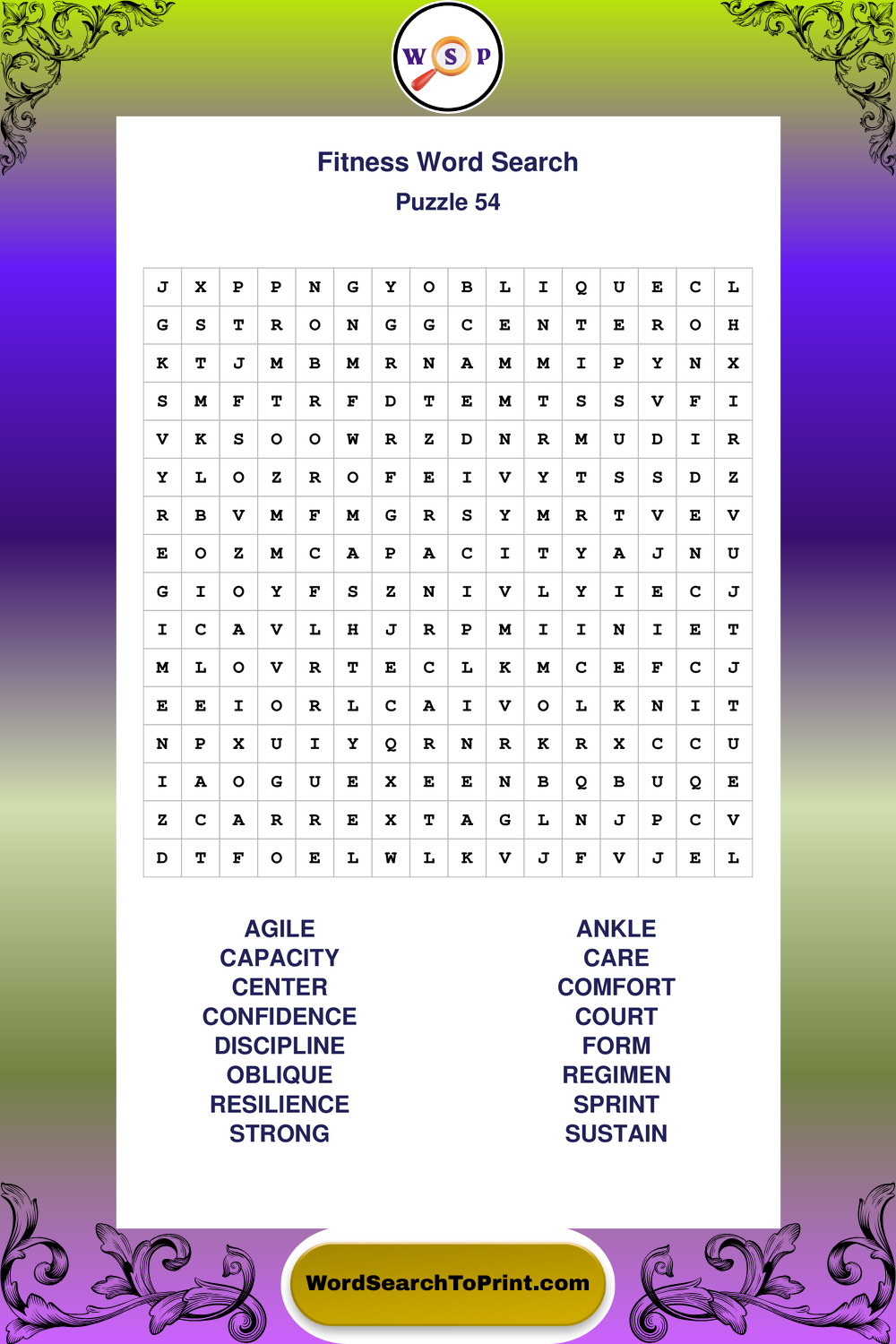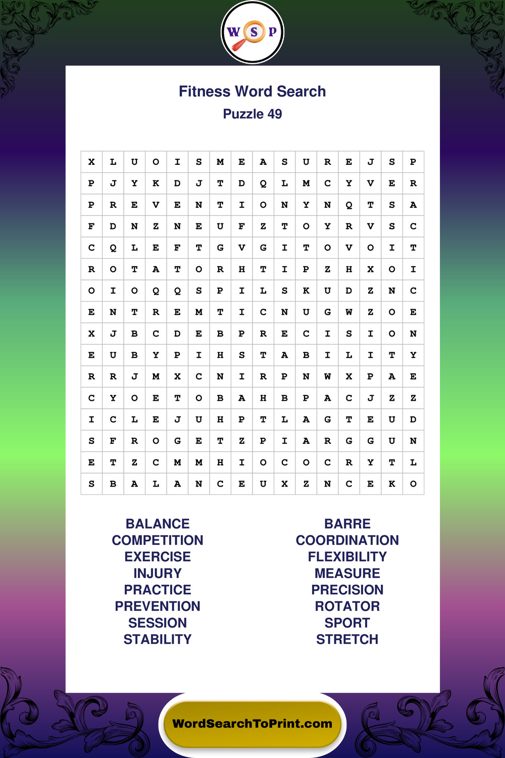 Printable Fitness Wordsearch Puzzles