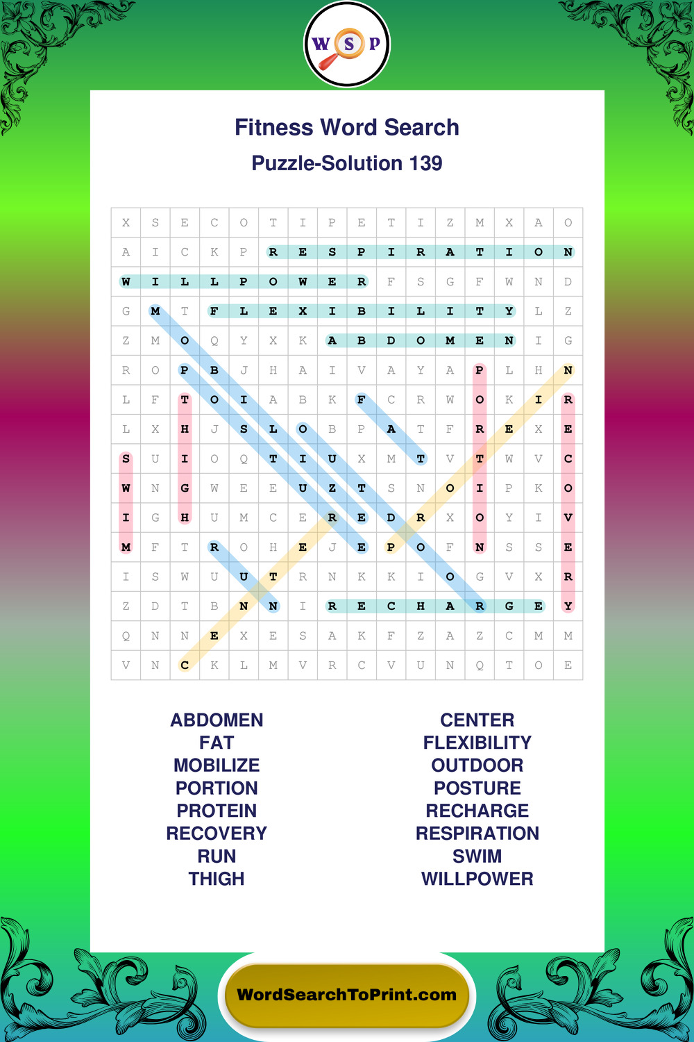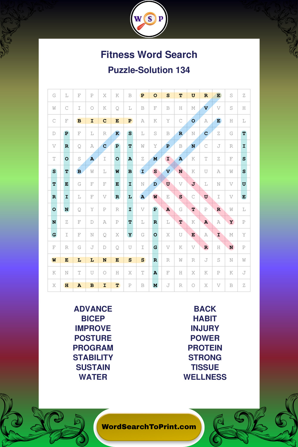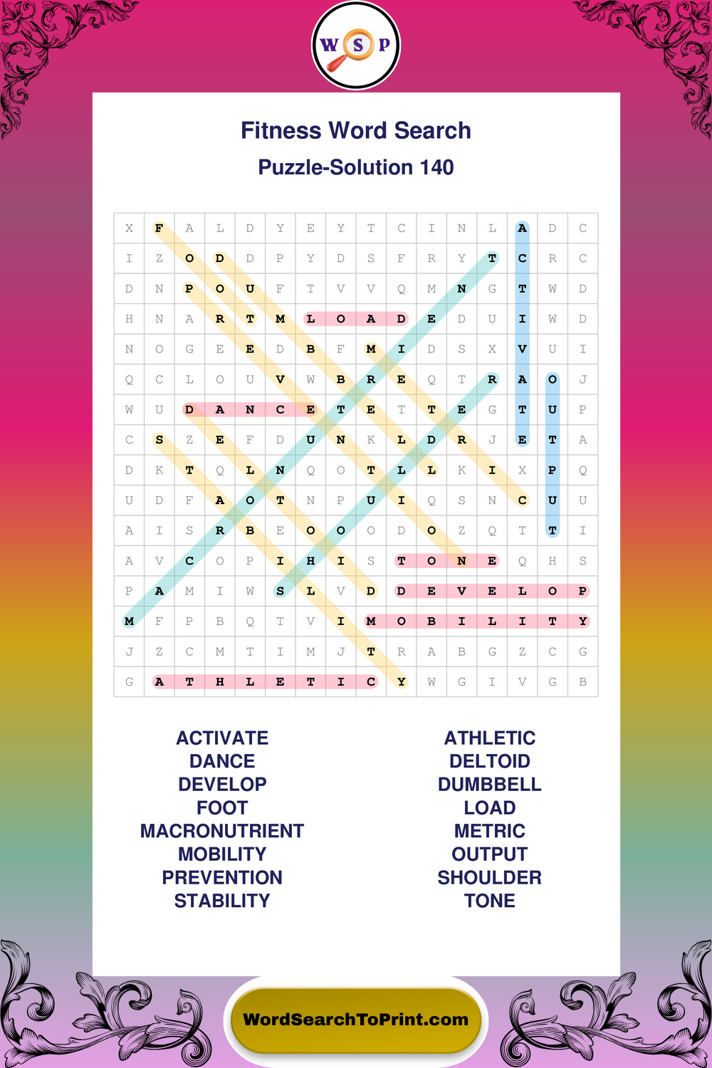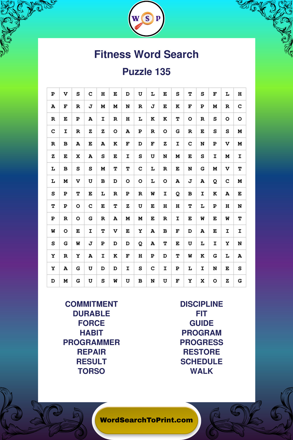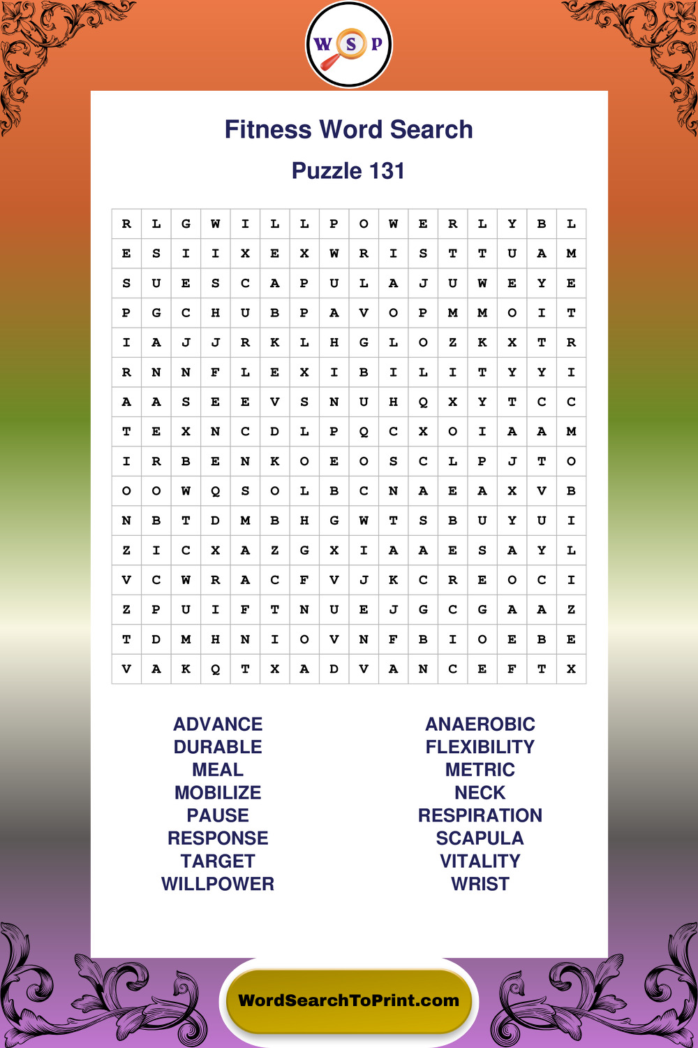 Enjoy these free large print Fitness wordsearches designed for easy reading and relaxed puzzle solving. Perfect for teens, adults, and seniors.