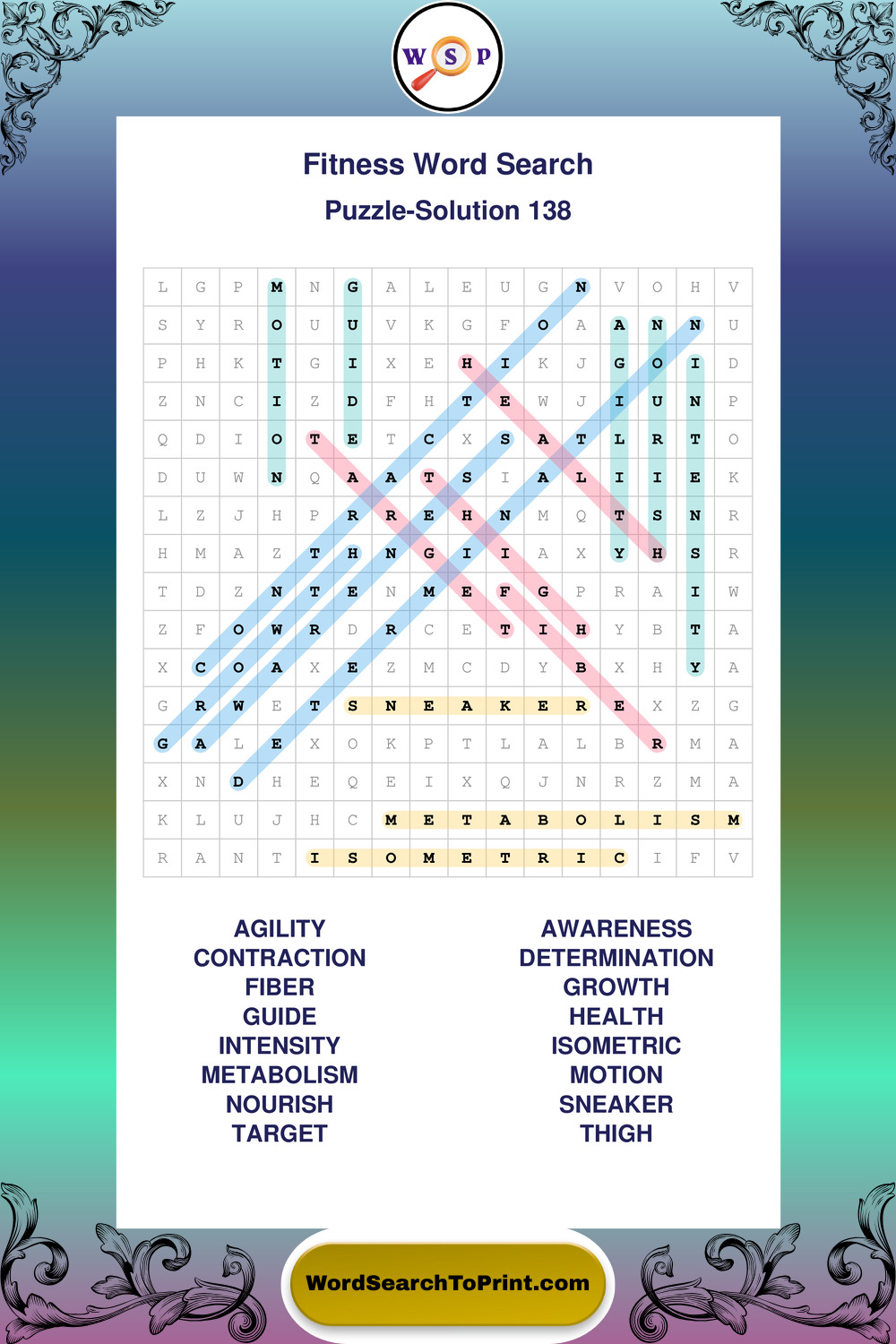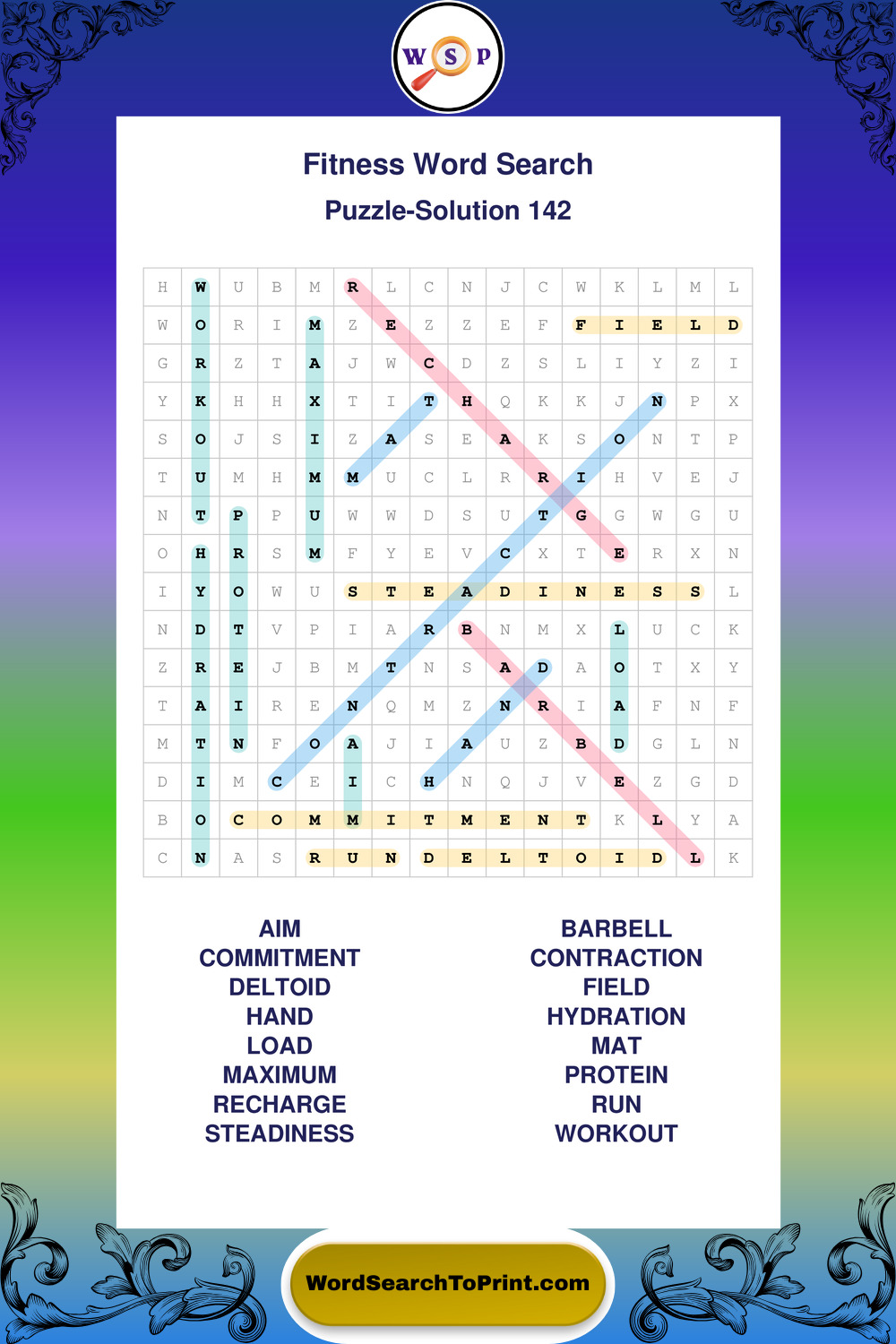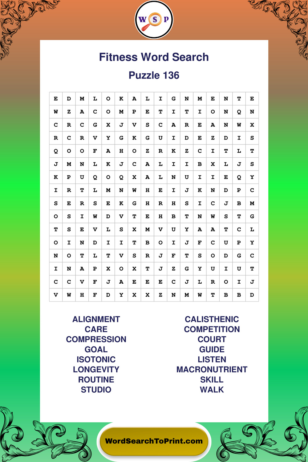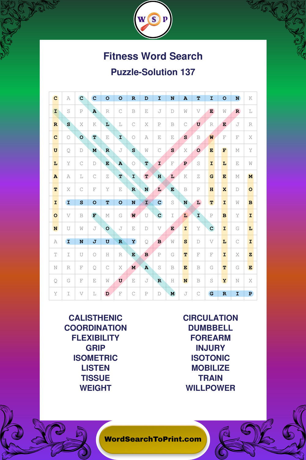 Enjoy these free large print Fitness wordsearches designed for easy reading and relaxed puzzle solving. Perfect for teens, adults, and seniors.