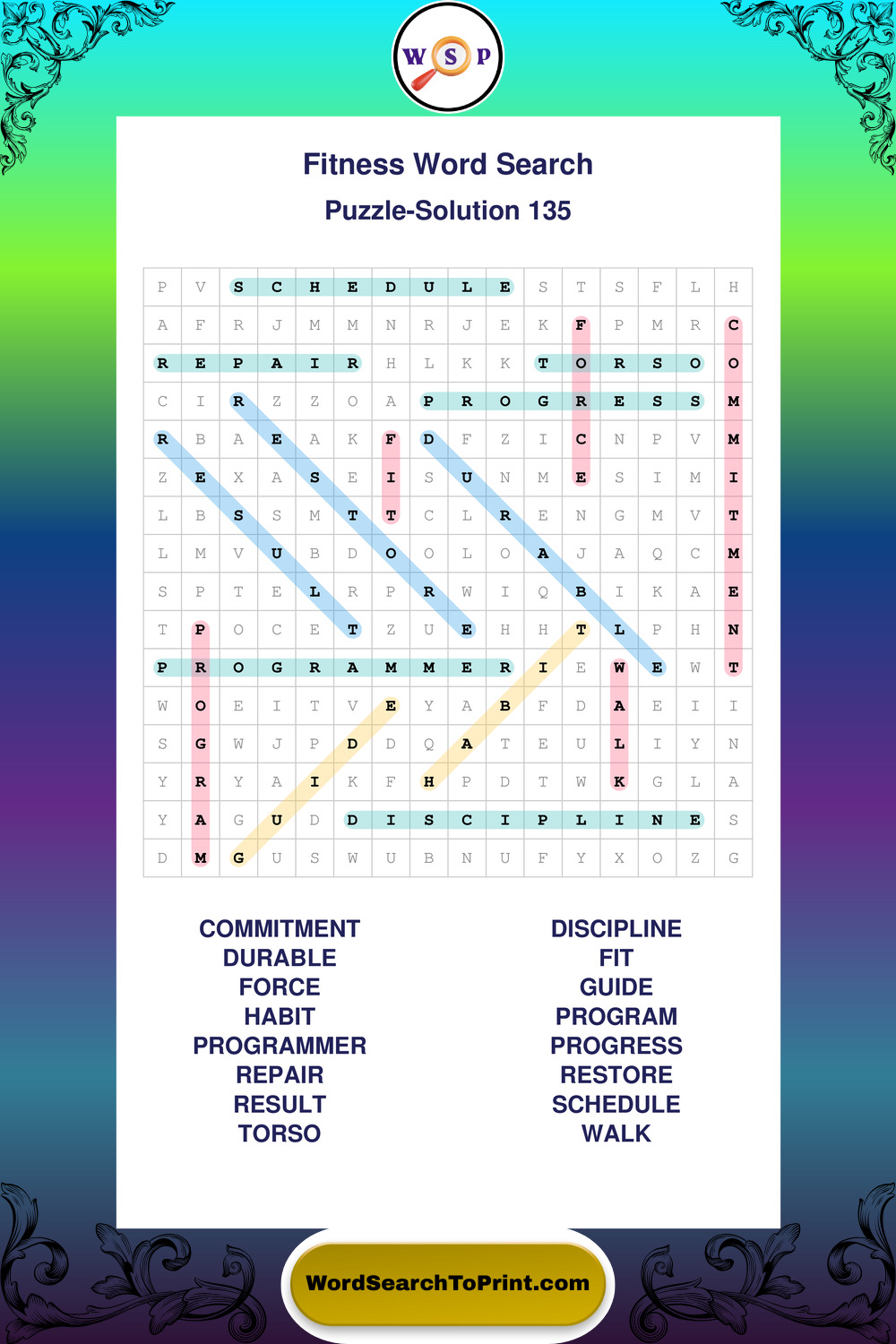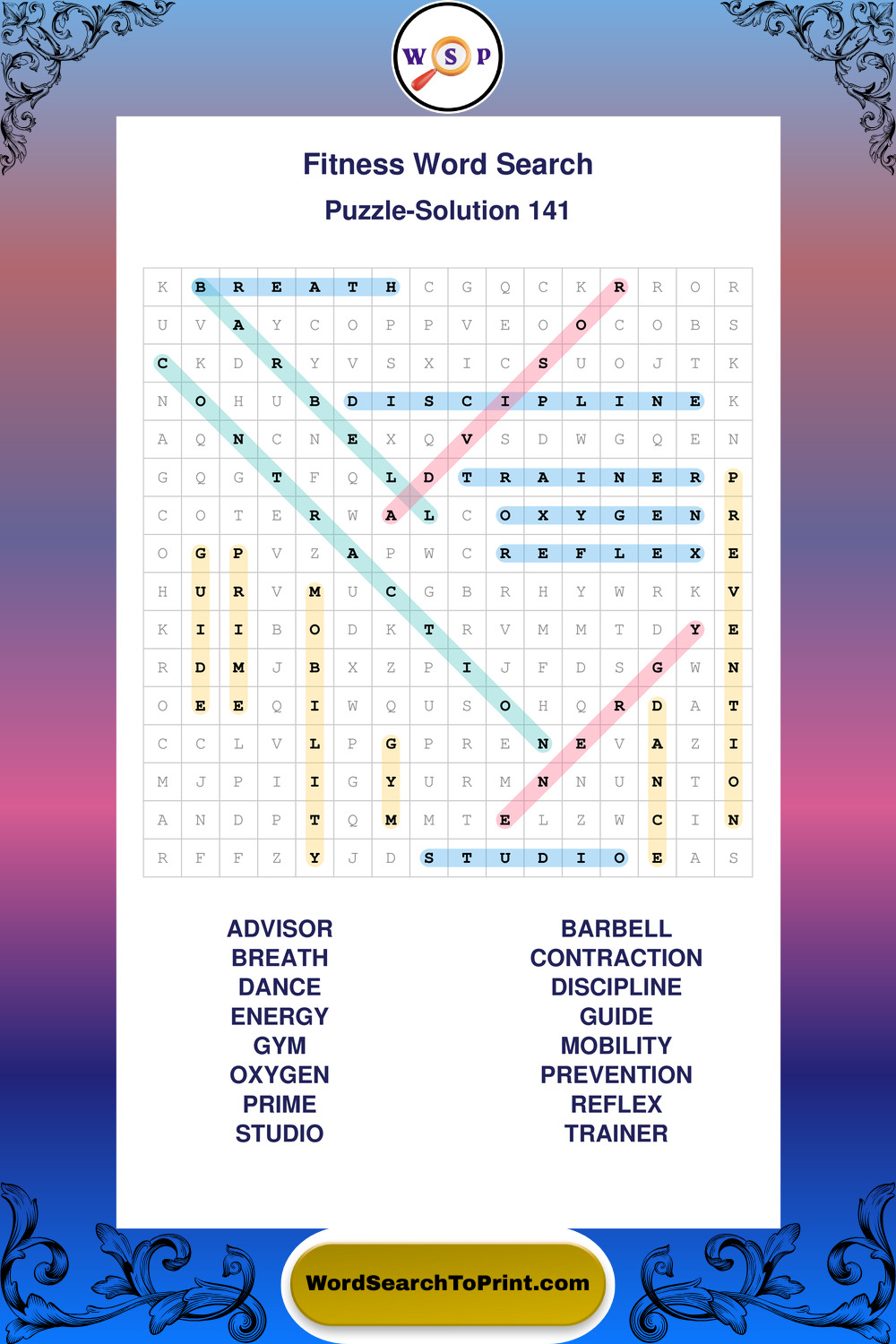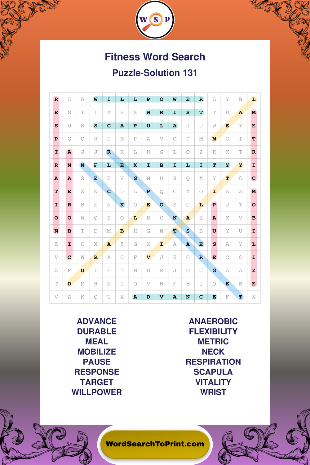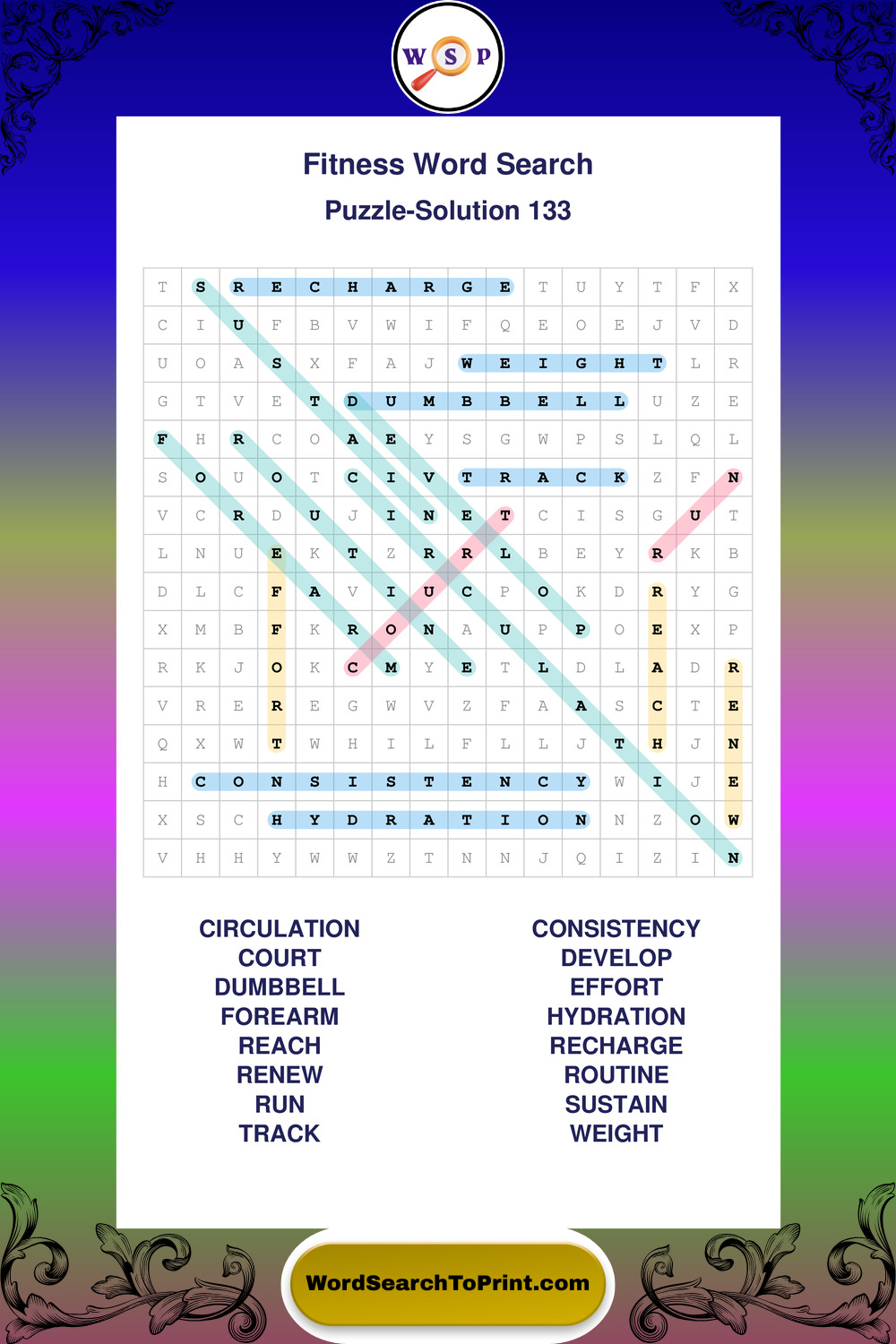Enjoy these free large print Fitness wordsearches designed for easy reading and relaxed puzzle solving. Perfect for teens, adults, and seniors.