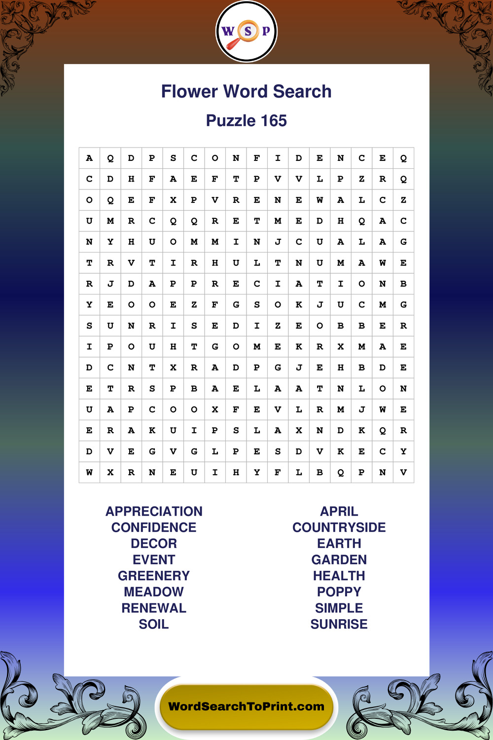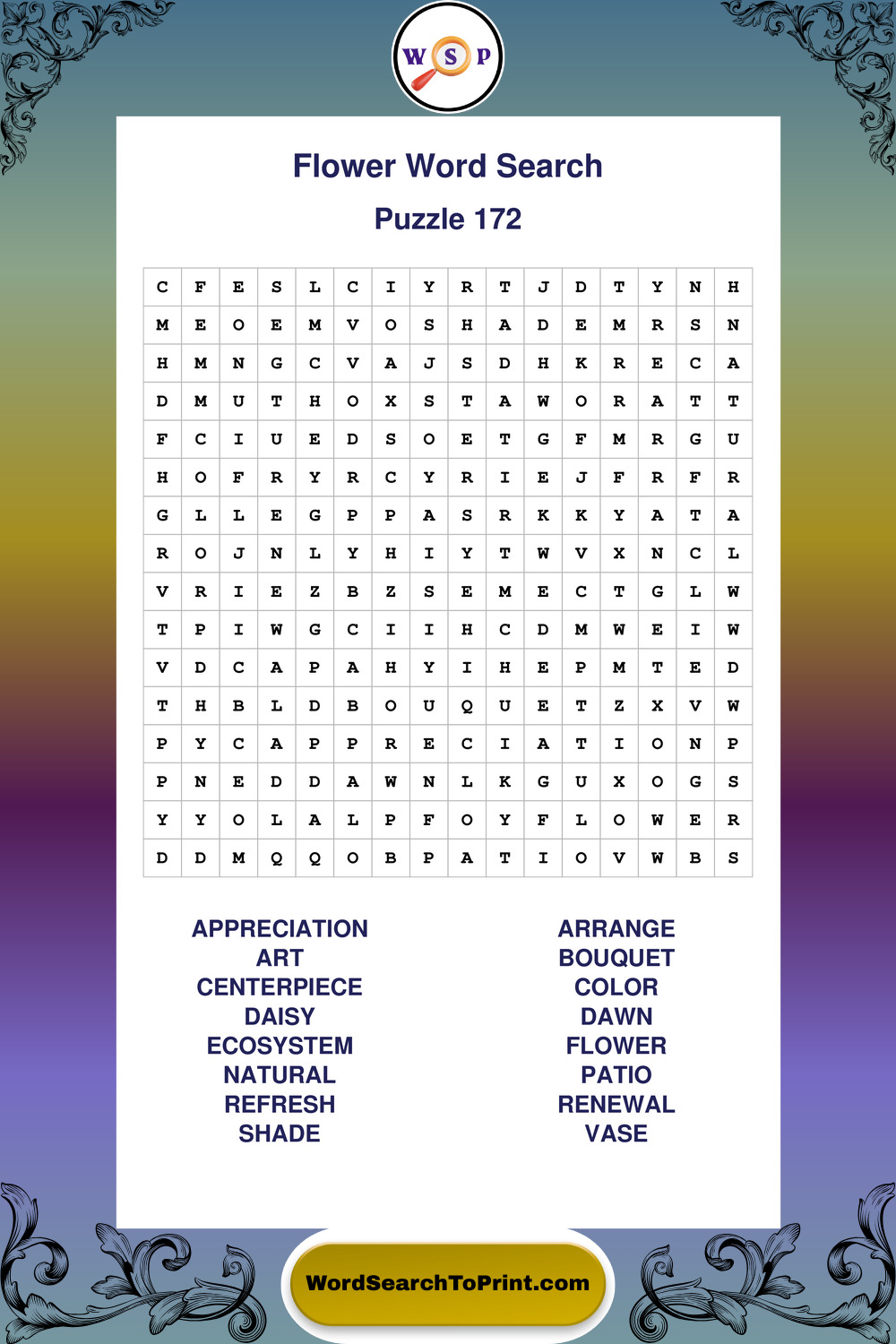 Printable Flower Wordsearch Puzzles