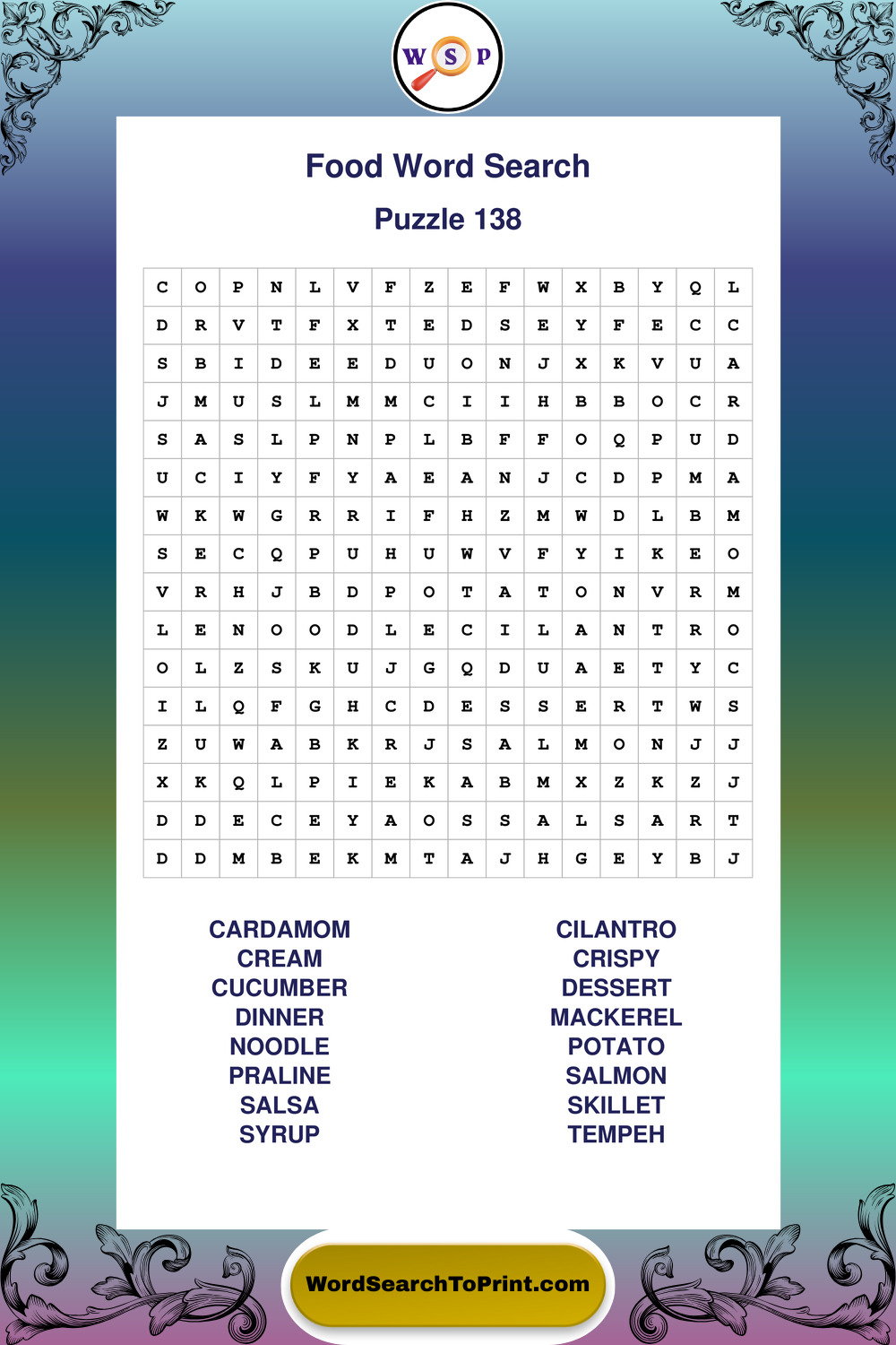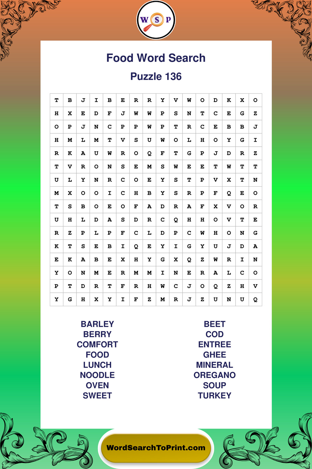 Explore a growing collection of large print Food wordsearches created for comfortable, stress-free solving at your own pace.