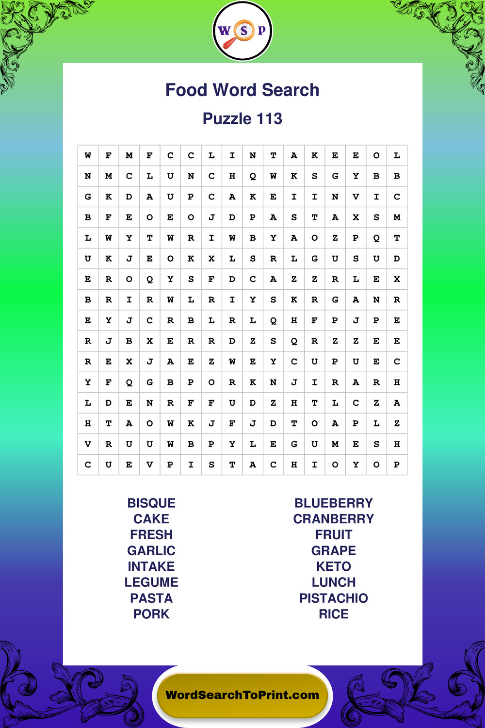 Explore a growing collection of large print Food wordsearches created for comfortable, stress-free solving at your own pace.