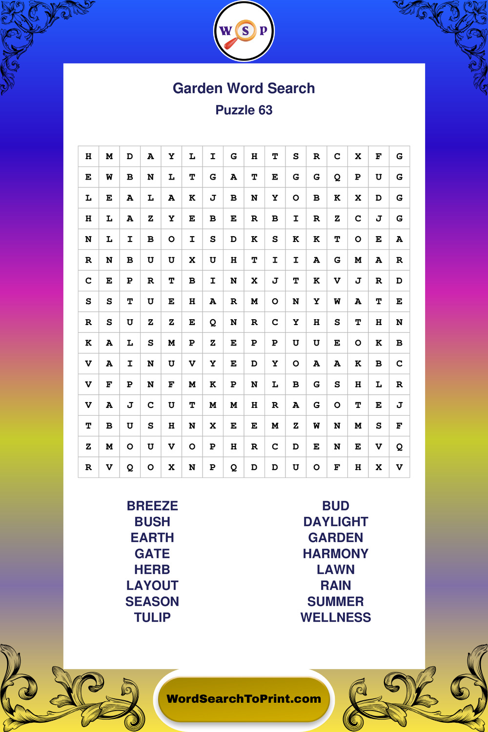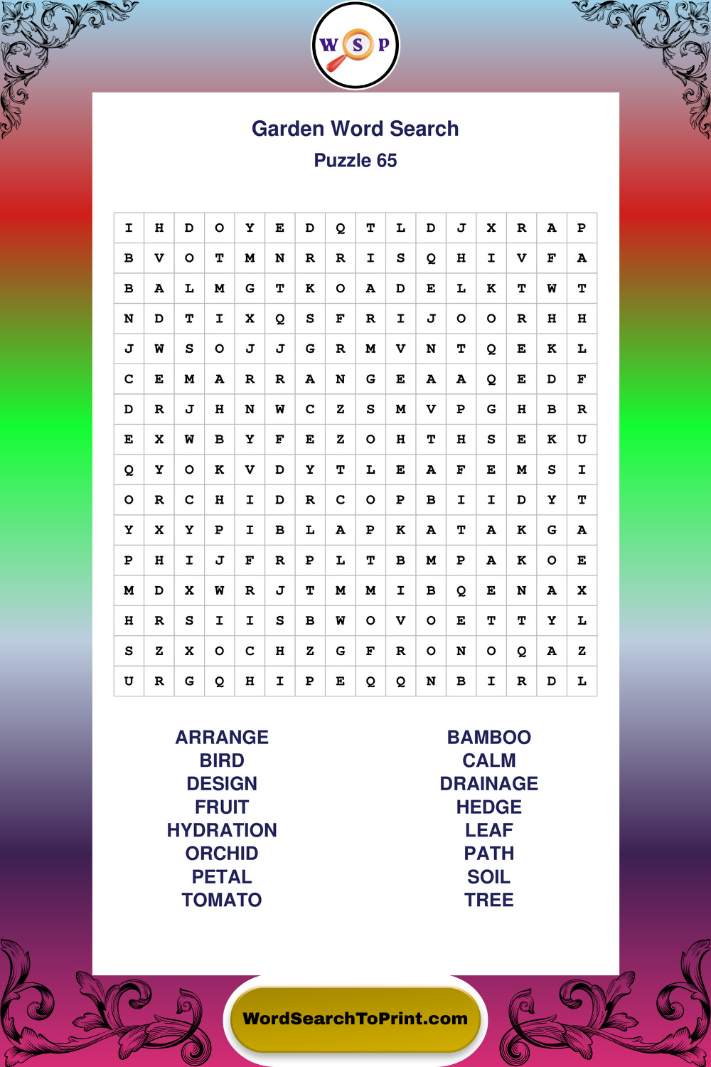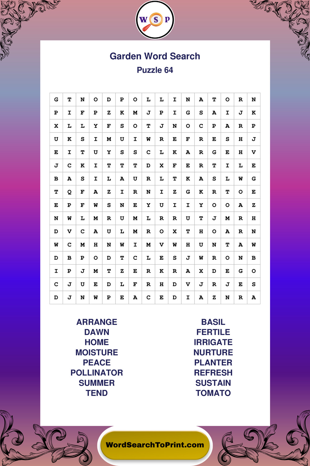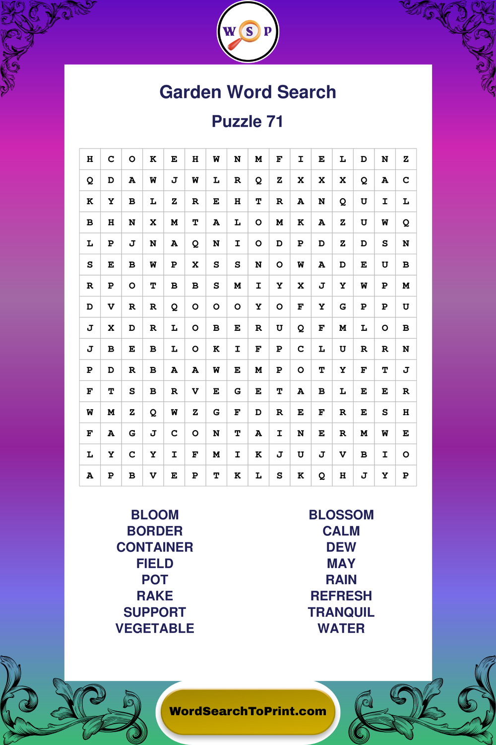 Find easy-to-read large print Garden wordsearches designed for peaceful focus and simple, enjoyable solving.