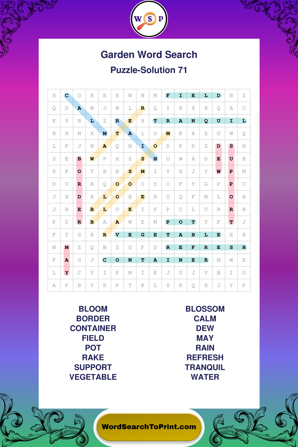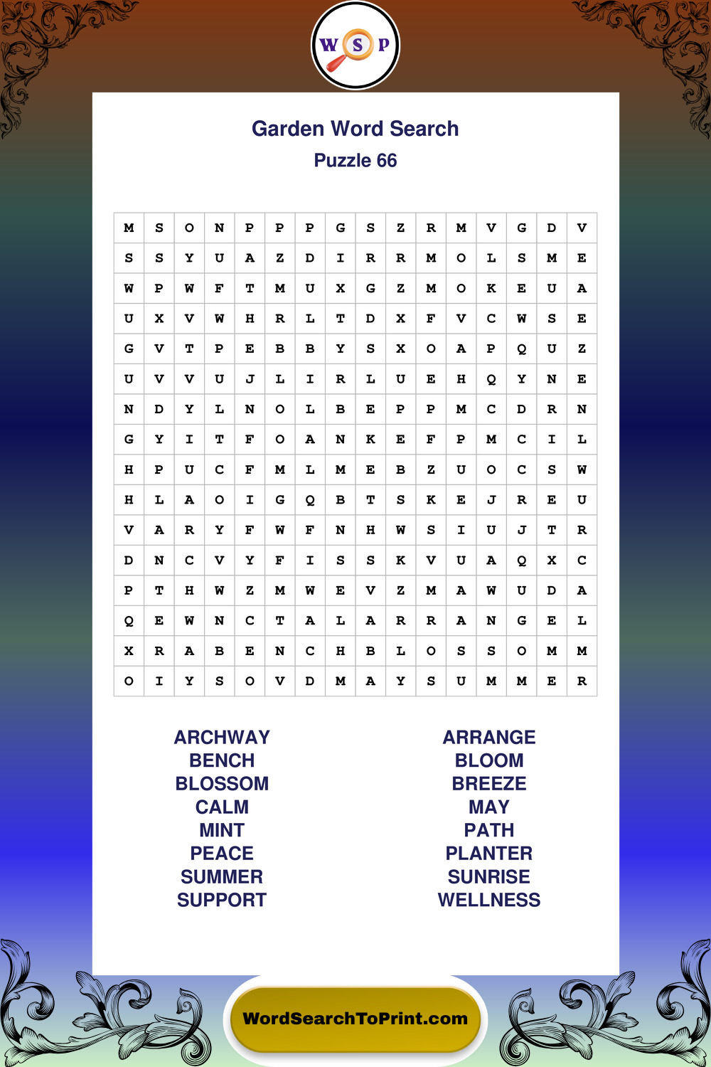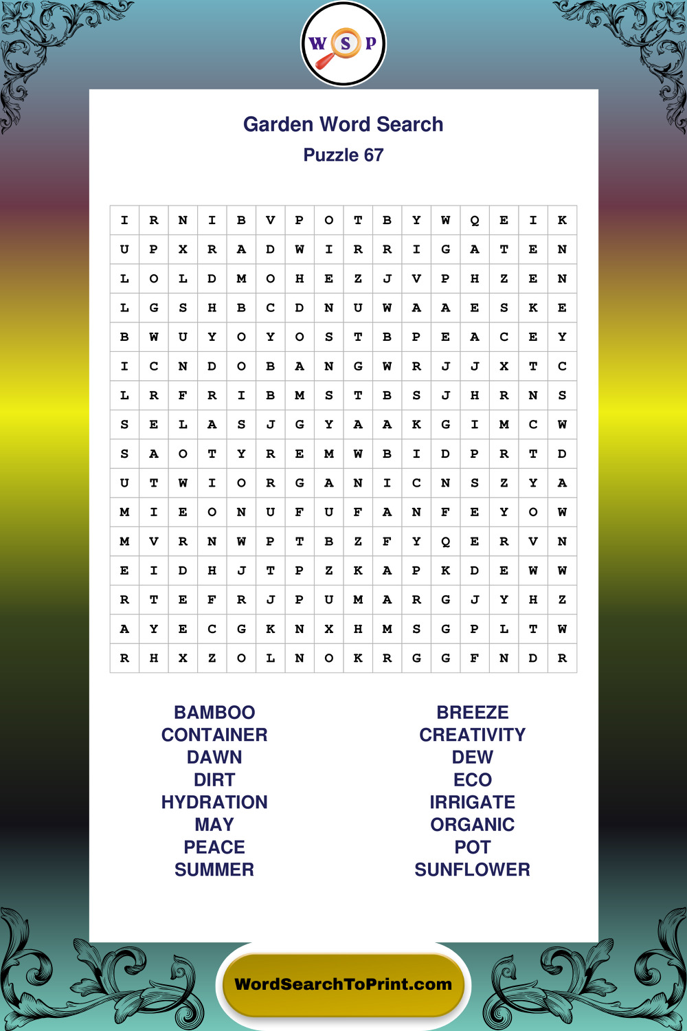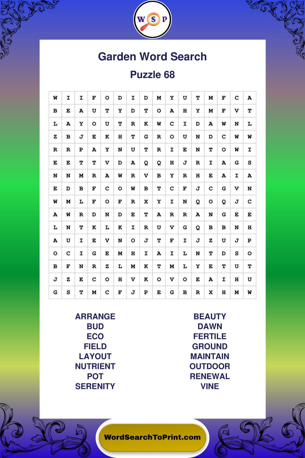 Find easy-to-read large print Garden wordsearches designed for peaceful focus and simple, enjoyable solving.