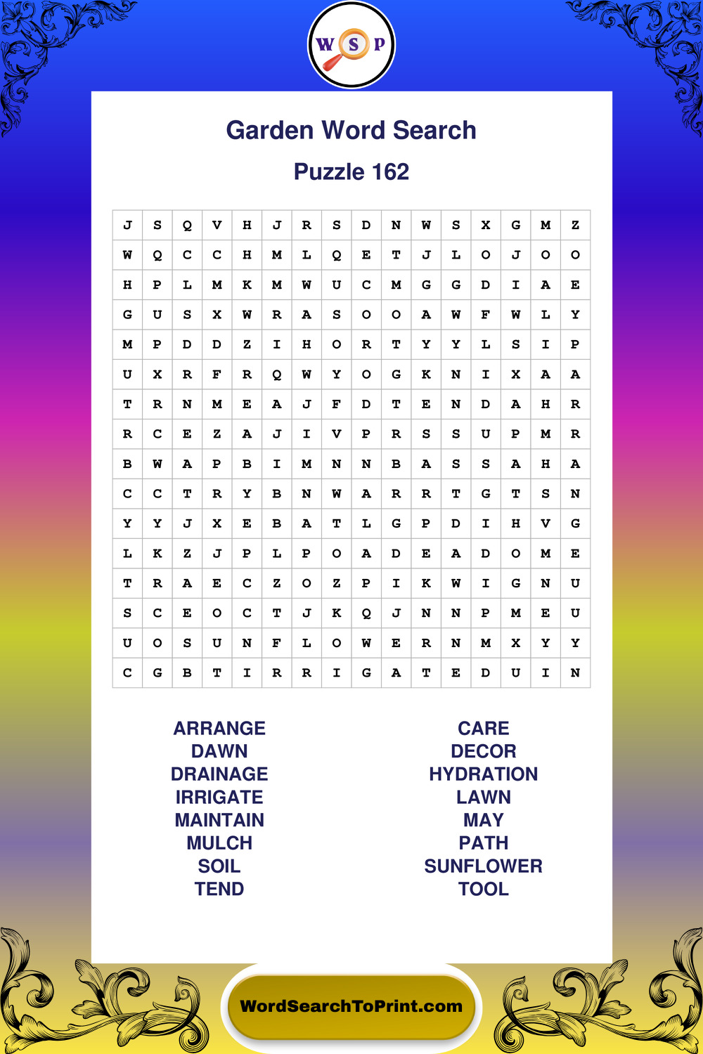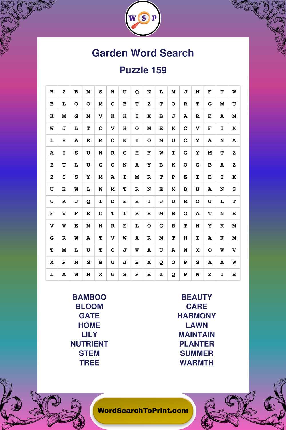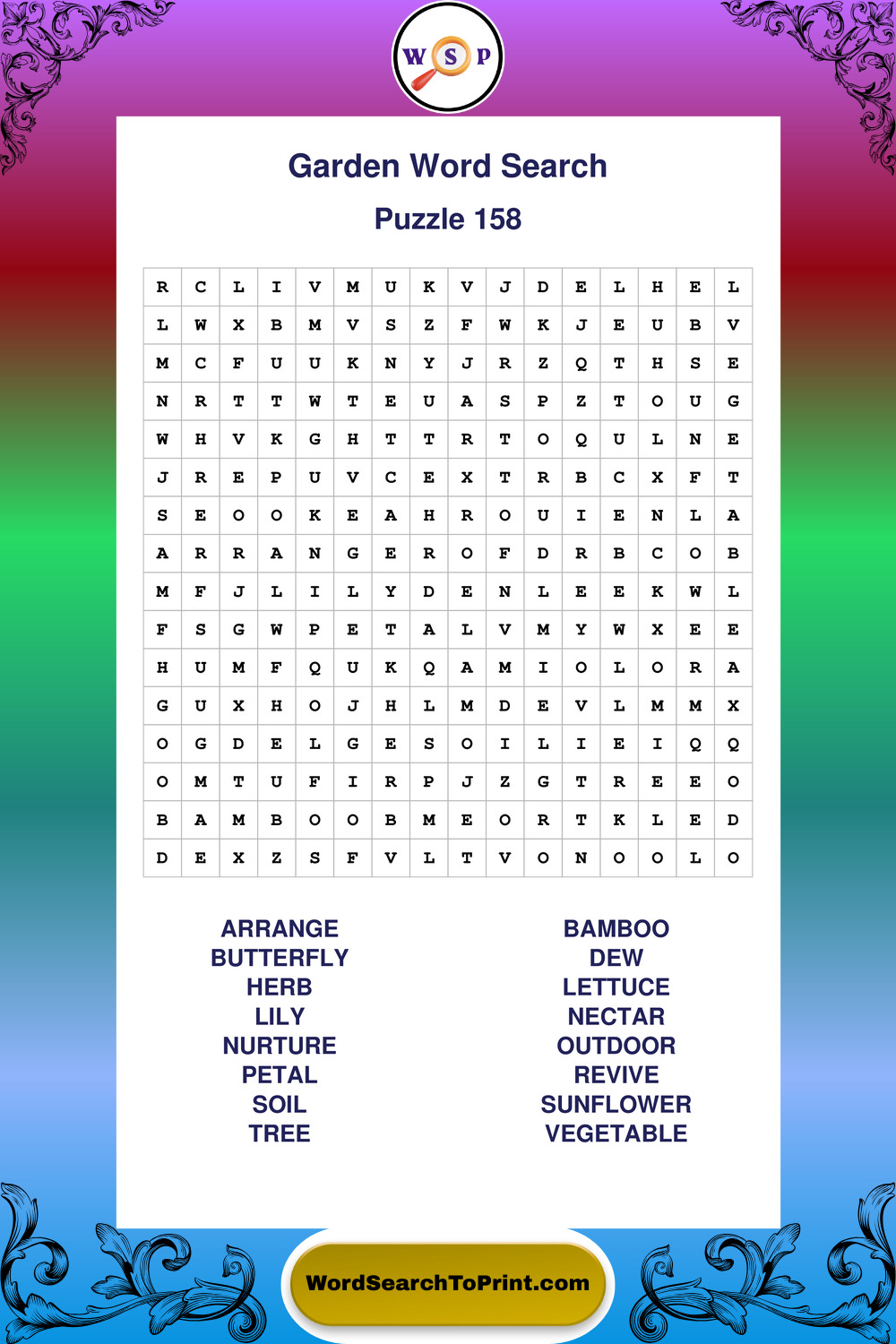 Find easy-to-read large print Garden wordsearches designed for peaceful focus and simple, enjoyable solving.
