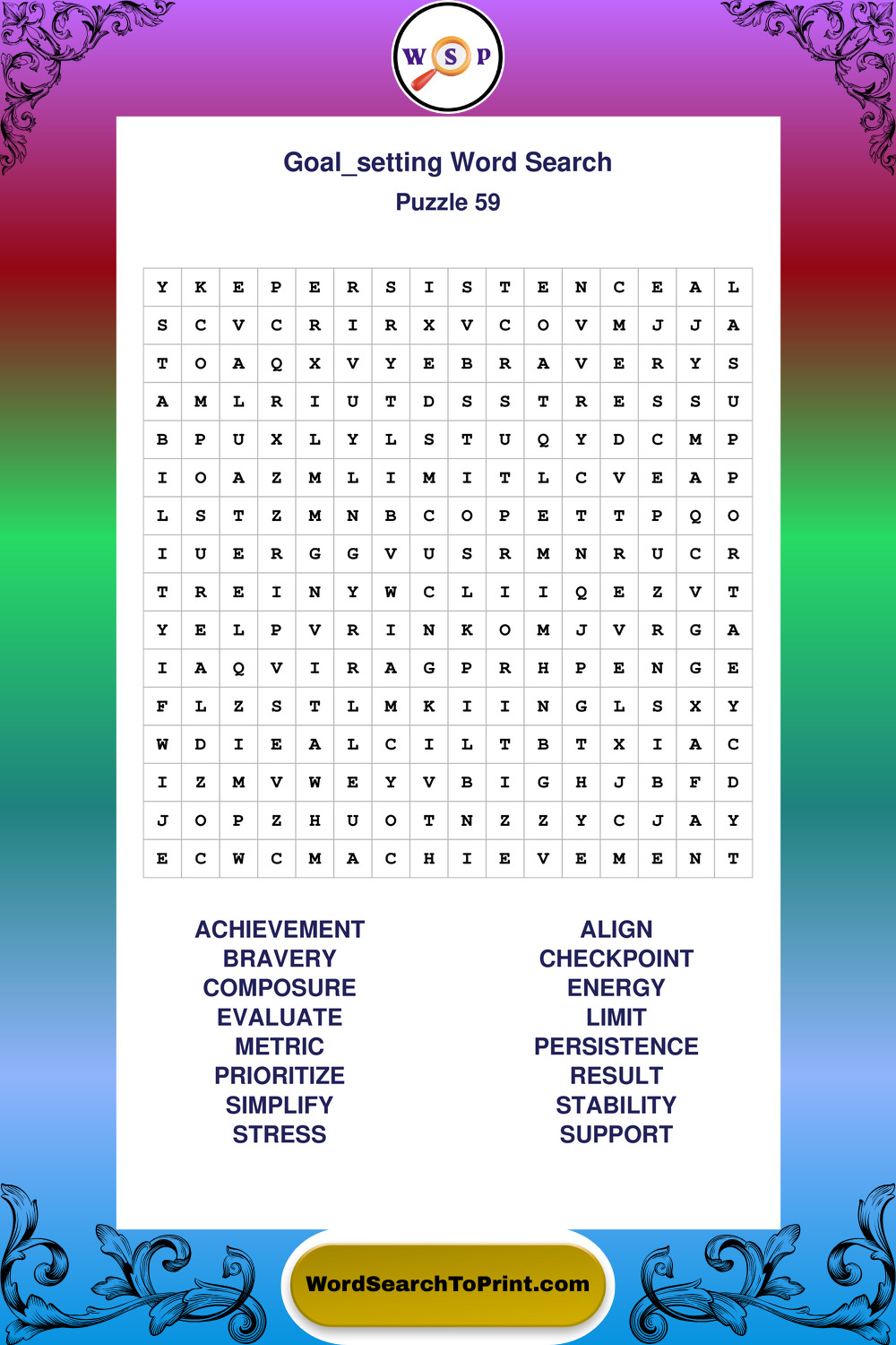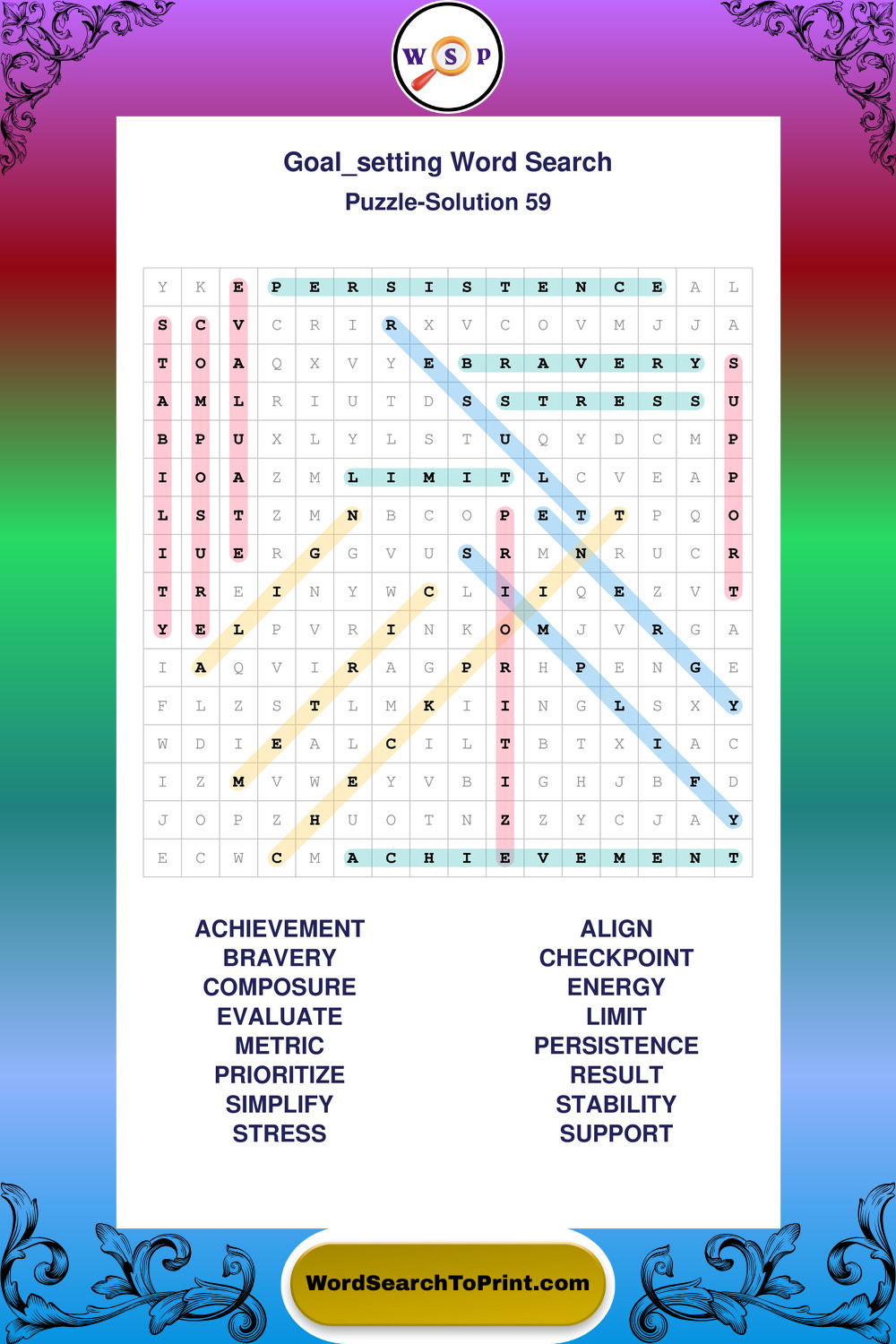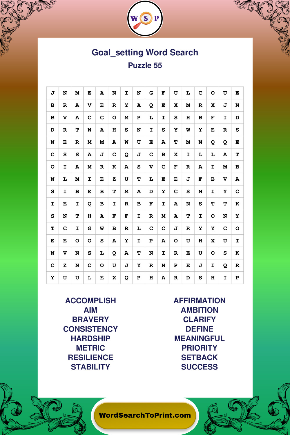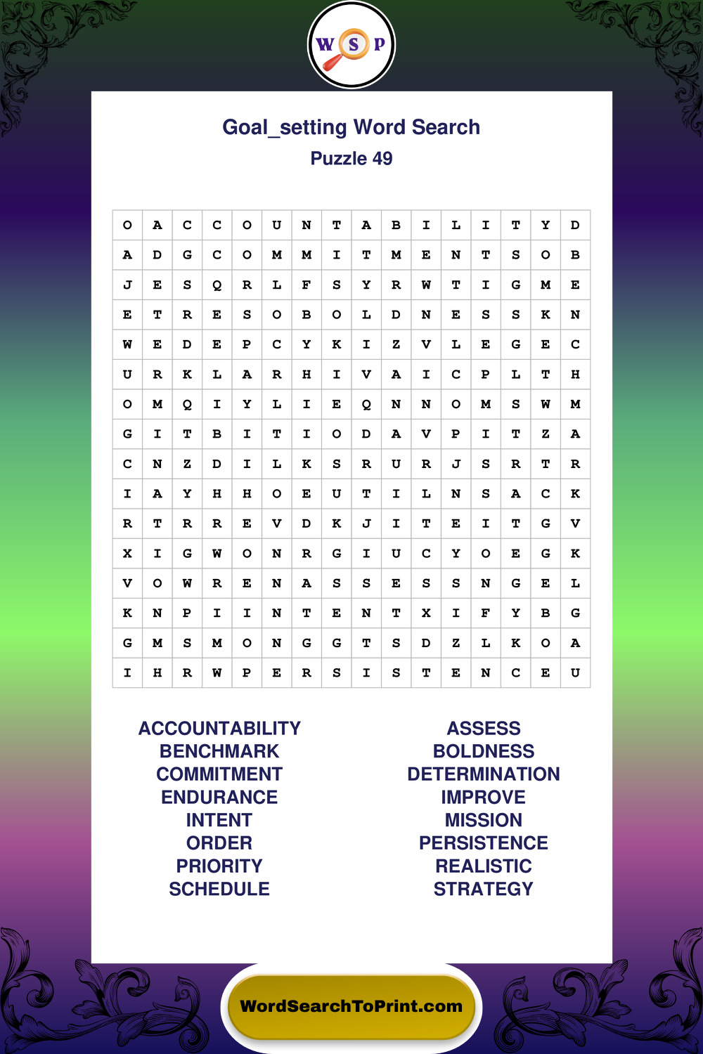 Printable Goal Setting Wordsearch Puzzles