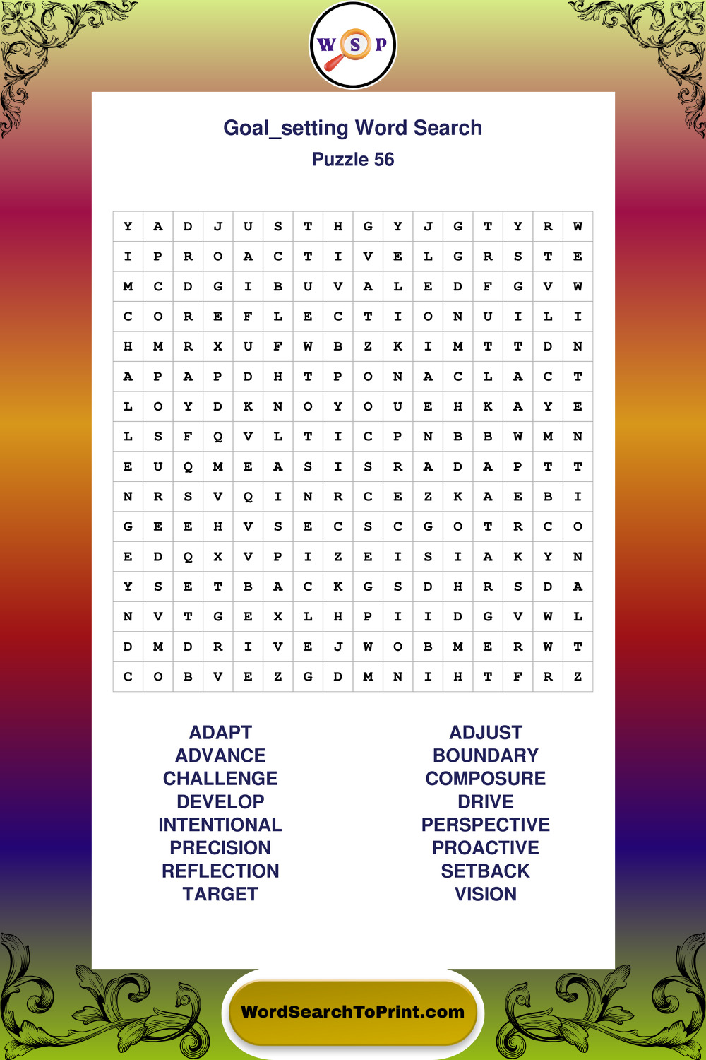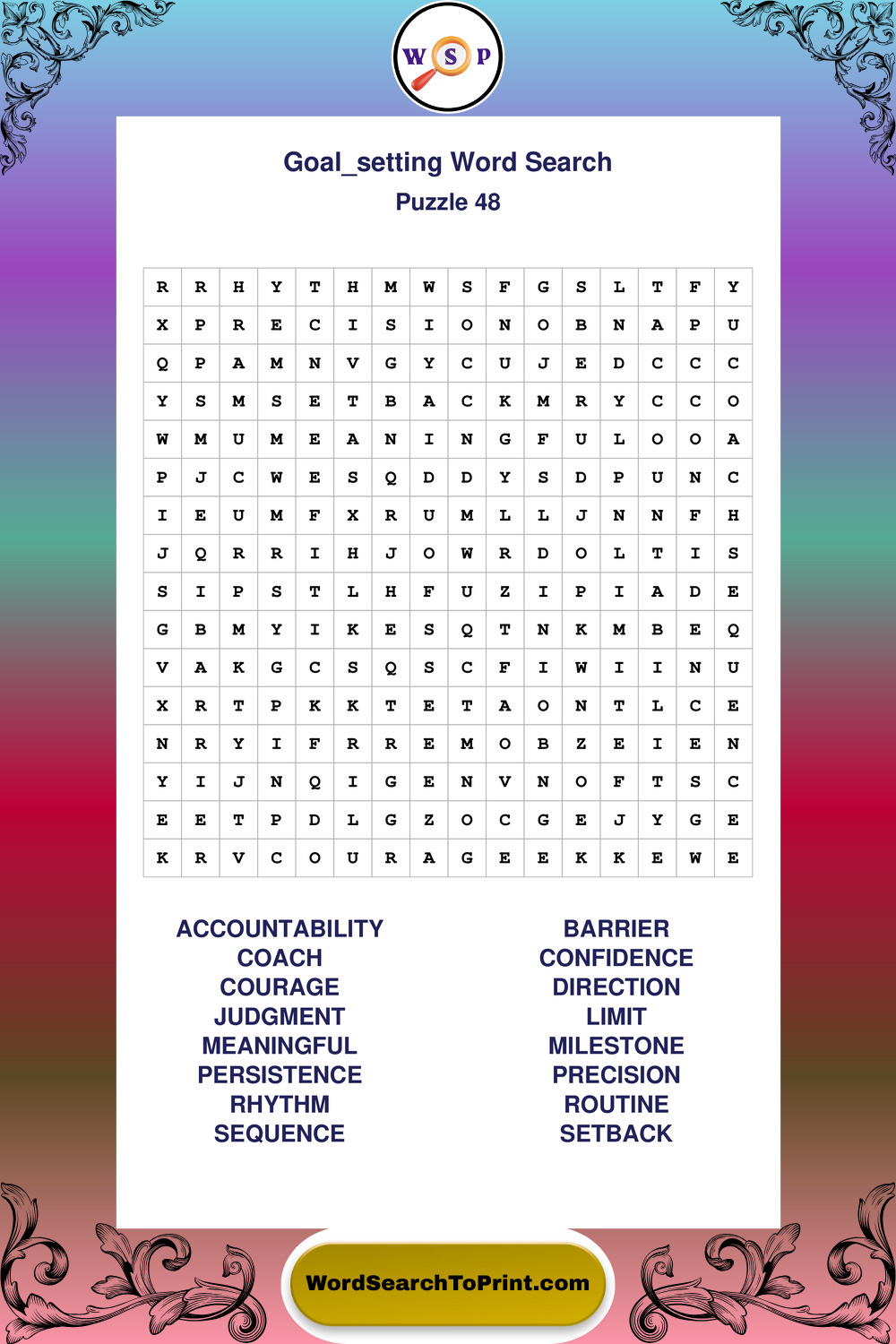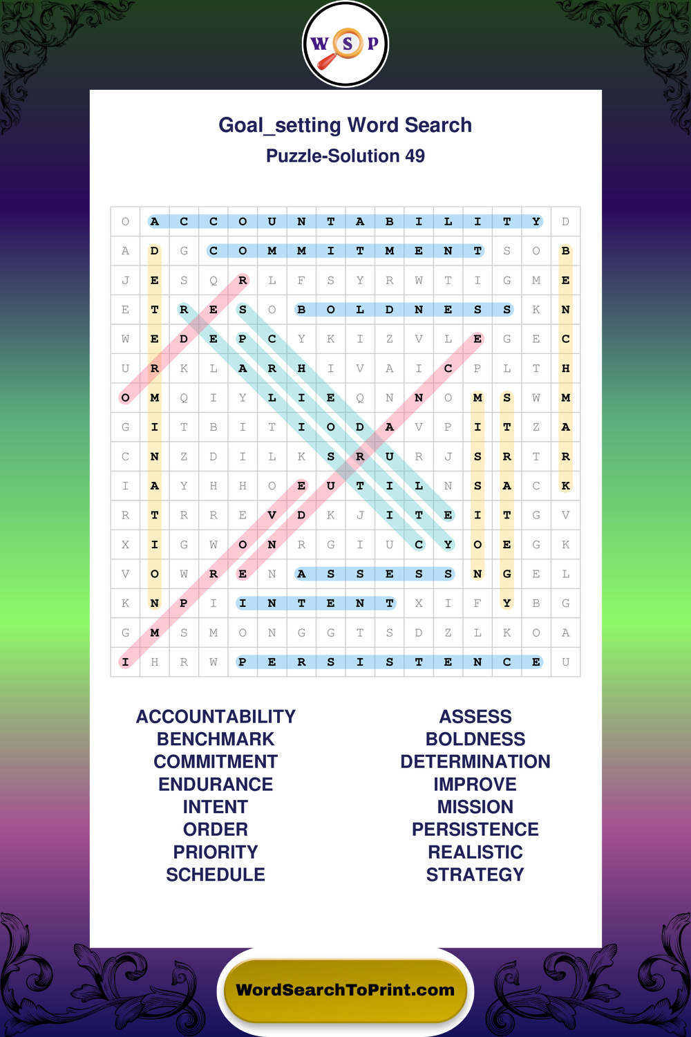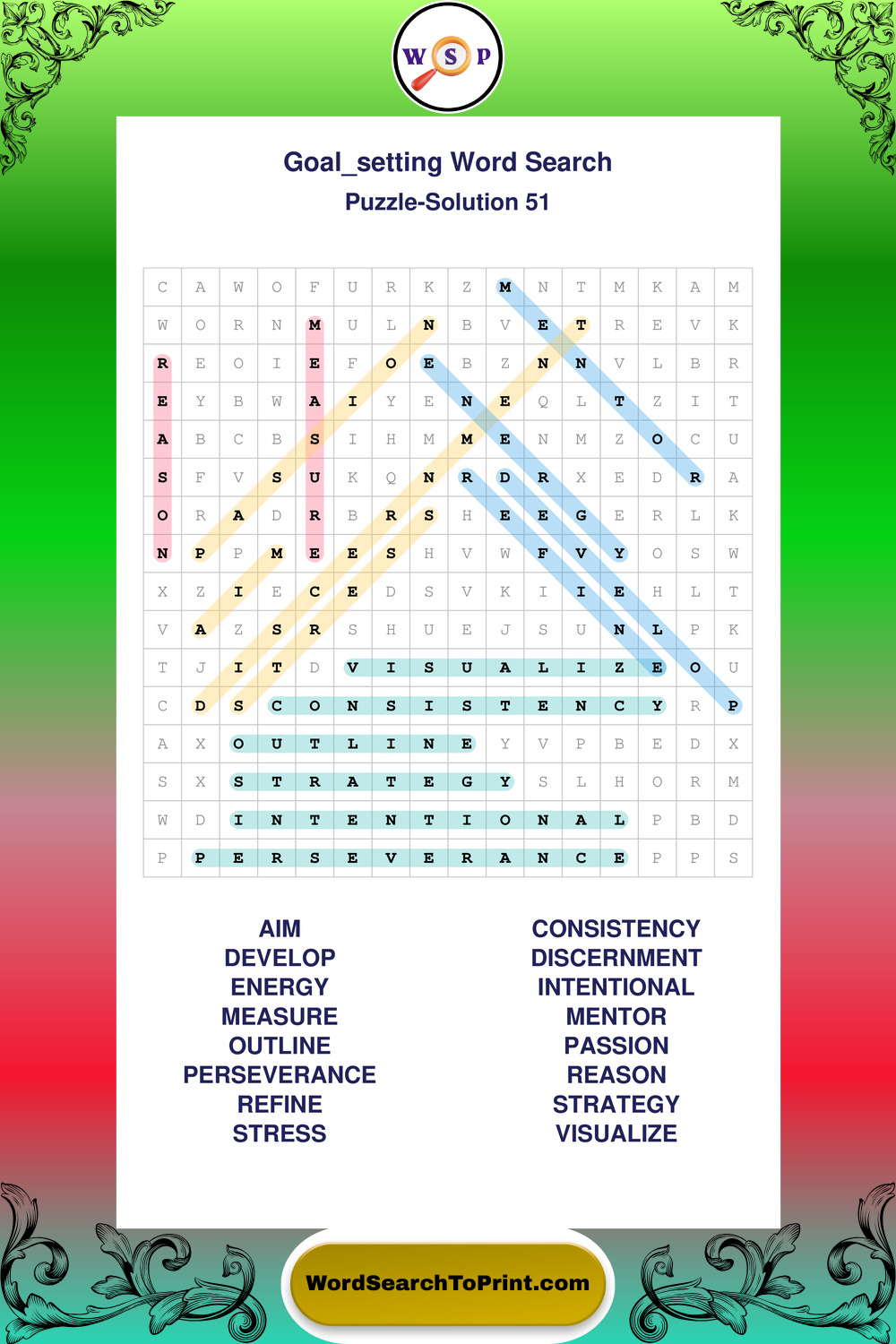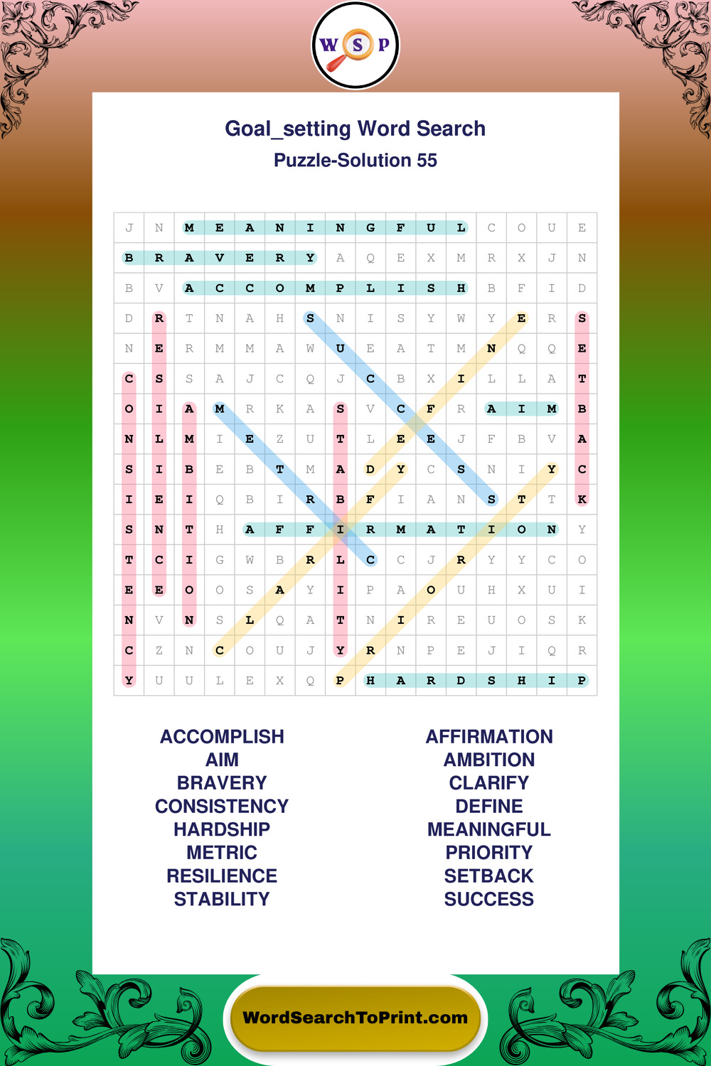Printable Goal Setting Wordsearch Puzzles
