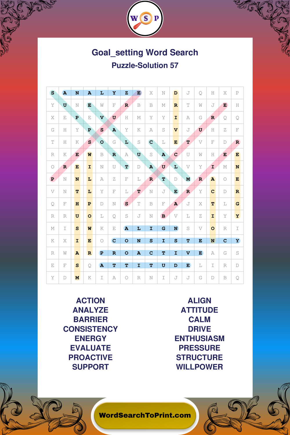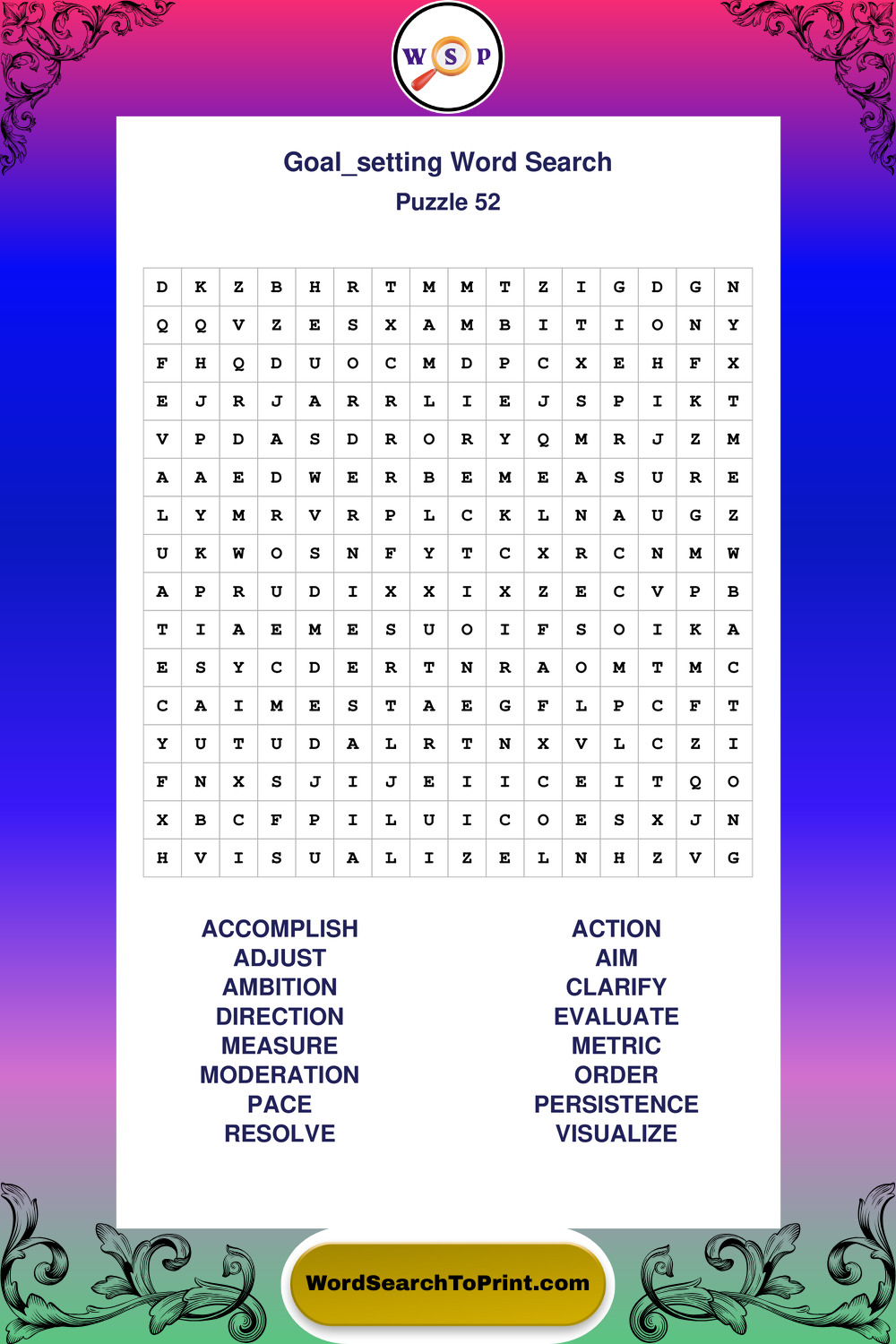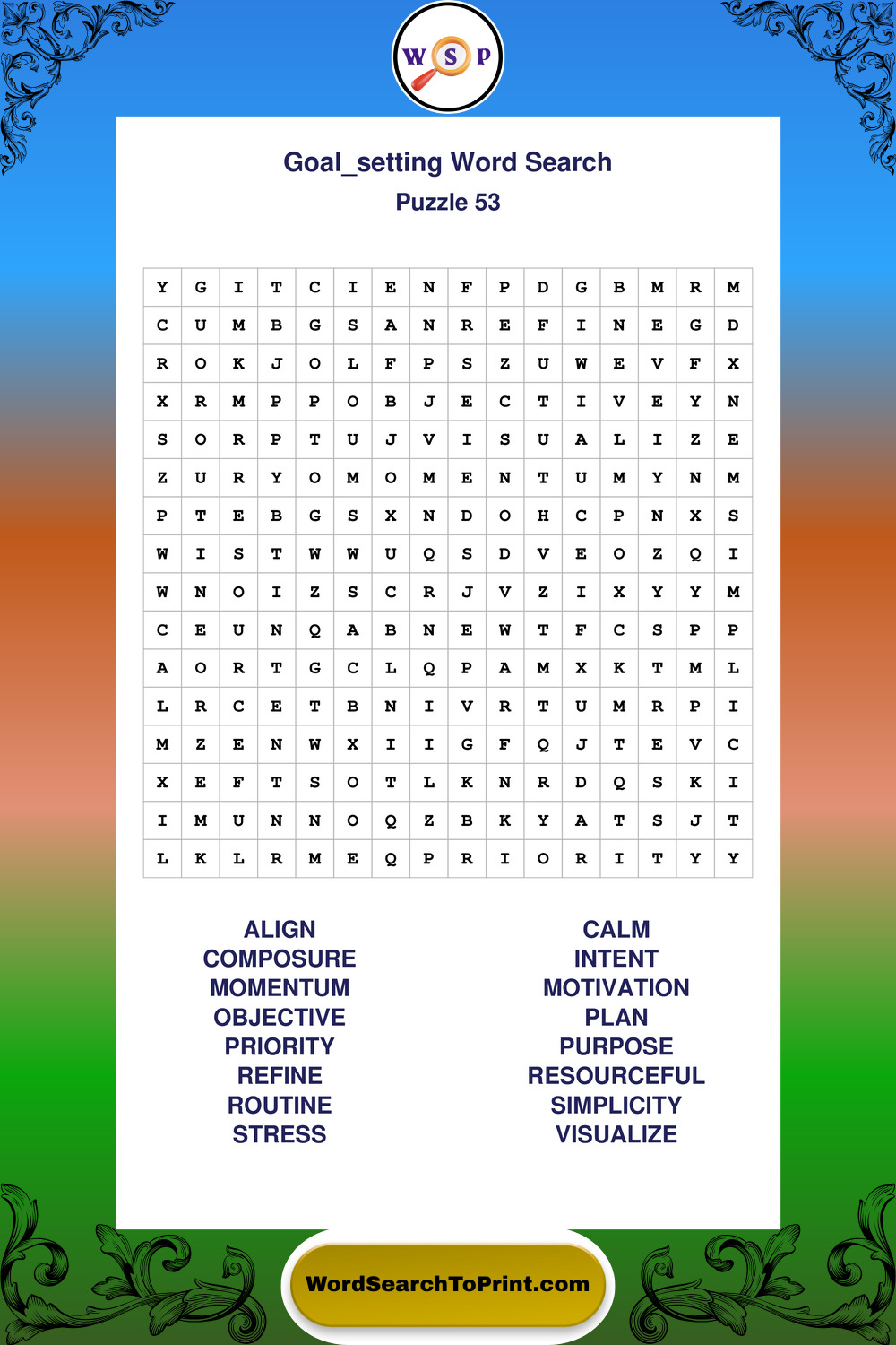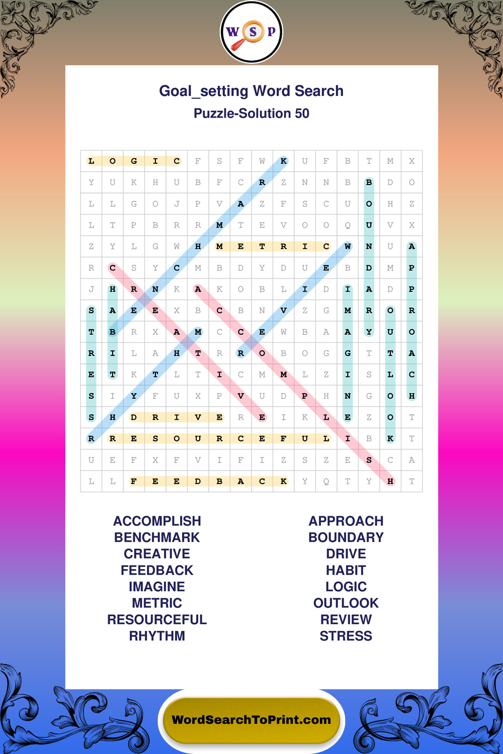 Printable Goal Setting Wordsearch Puzzles