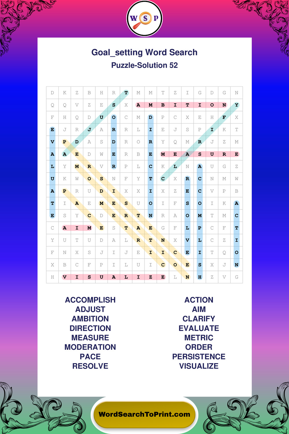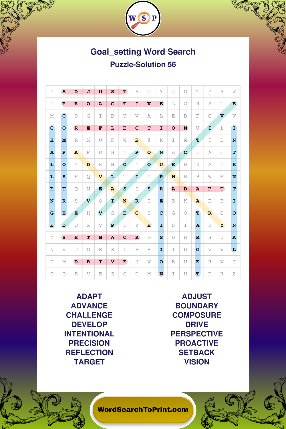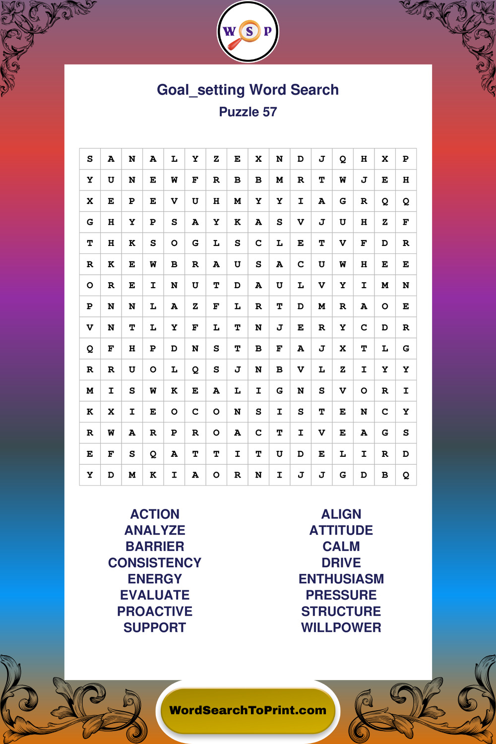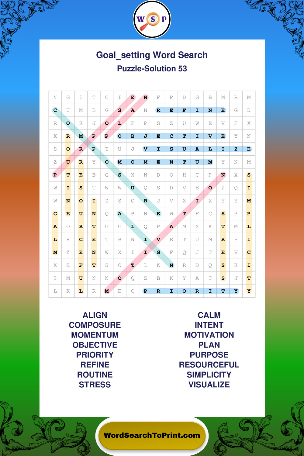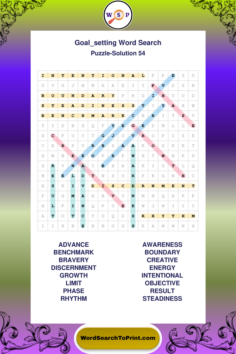Printable Goal Setting Wordsearch Puzzles