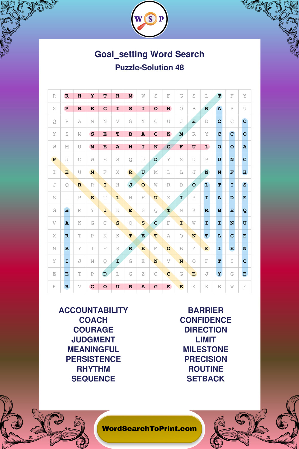 These puzzles focus on motivation, goal setting, life lessons, inspiration, and personal development concepts. These puzzles make it enjoyable to explore this theme while improving focus and reinforcing key terms. You may also enjoy our Wisdom word search puzzles and Morning Routine word search puzzles.