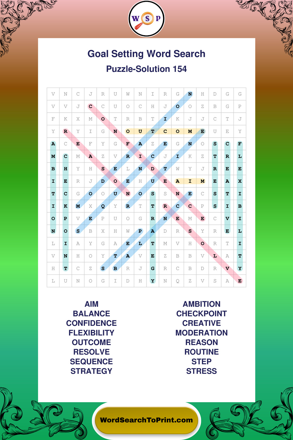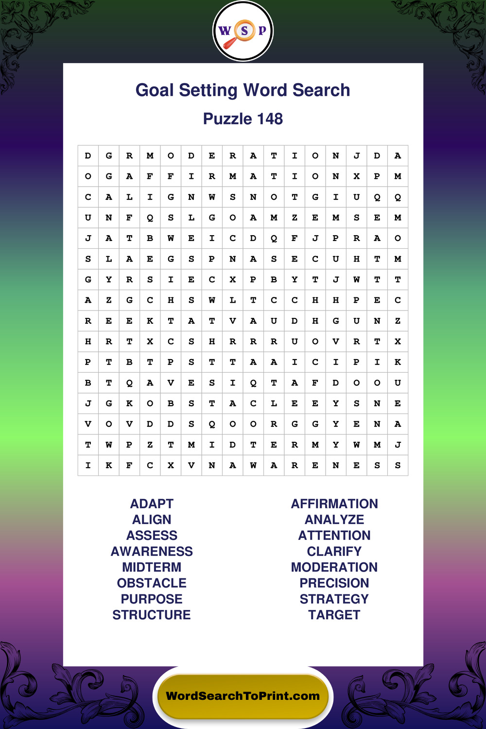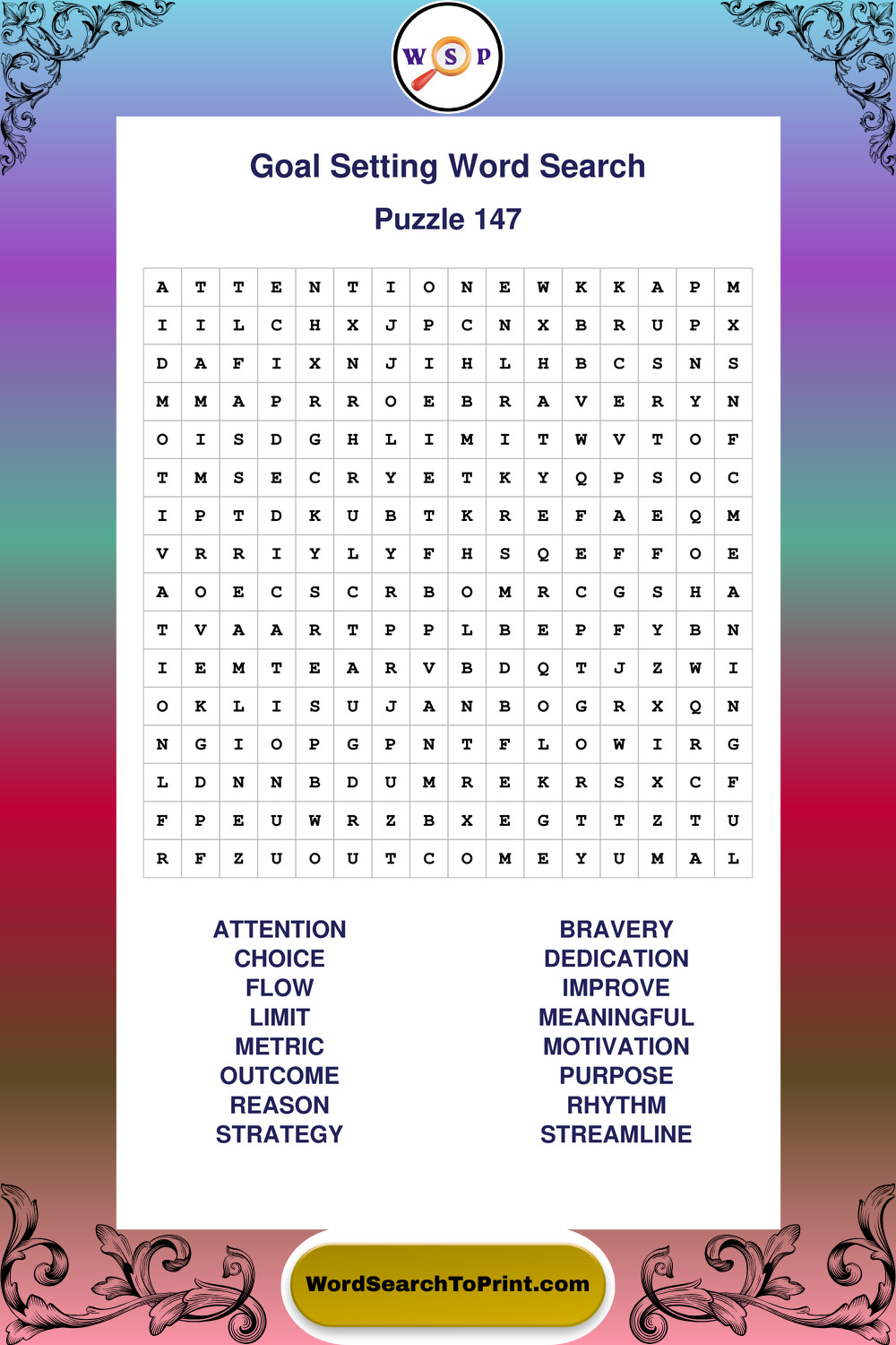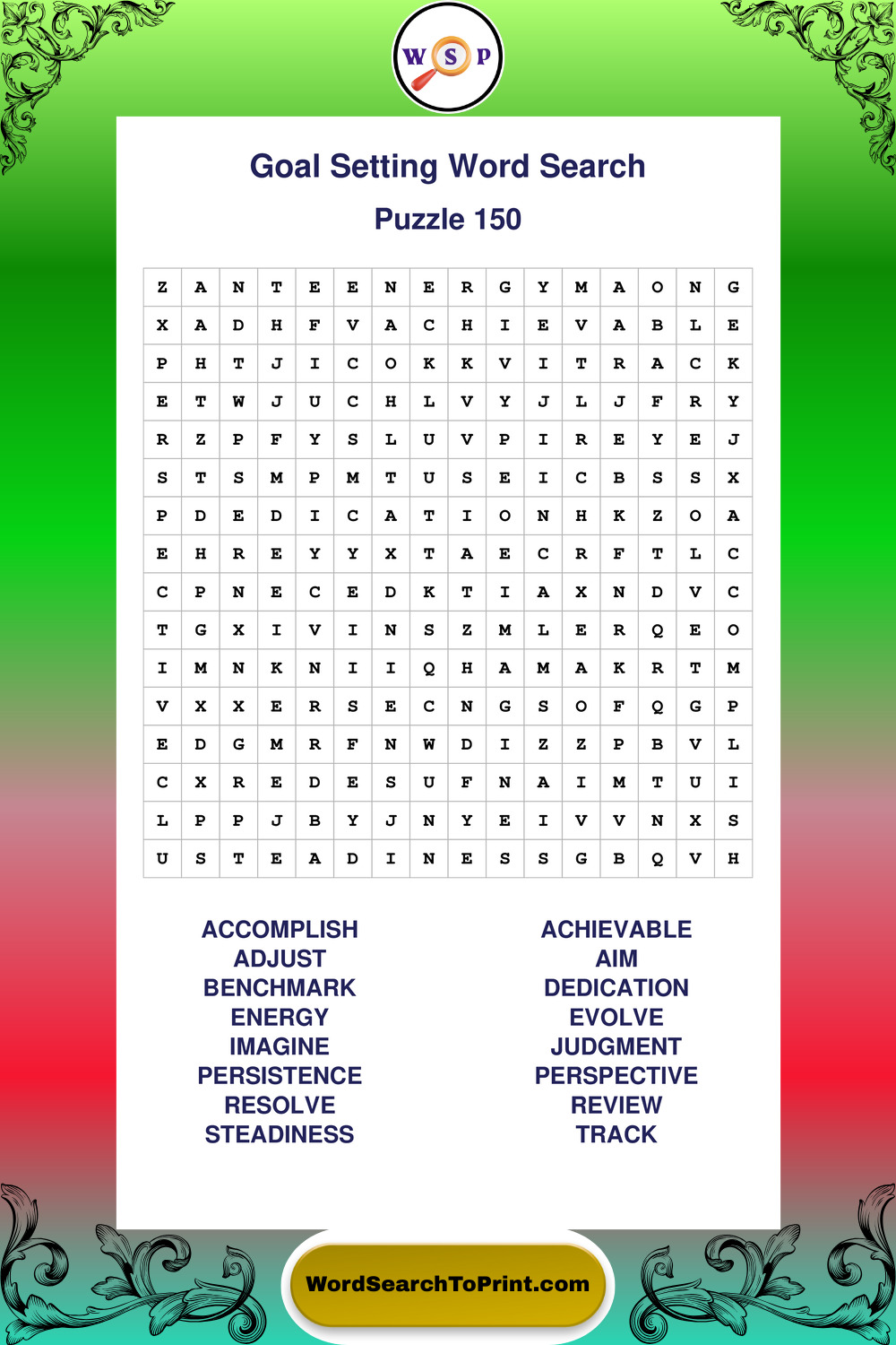 Discover printable large print Goal Setting wordsearches made for relaxed enjoyment and clear, uncluttered solving.