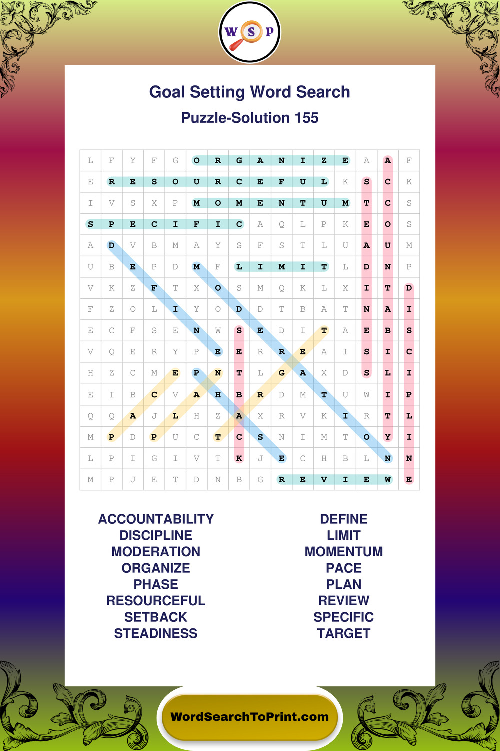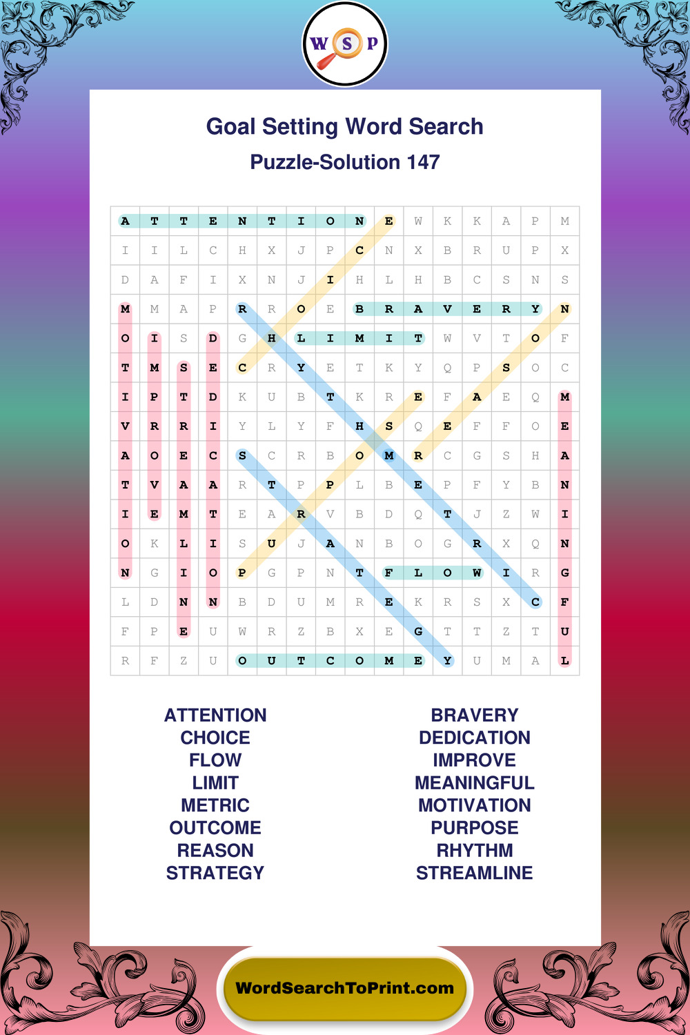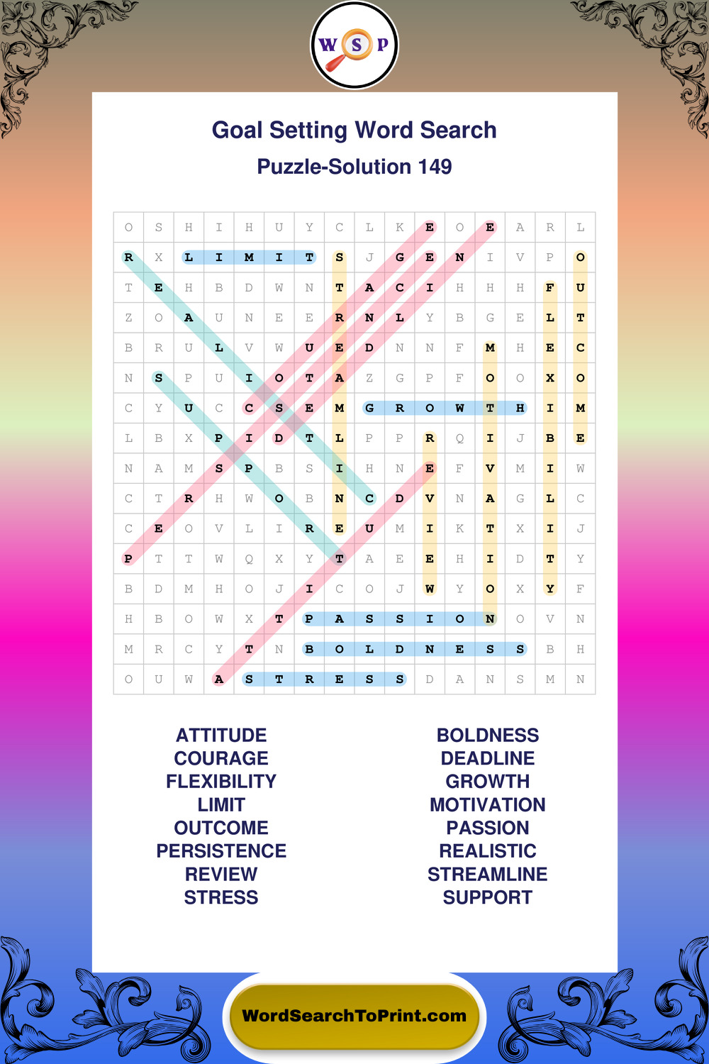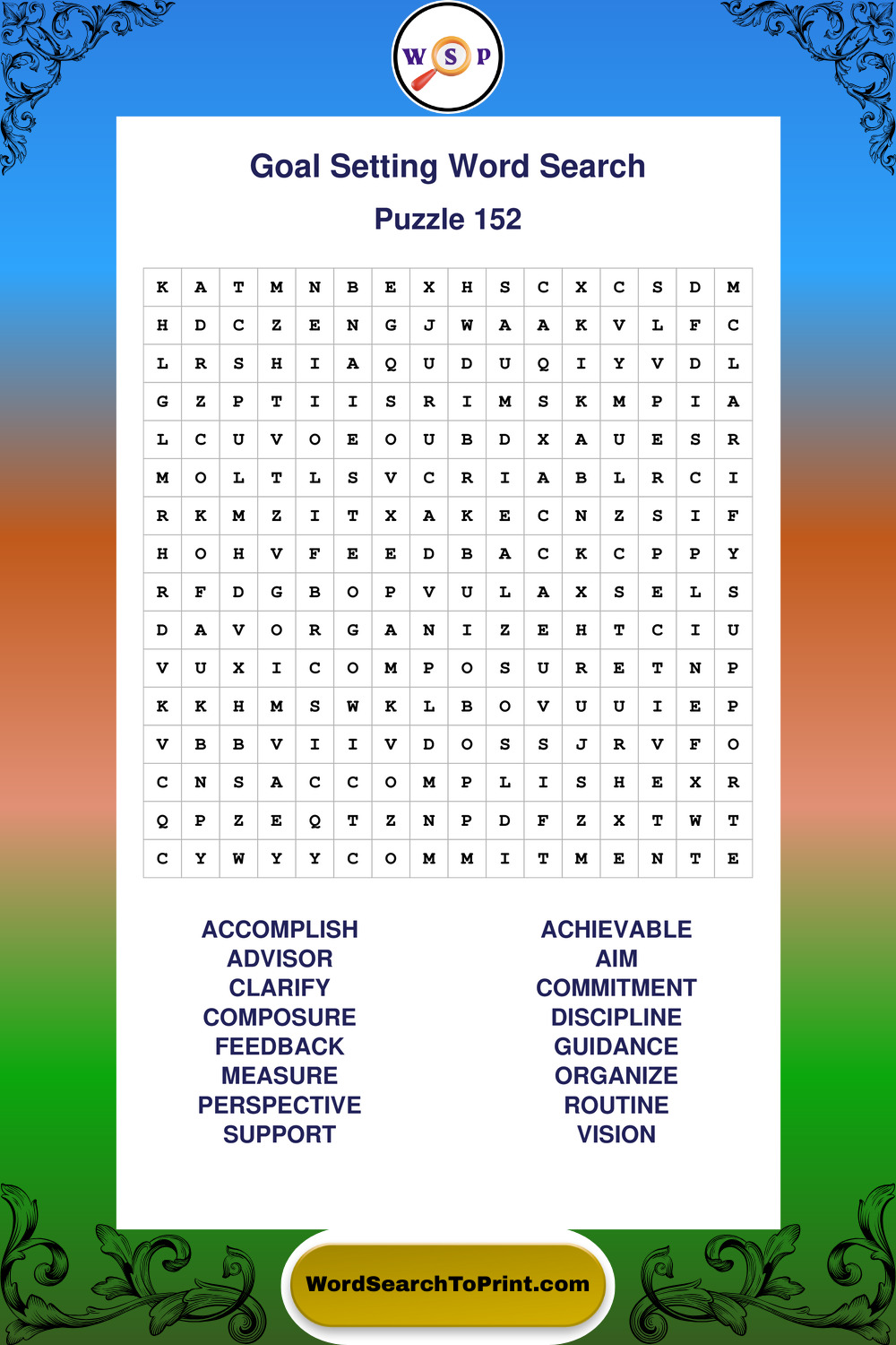 Discover printable large print Goal Setting wordsearches made for relaxed enjoyment and clear, uncluttered solving.