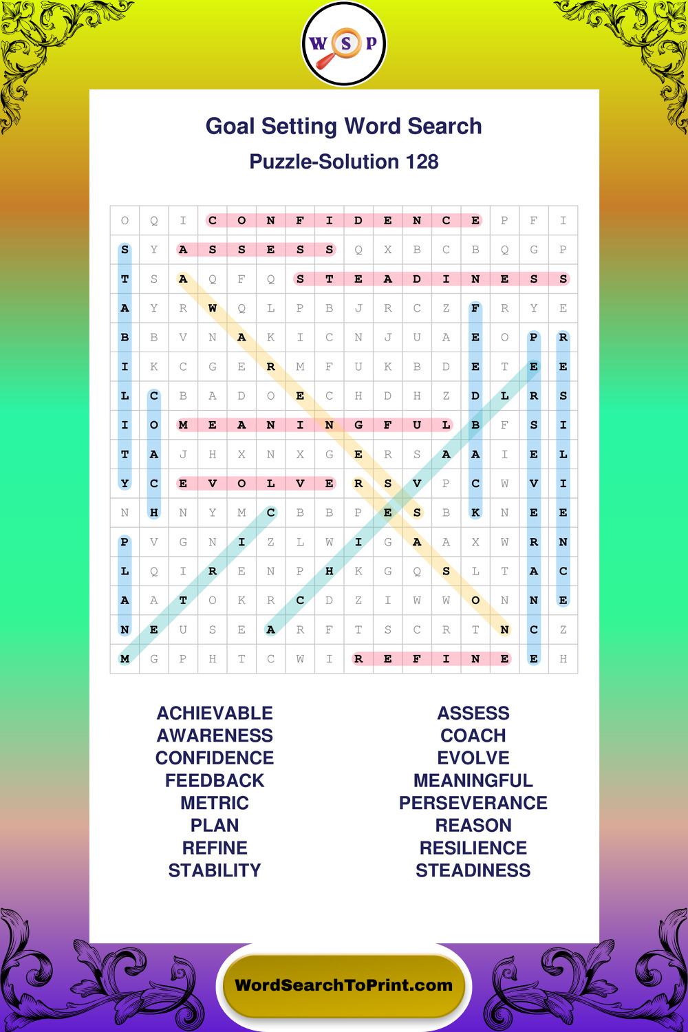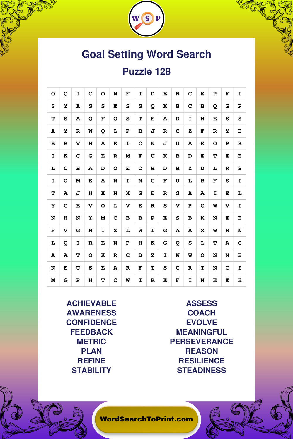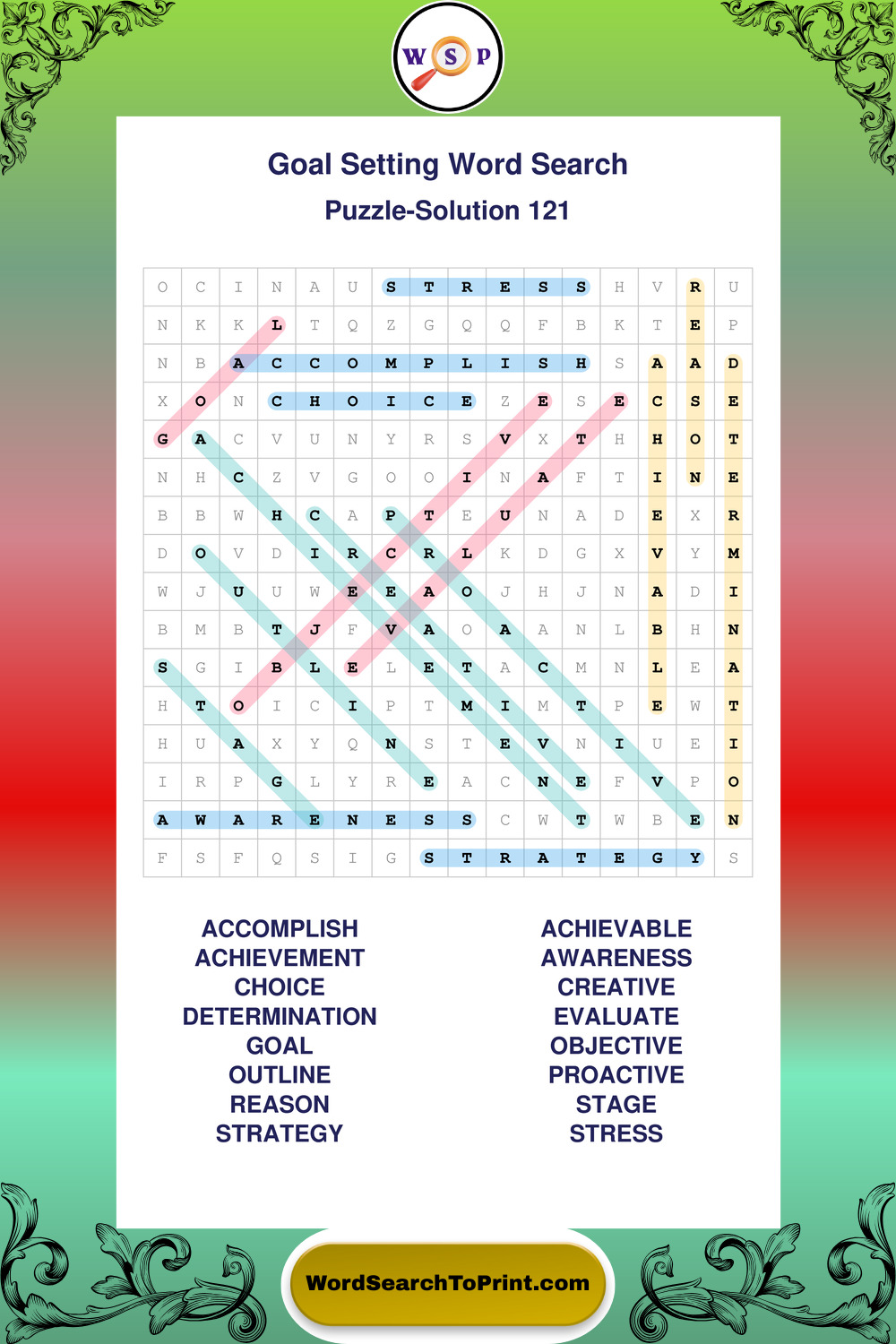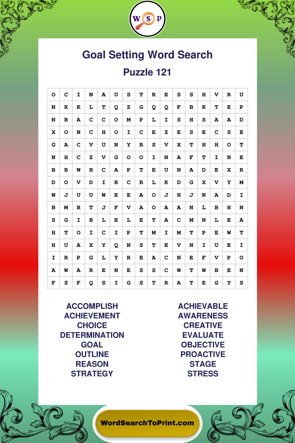 Printable Goal Setting Wordsearch Puzzles
