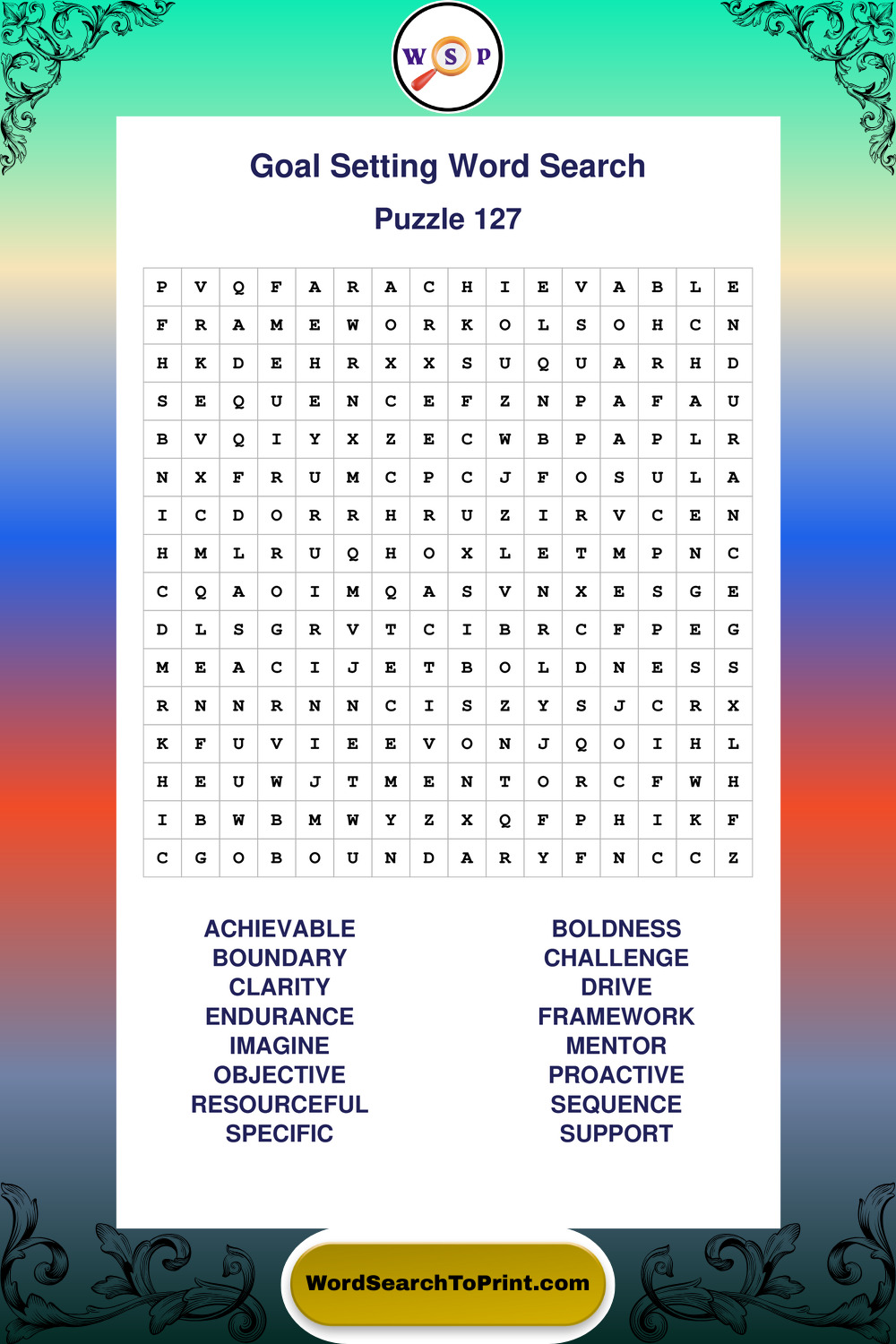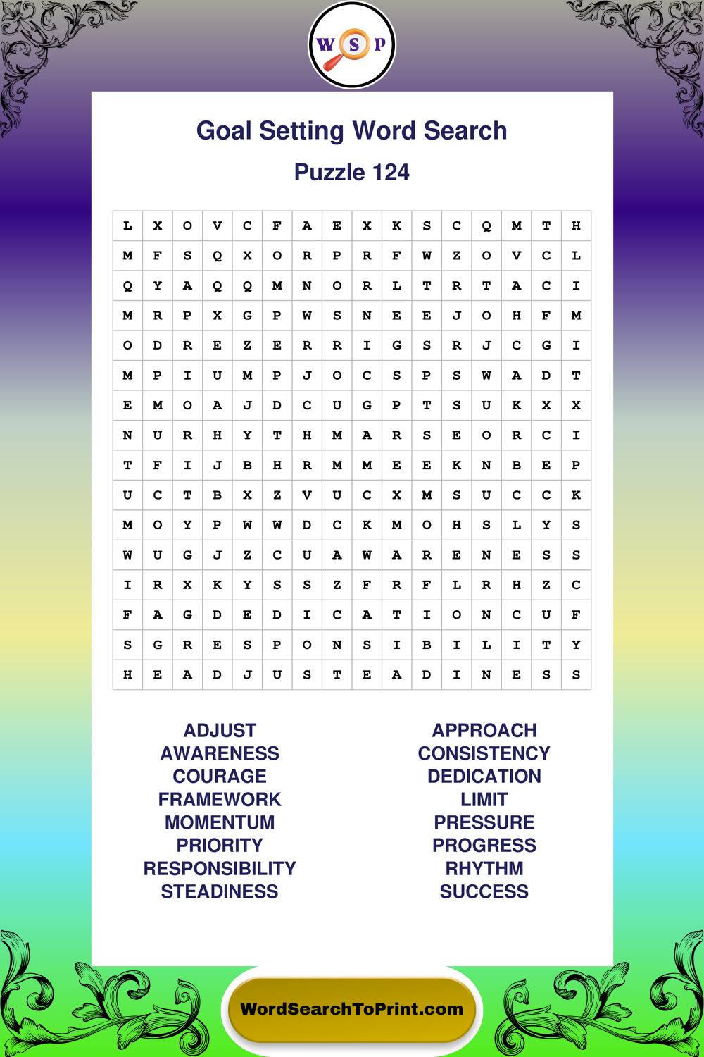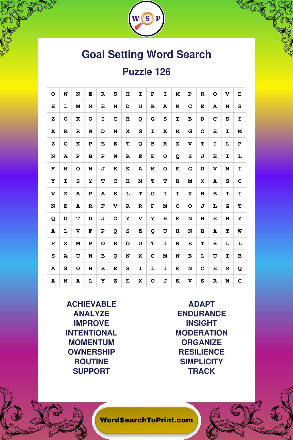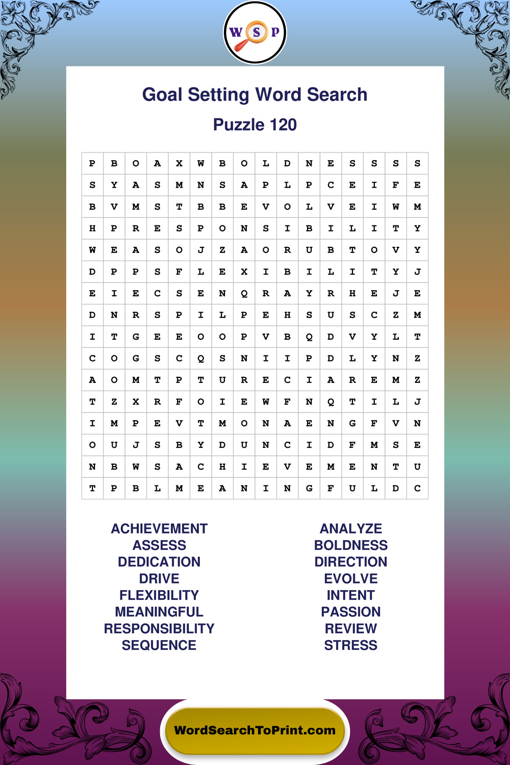 Printable Goal Setting Wordsearch Puzzles