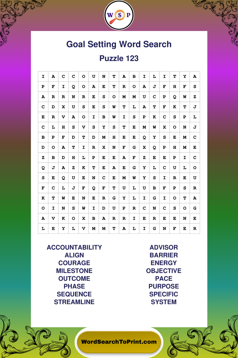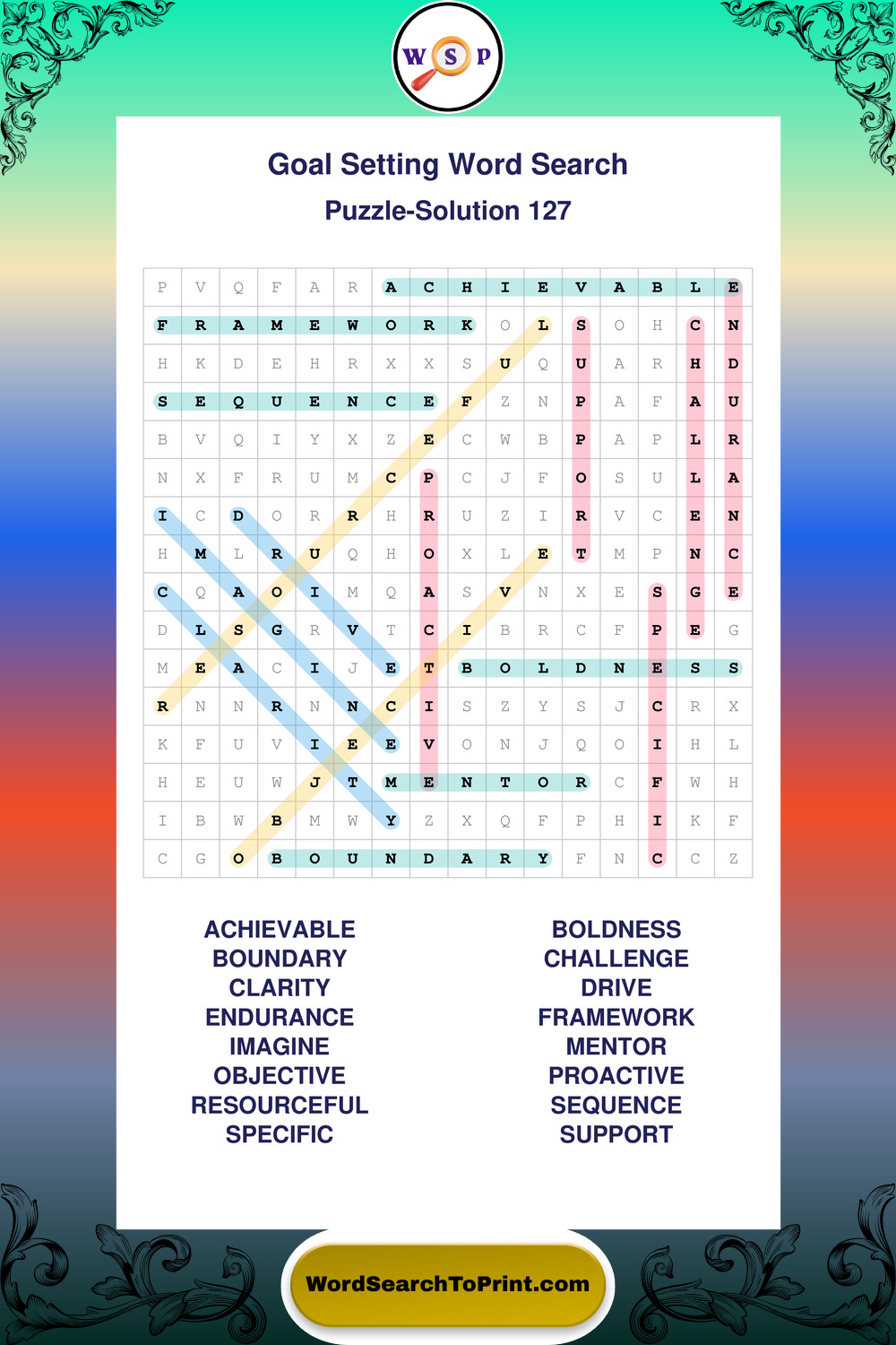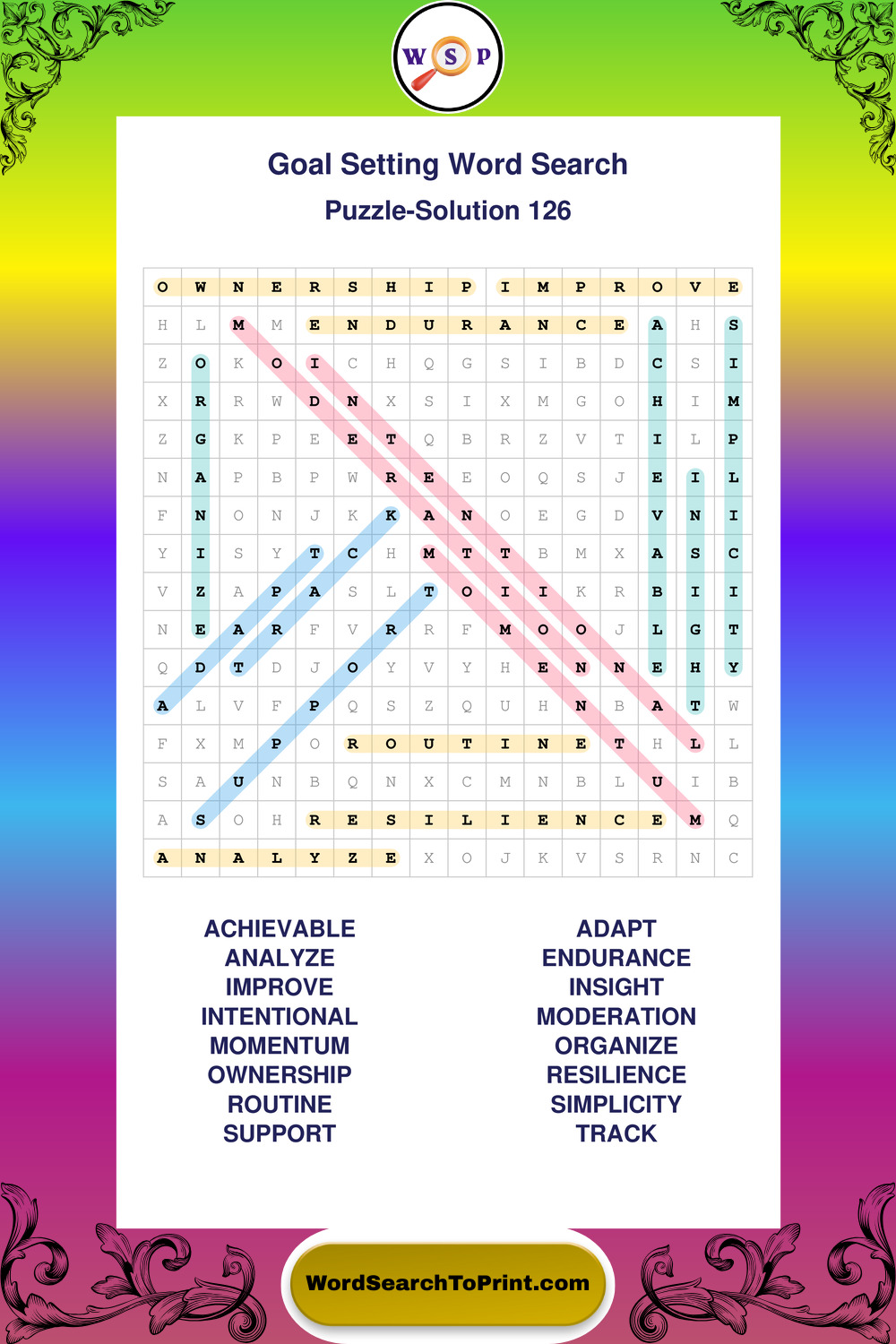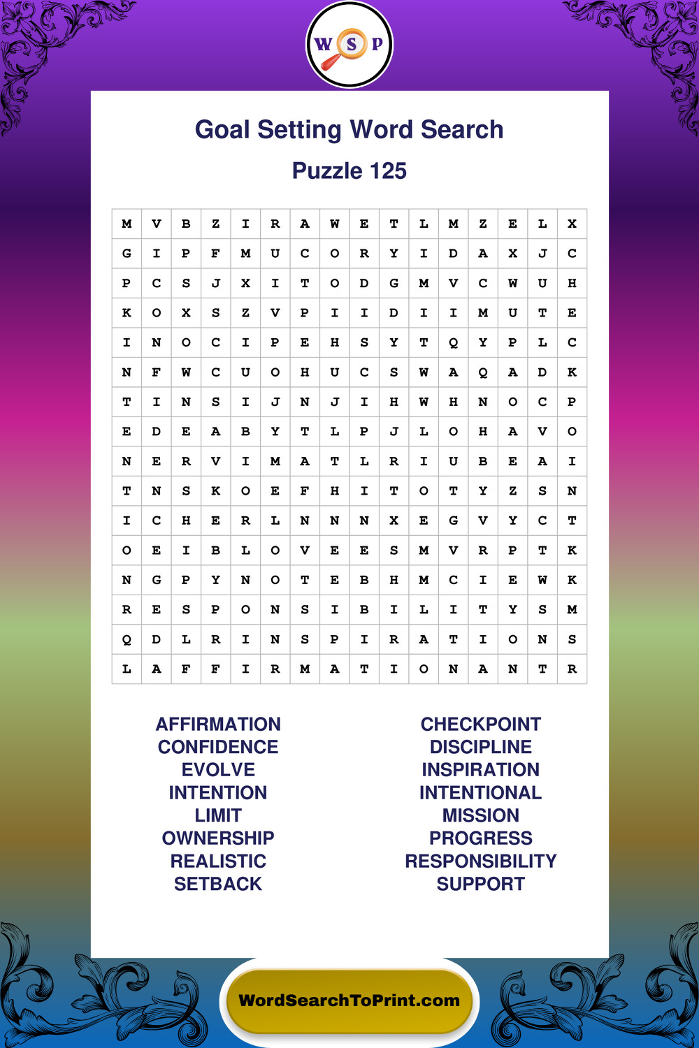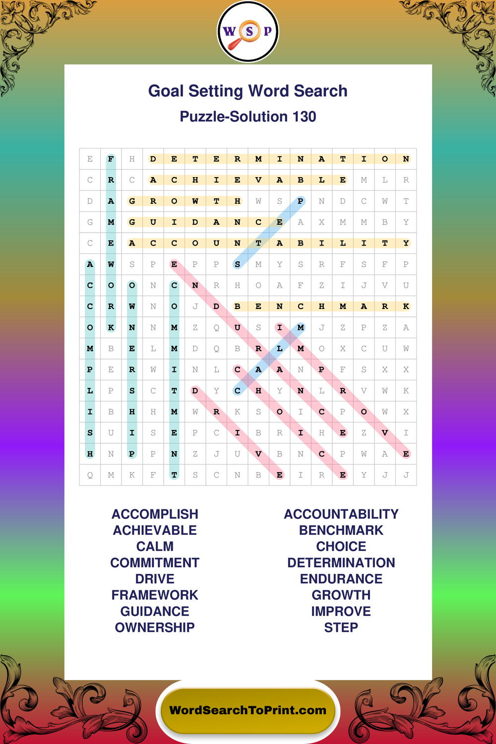 Printable Goal Setting Wordsearch Puzzles