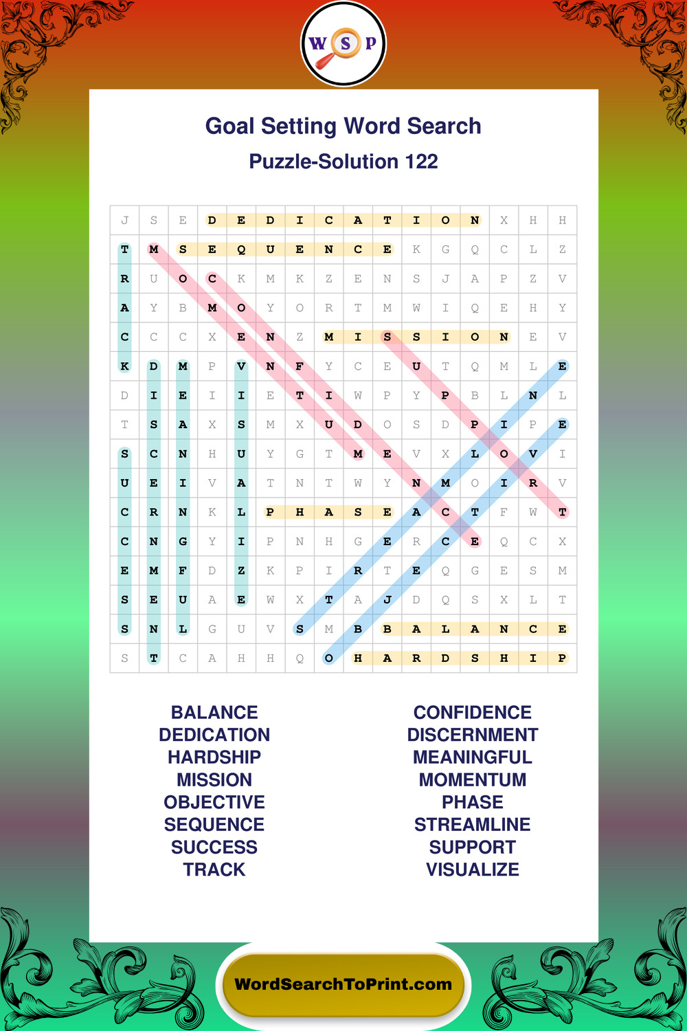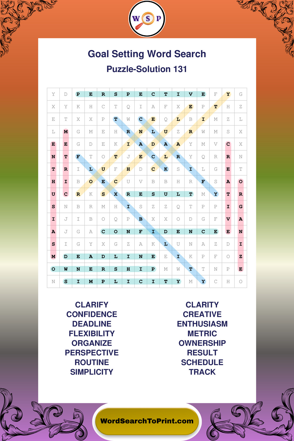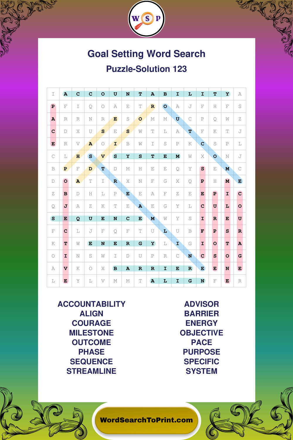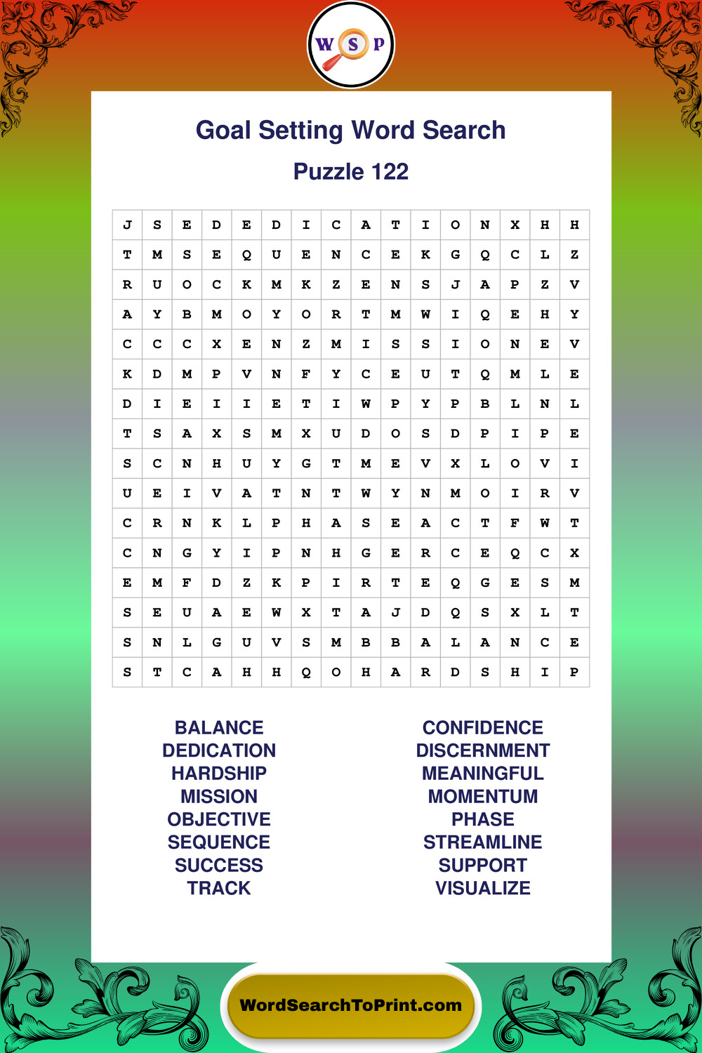 Printable Goal Setting Wordsearch Puzzles