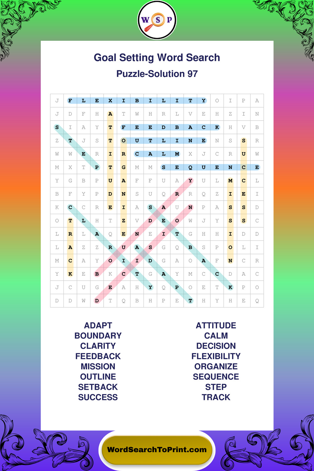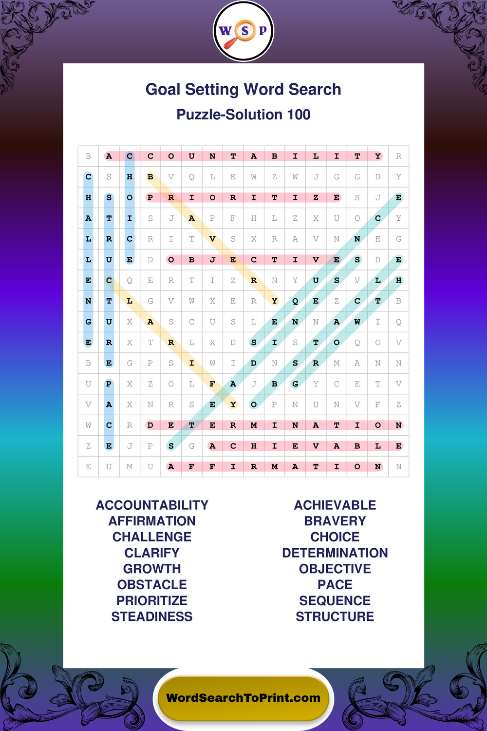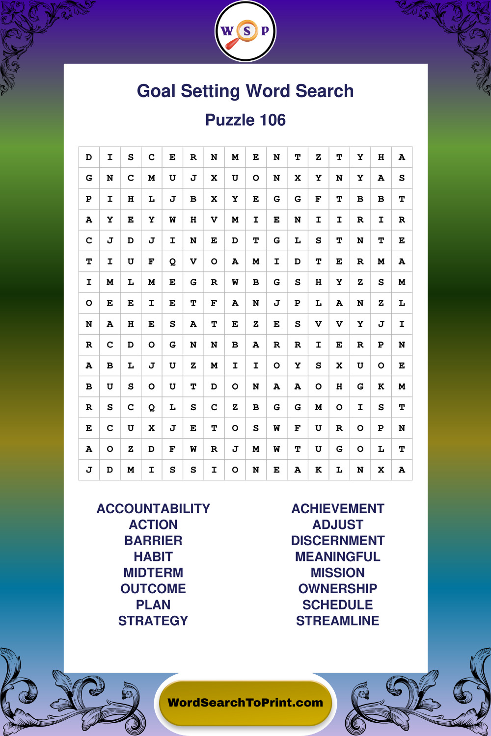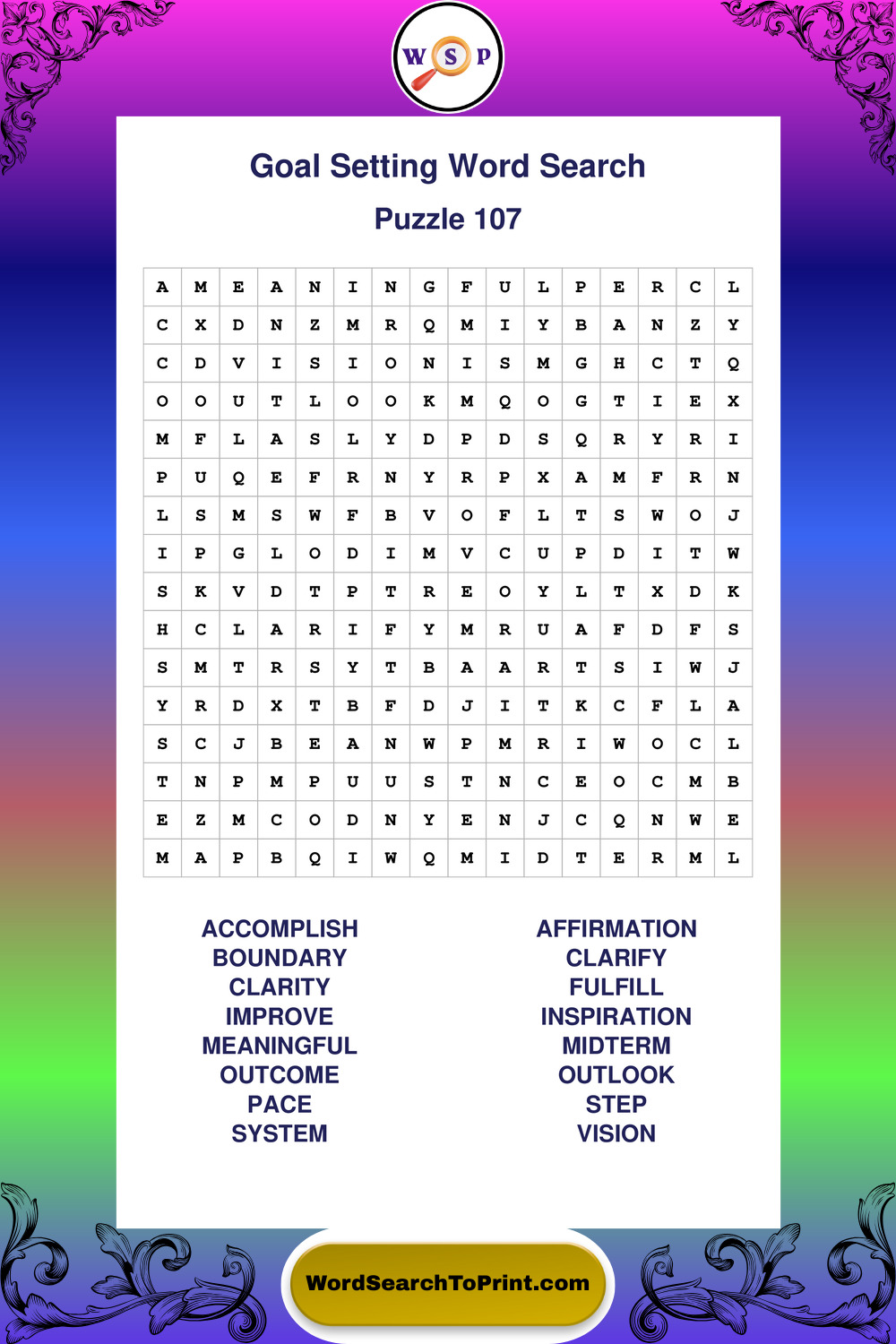 Discover printable large print Goal Setting wordsearches made for relaxed enjoyment and clear, uncluttered solving.