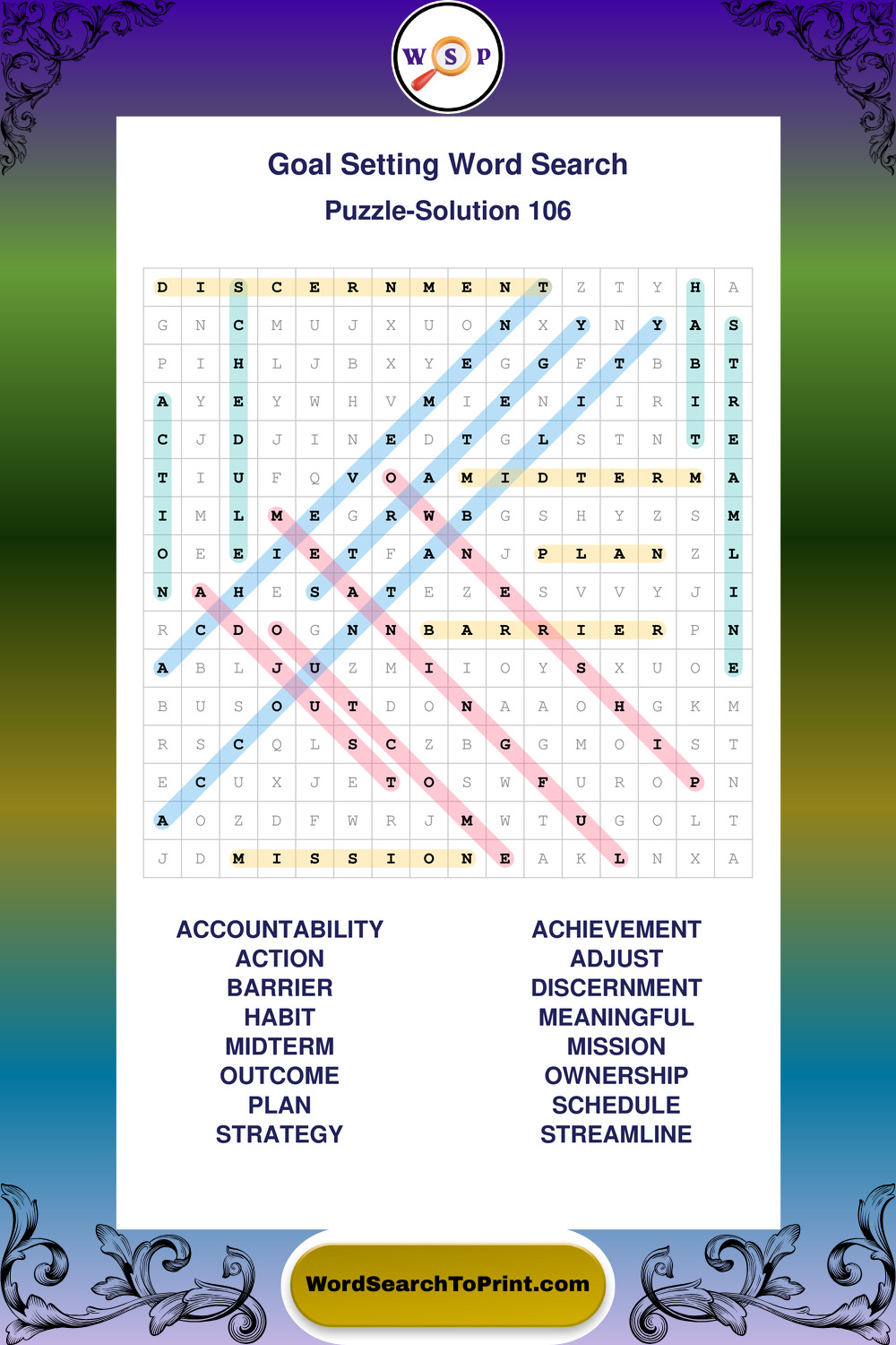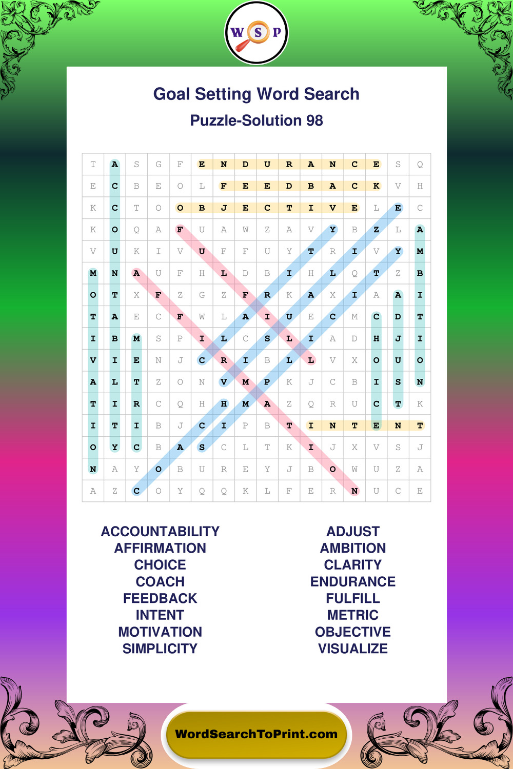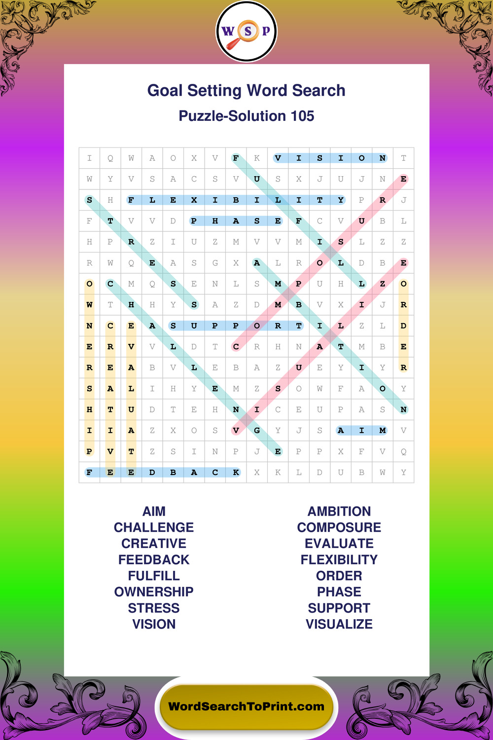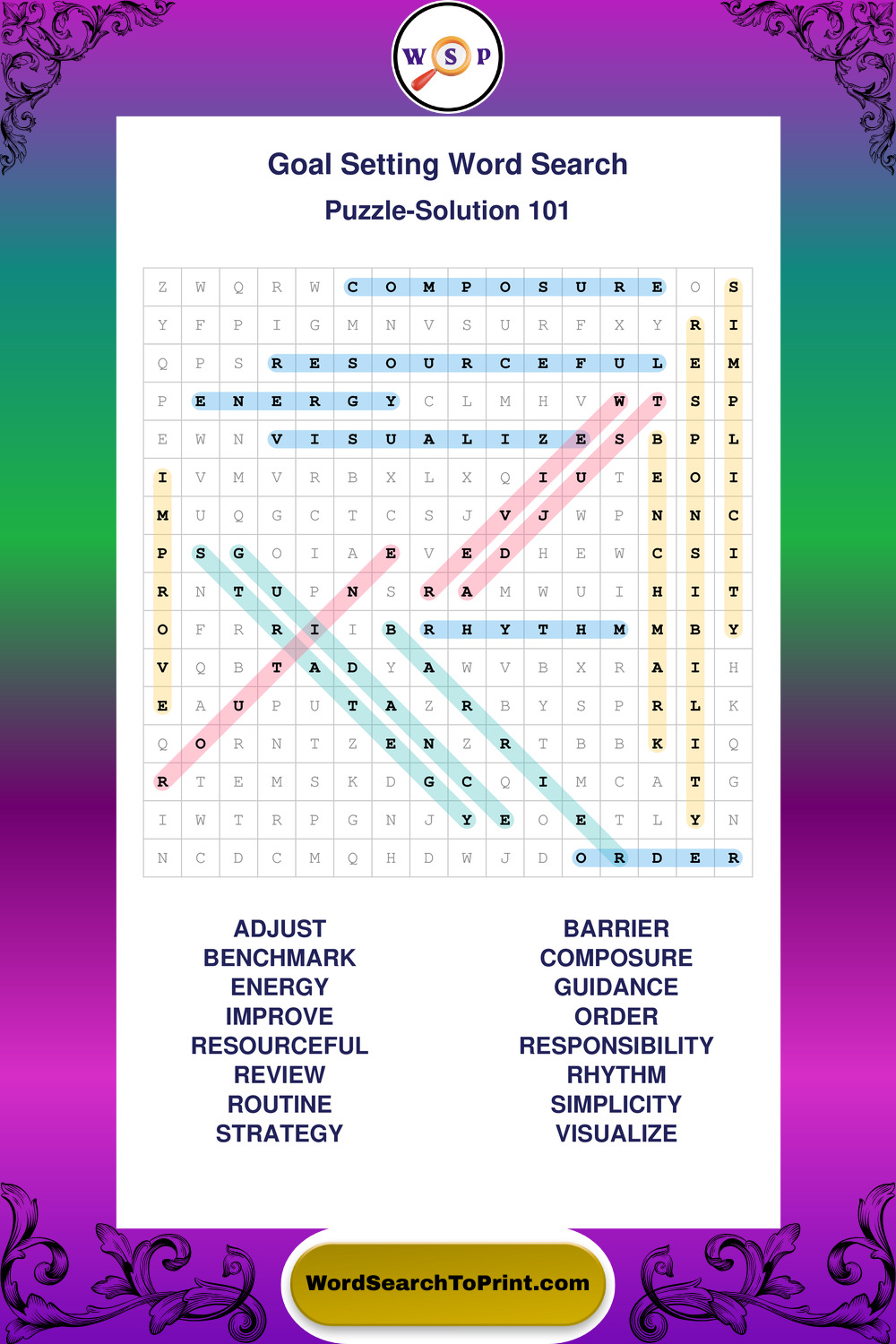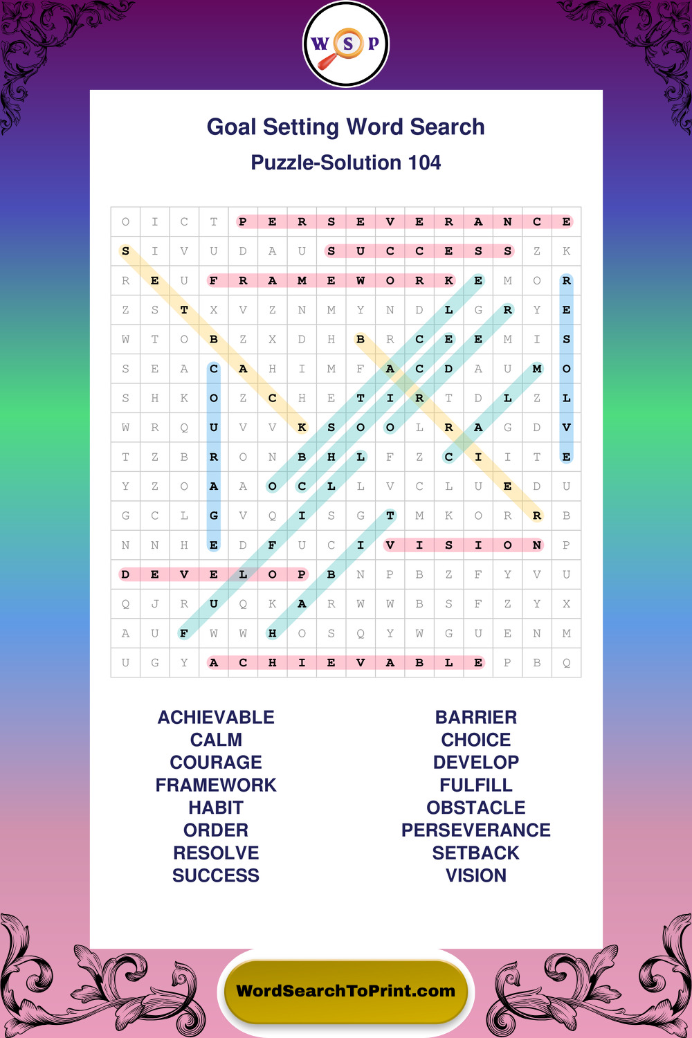 Discover printable large print Goal Setting wordsearches made for relaxed enjoyment and clear, uncluttered solving.