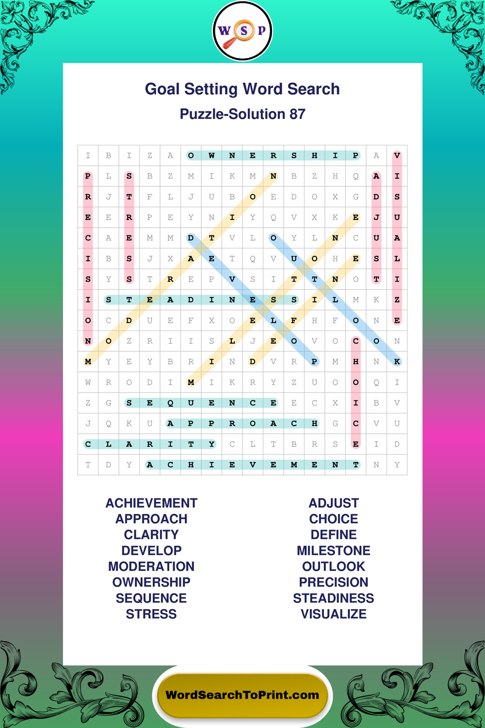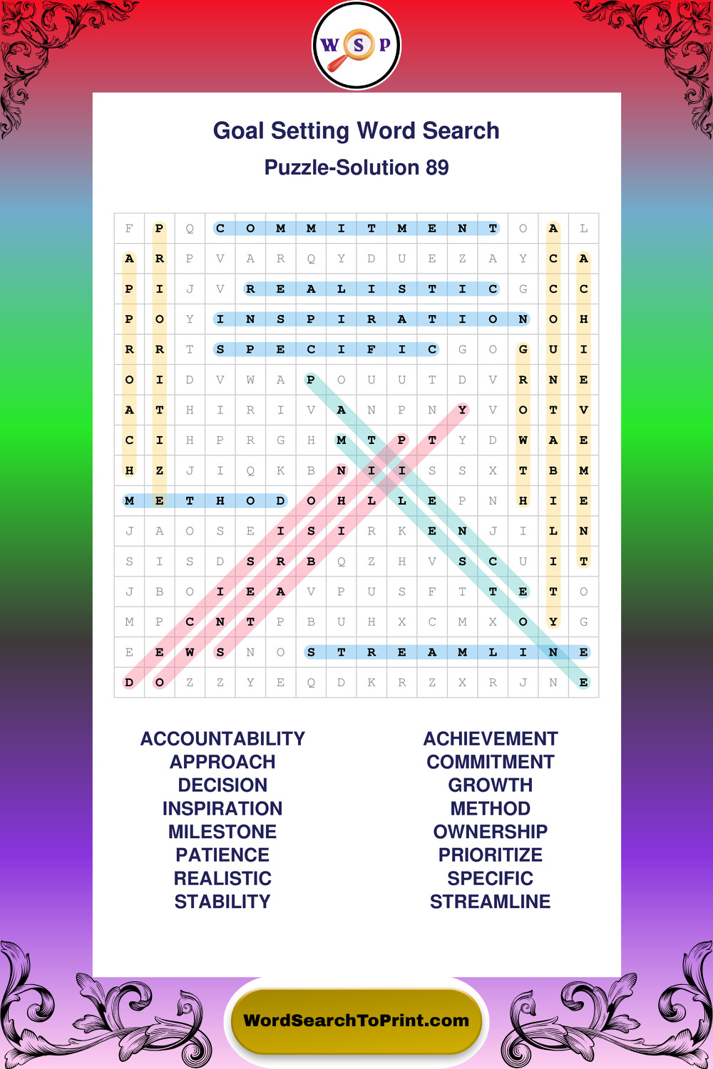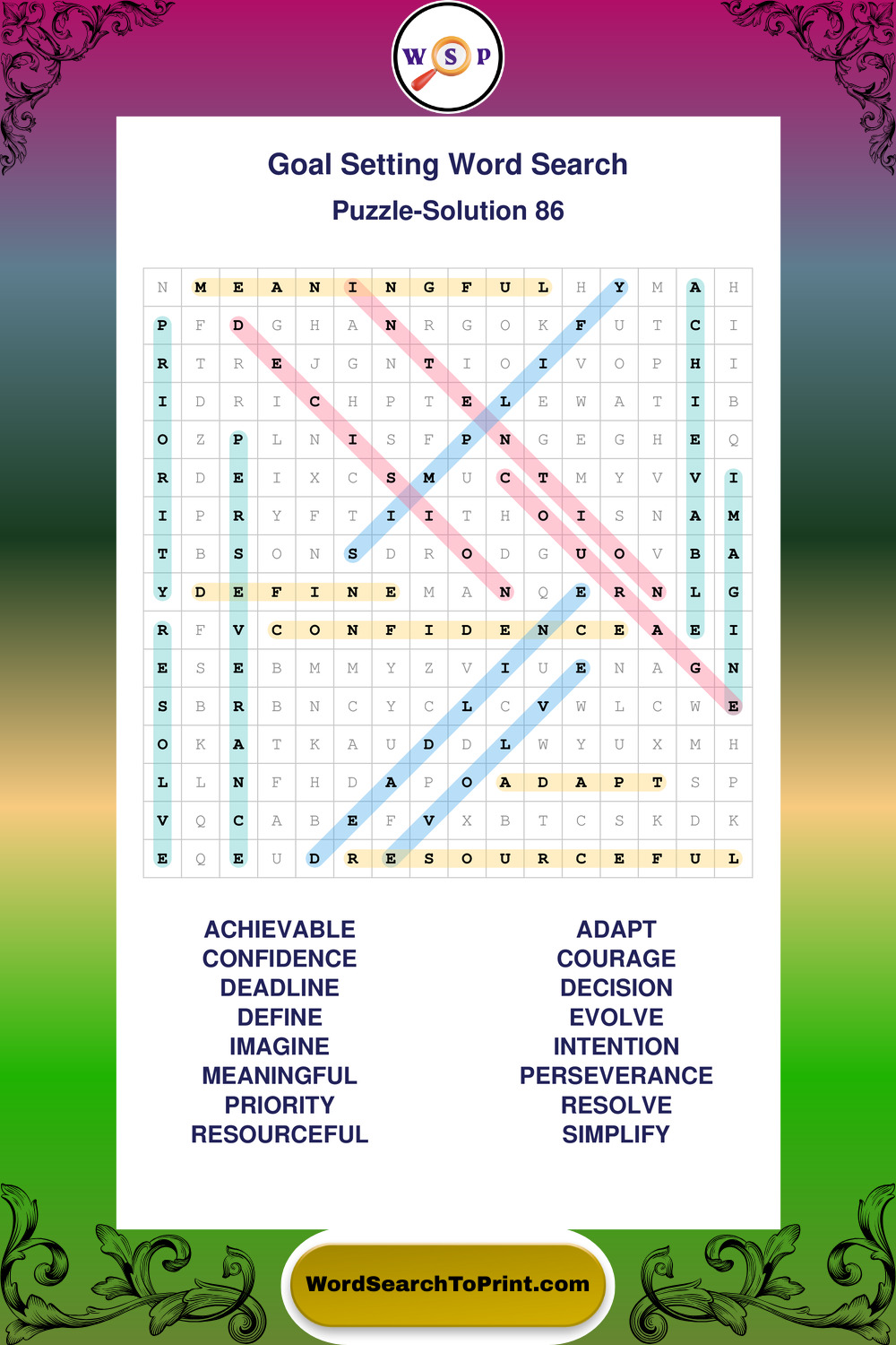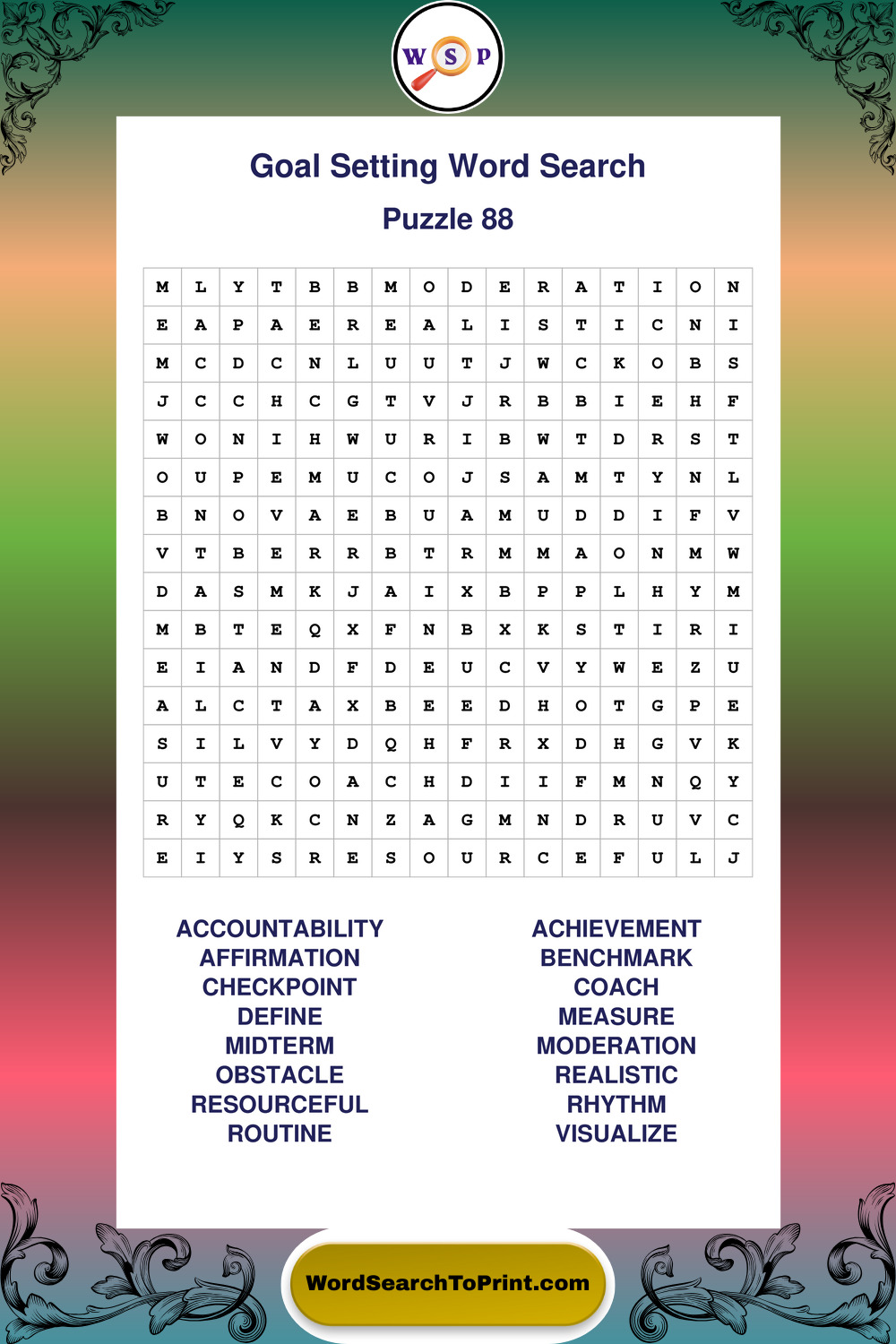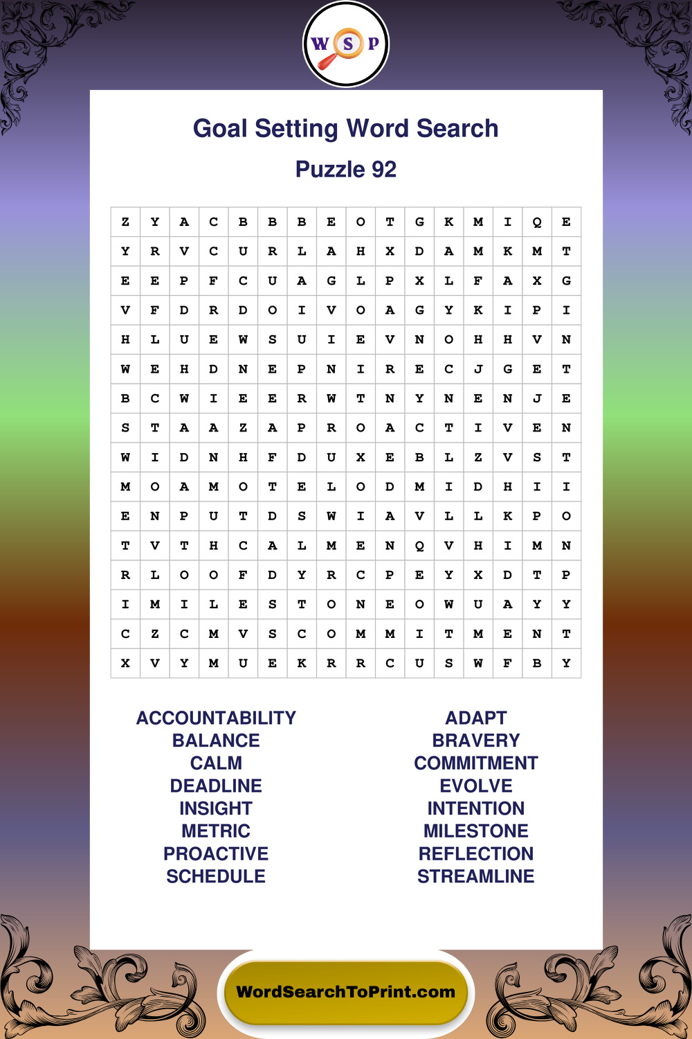 Discover printable large print Goal Setting wordsearches made for relaxed enjoyment and clear, uncluttered solving.