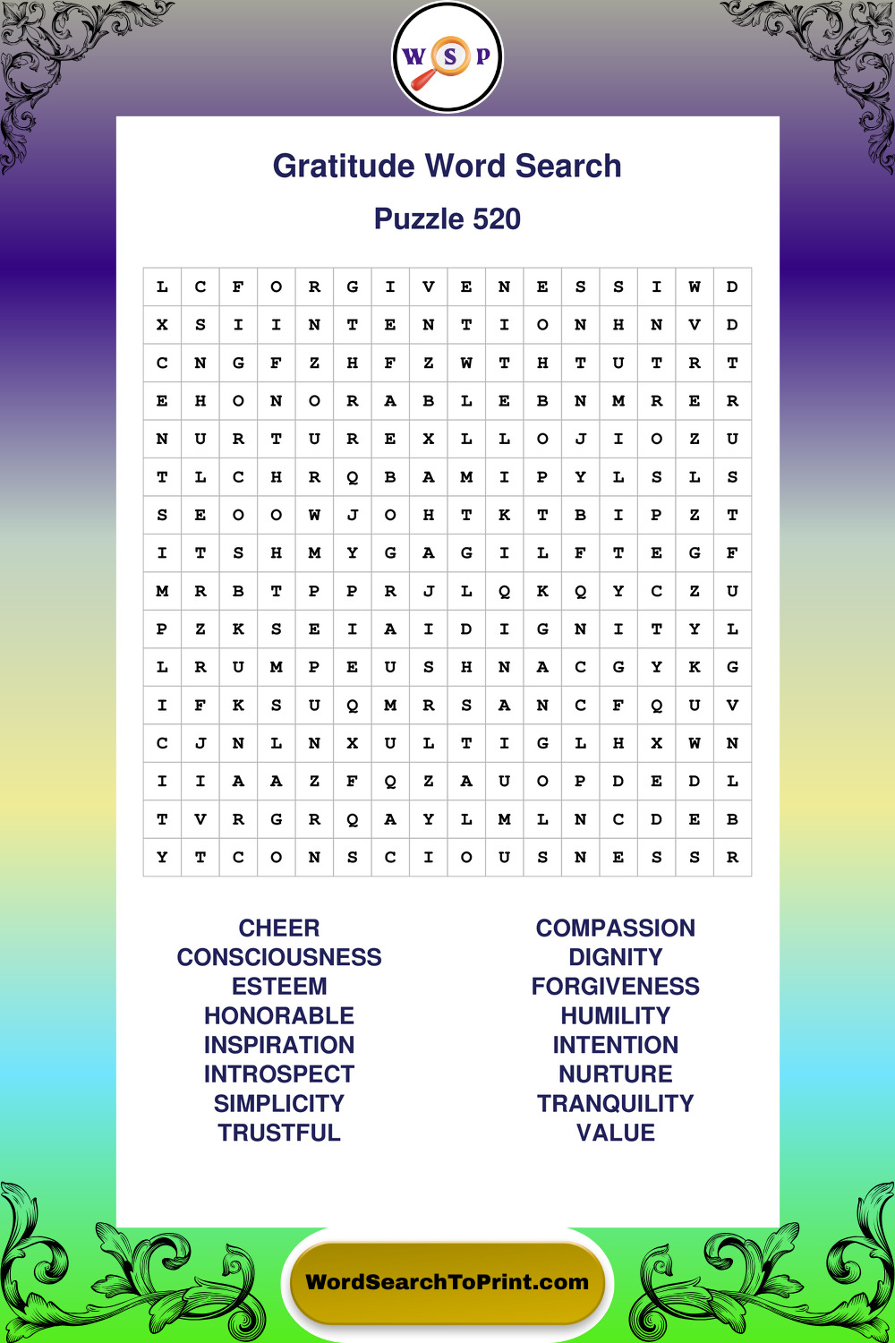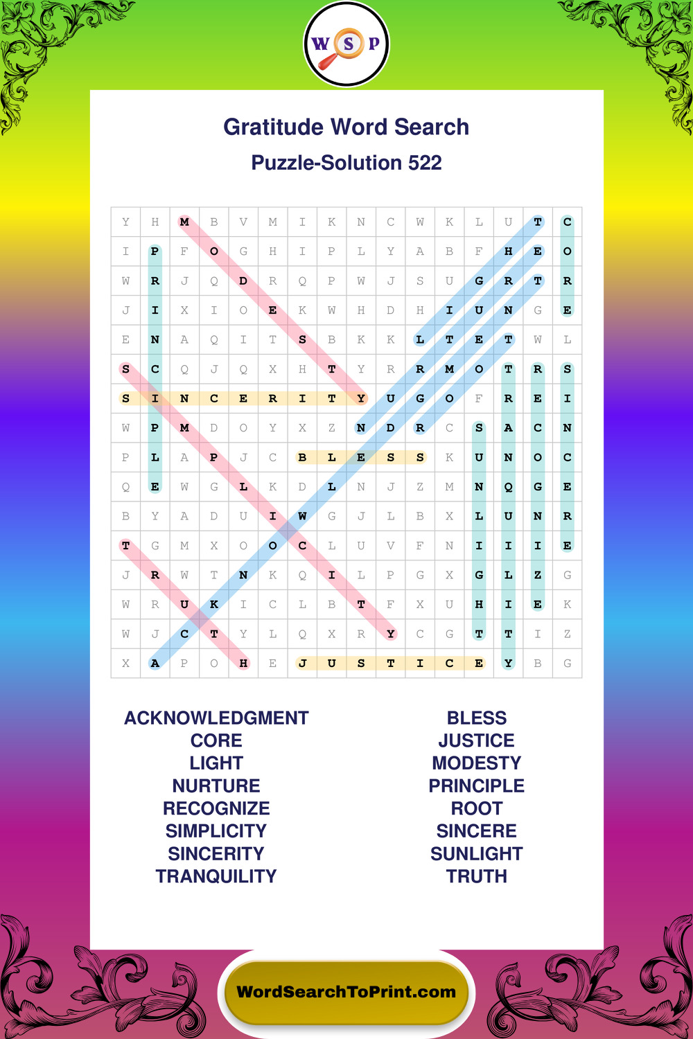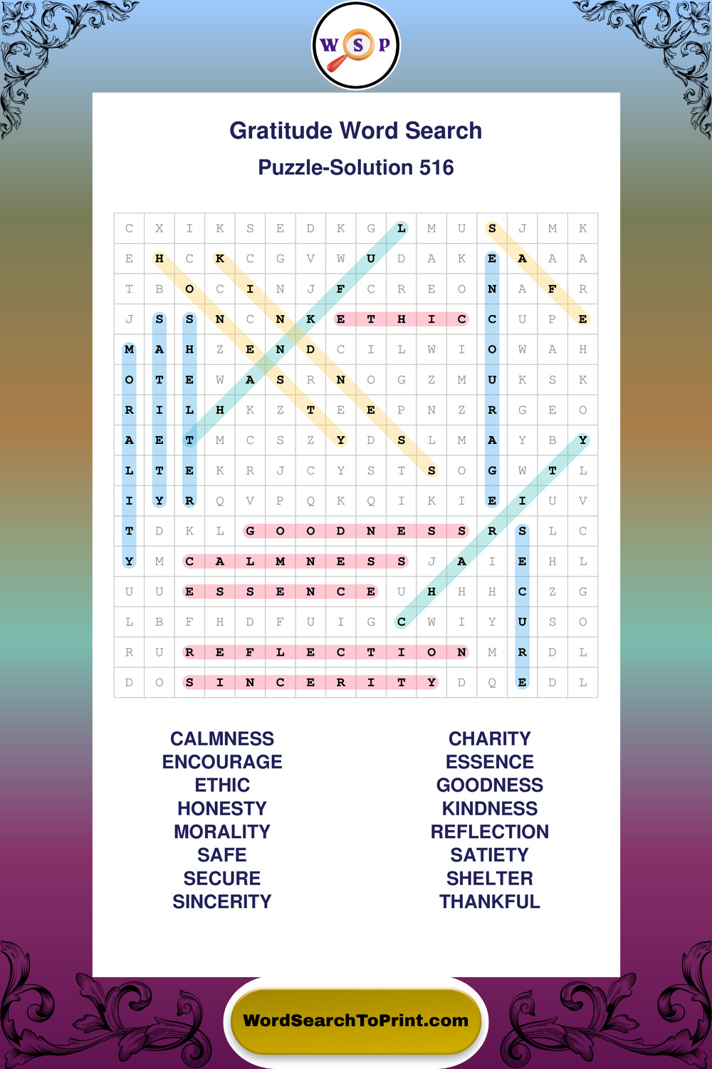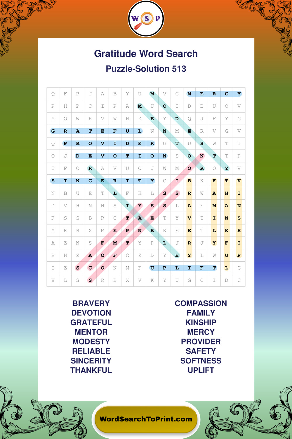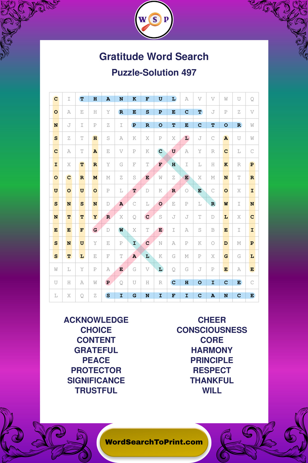 Browse our free large print Gratitude wordsearches below. All puzzles are printable and include solutions.