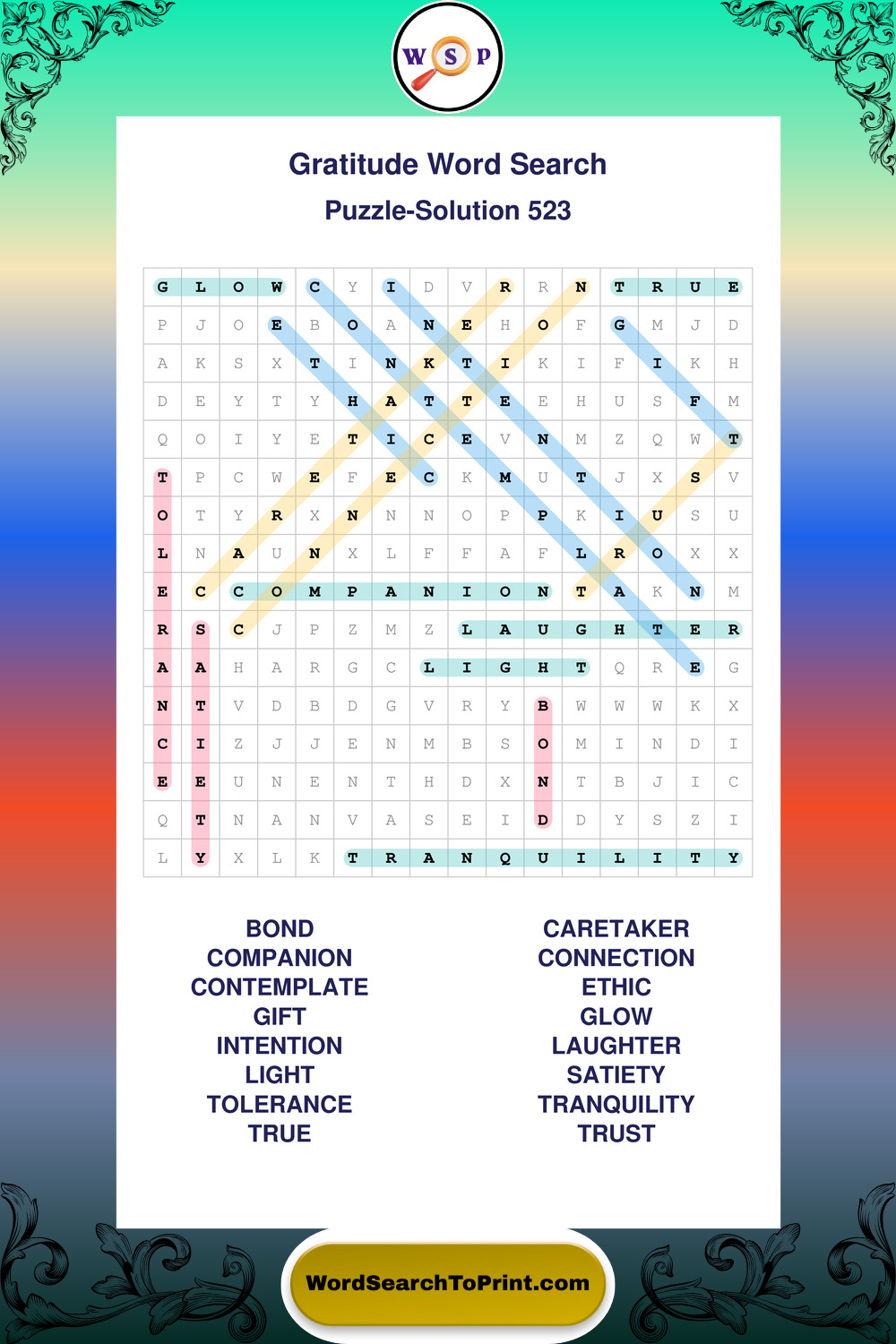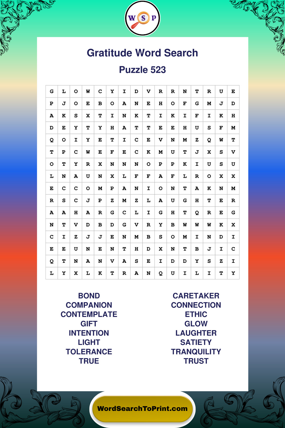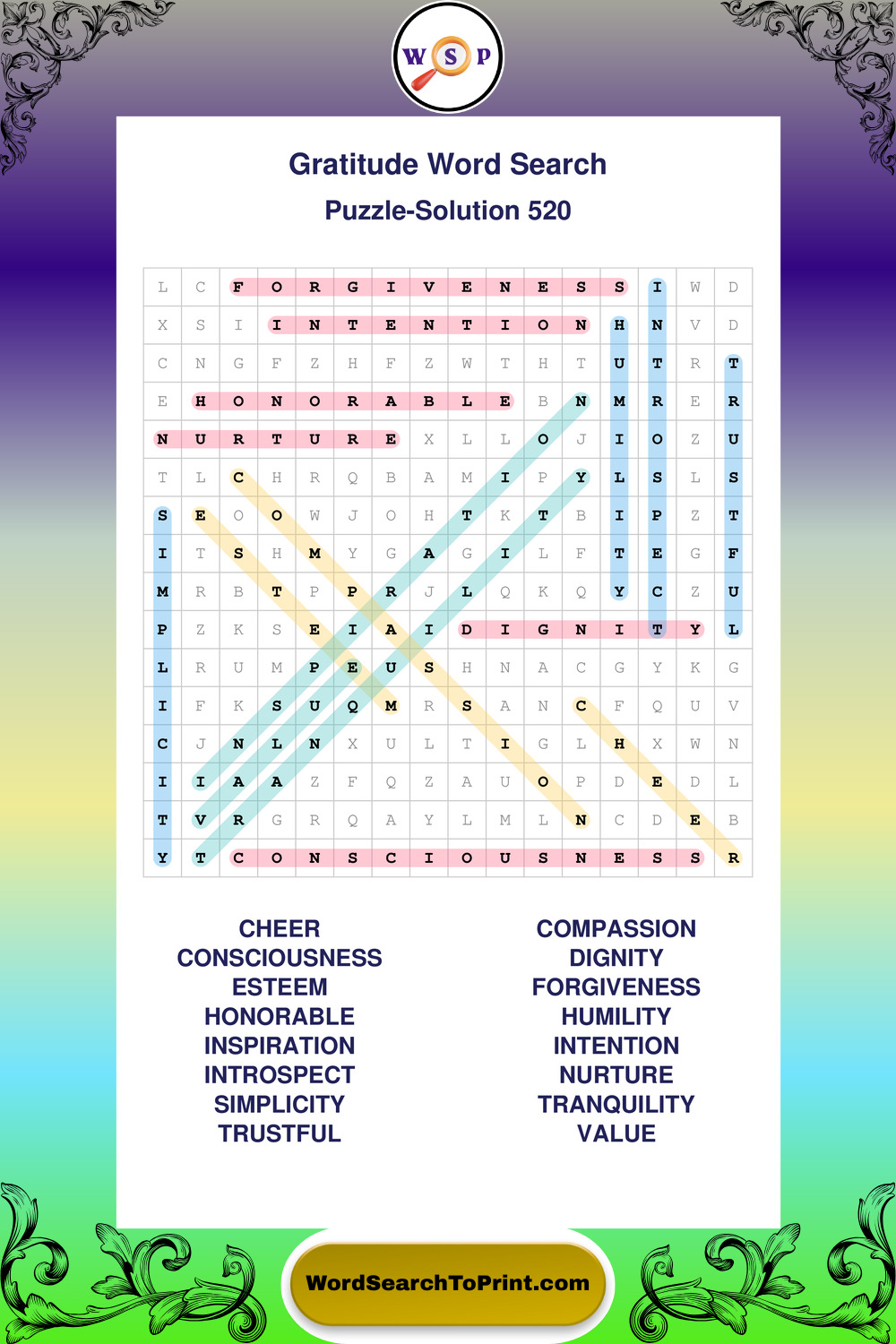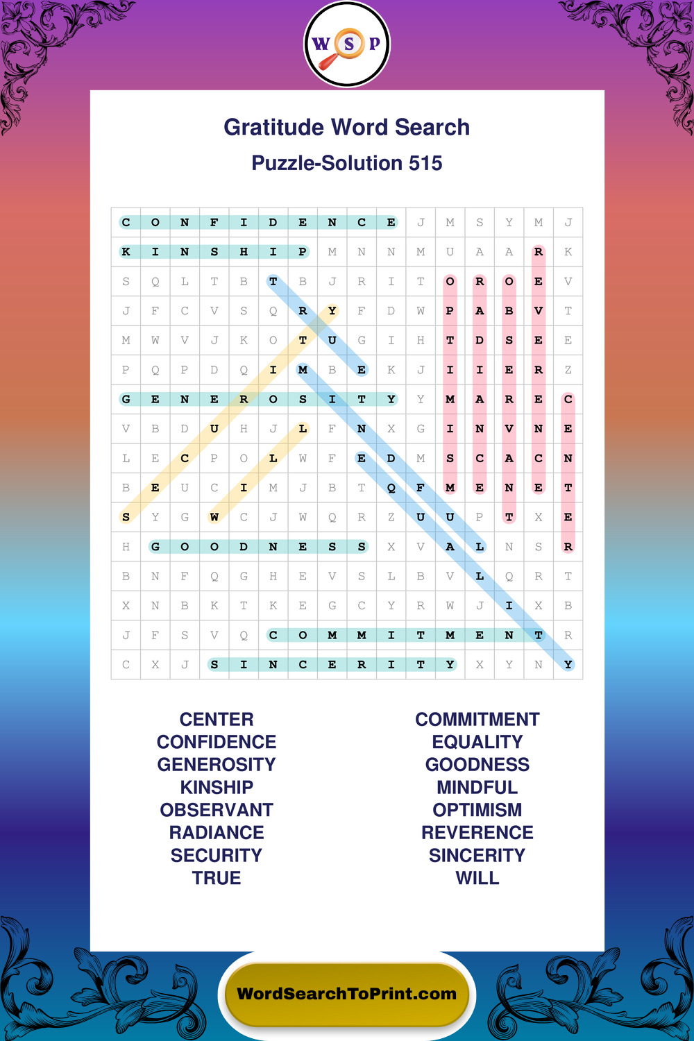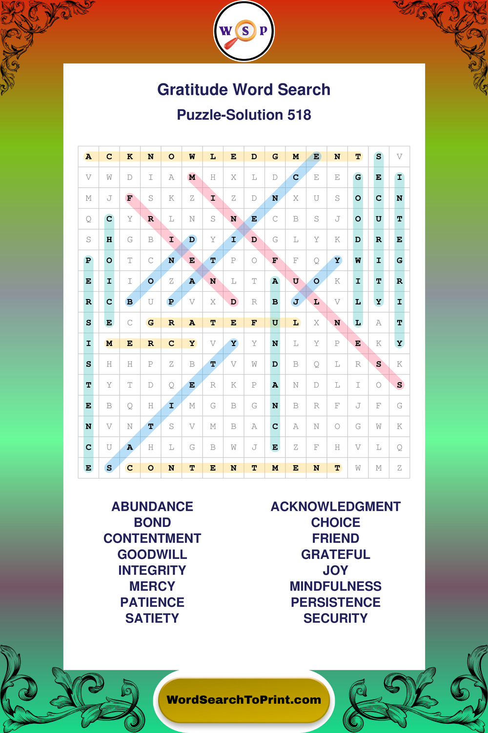 Browse our free large print Gratitude wordsearches below. All puzzles are printable and include solutions.