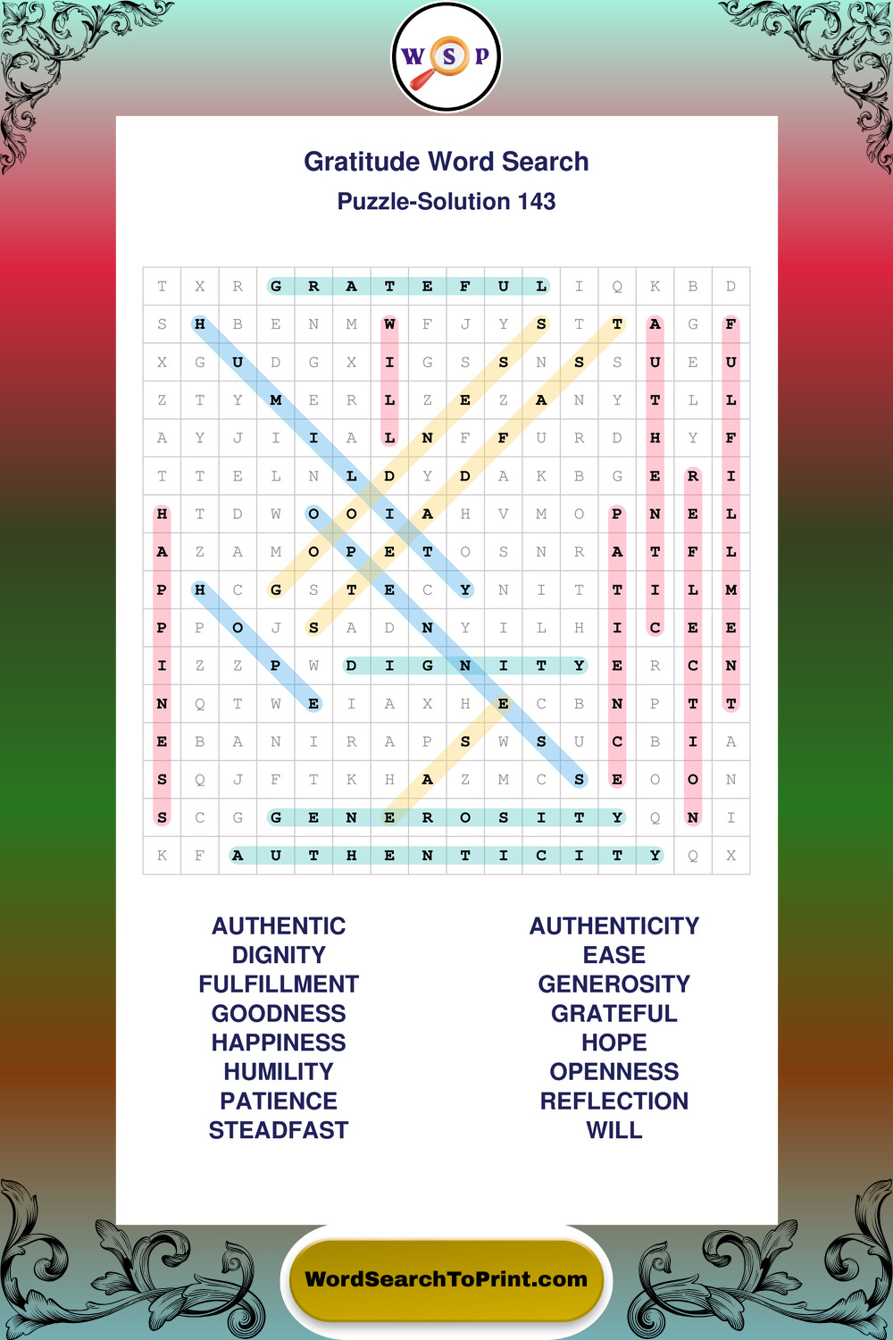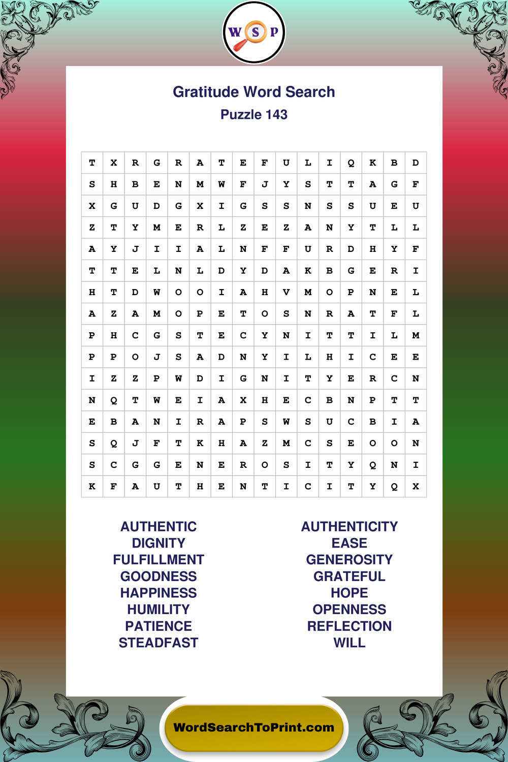 Gratitude Wordsearches