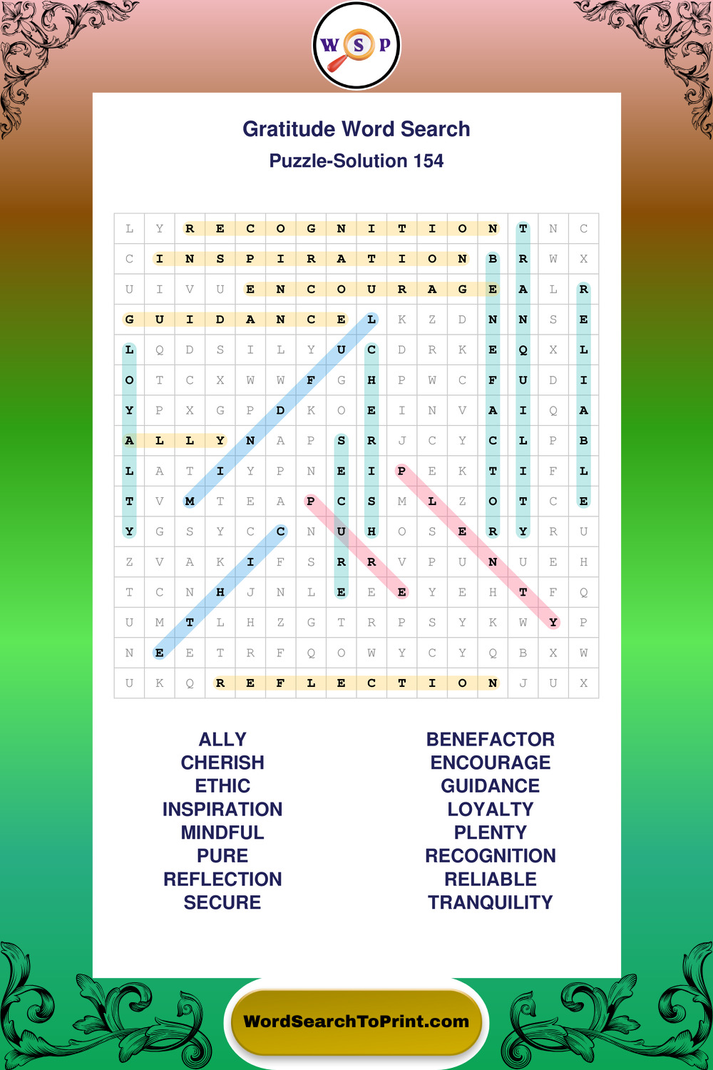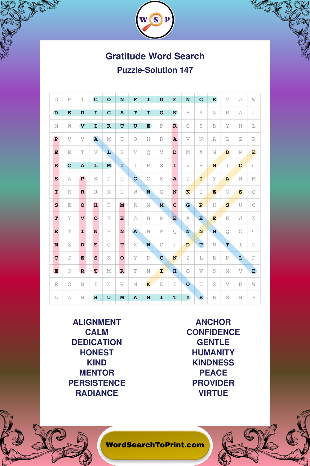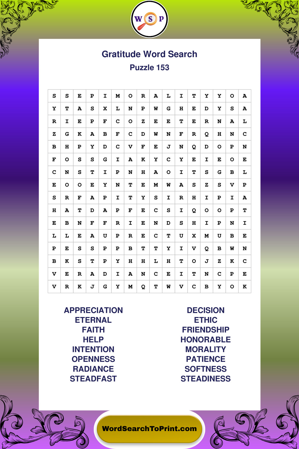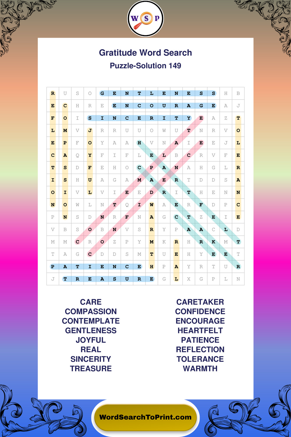 Browse our free large print Gratitude wordsearches below. All puzzles are printable and include solutions.