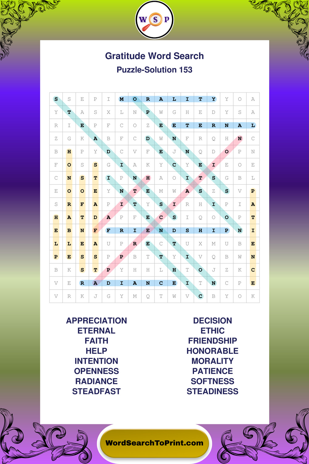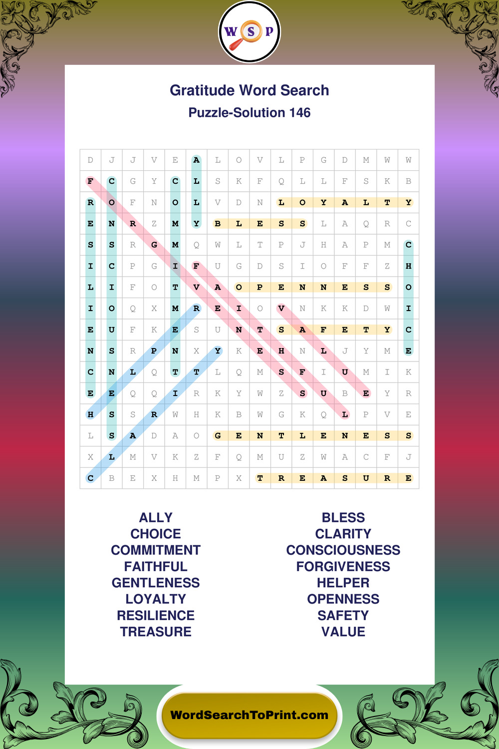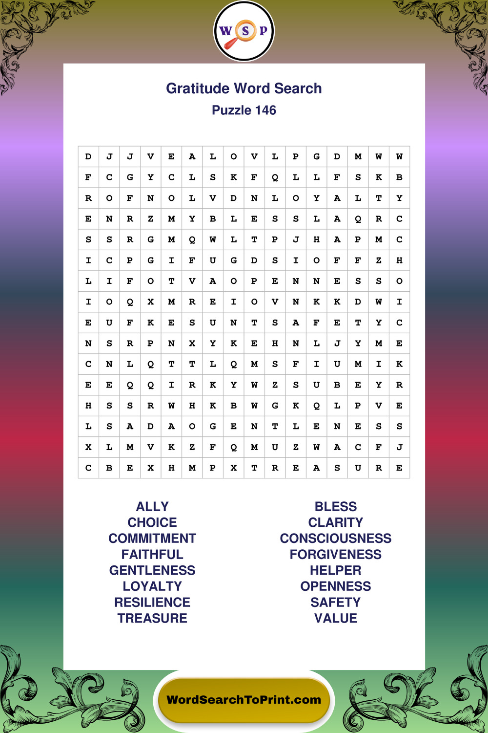Printable Gratitude Wordsearch Puzzles