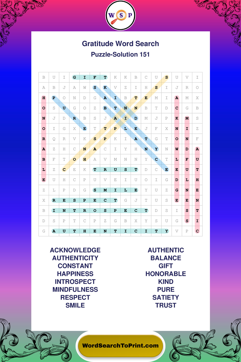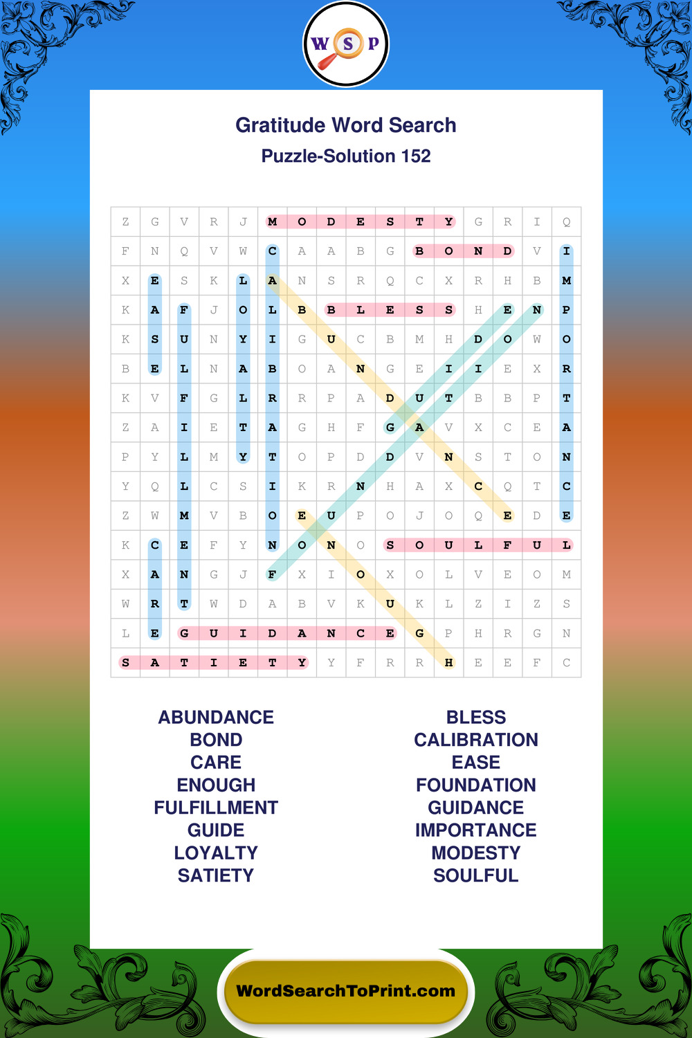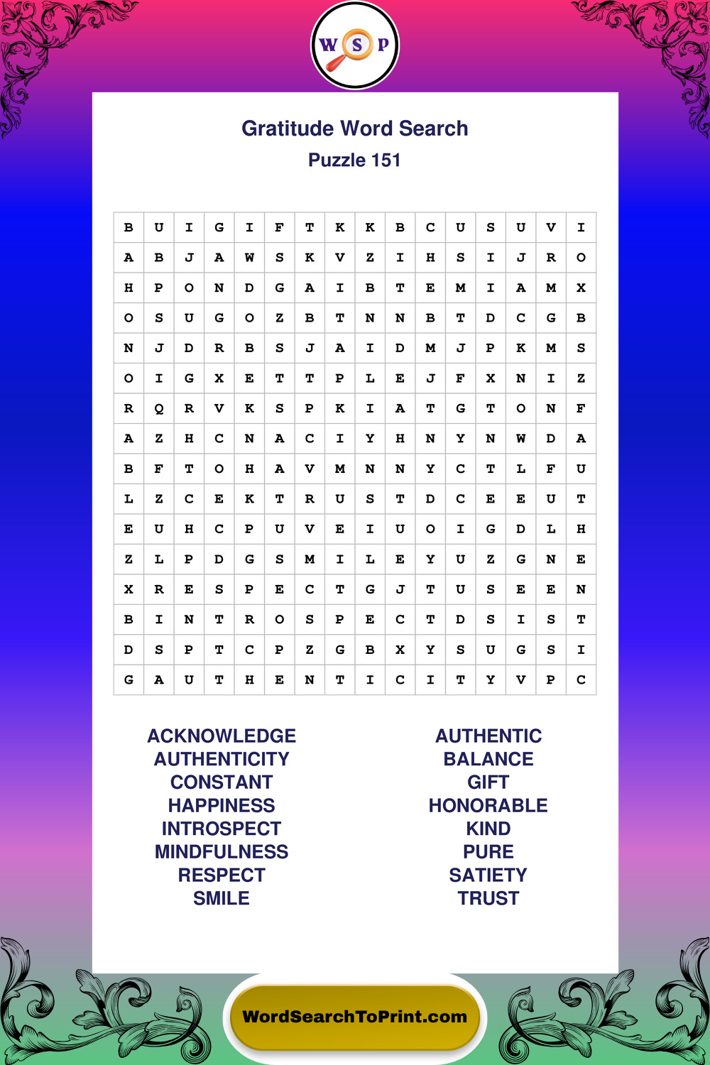Printable Gratitude Wordsearch Puzzles
