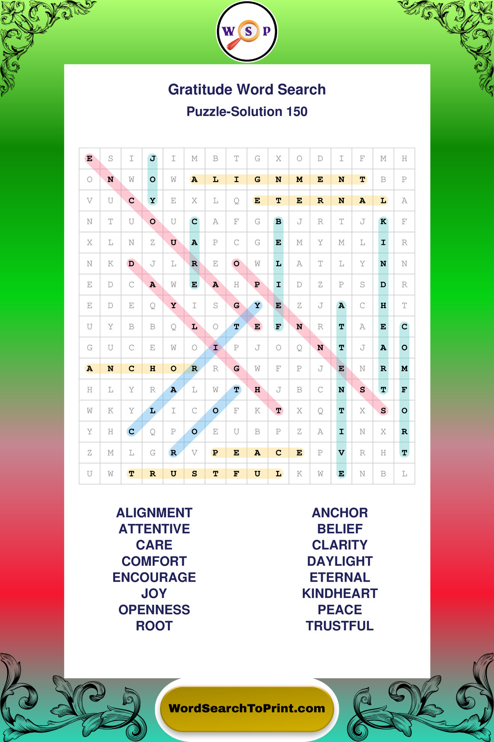 These puzzles highlight positive thinking, emotional awareness, mindfulness, and wellbeing concepts. They offer a structured and engaging way to explore this topic while strengthening concentration and vocabulary recognition. You may also enjoy our Peace word search puzzles.