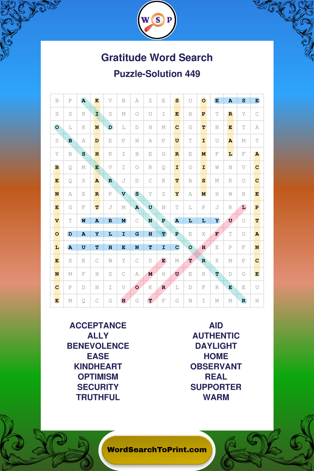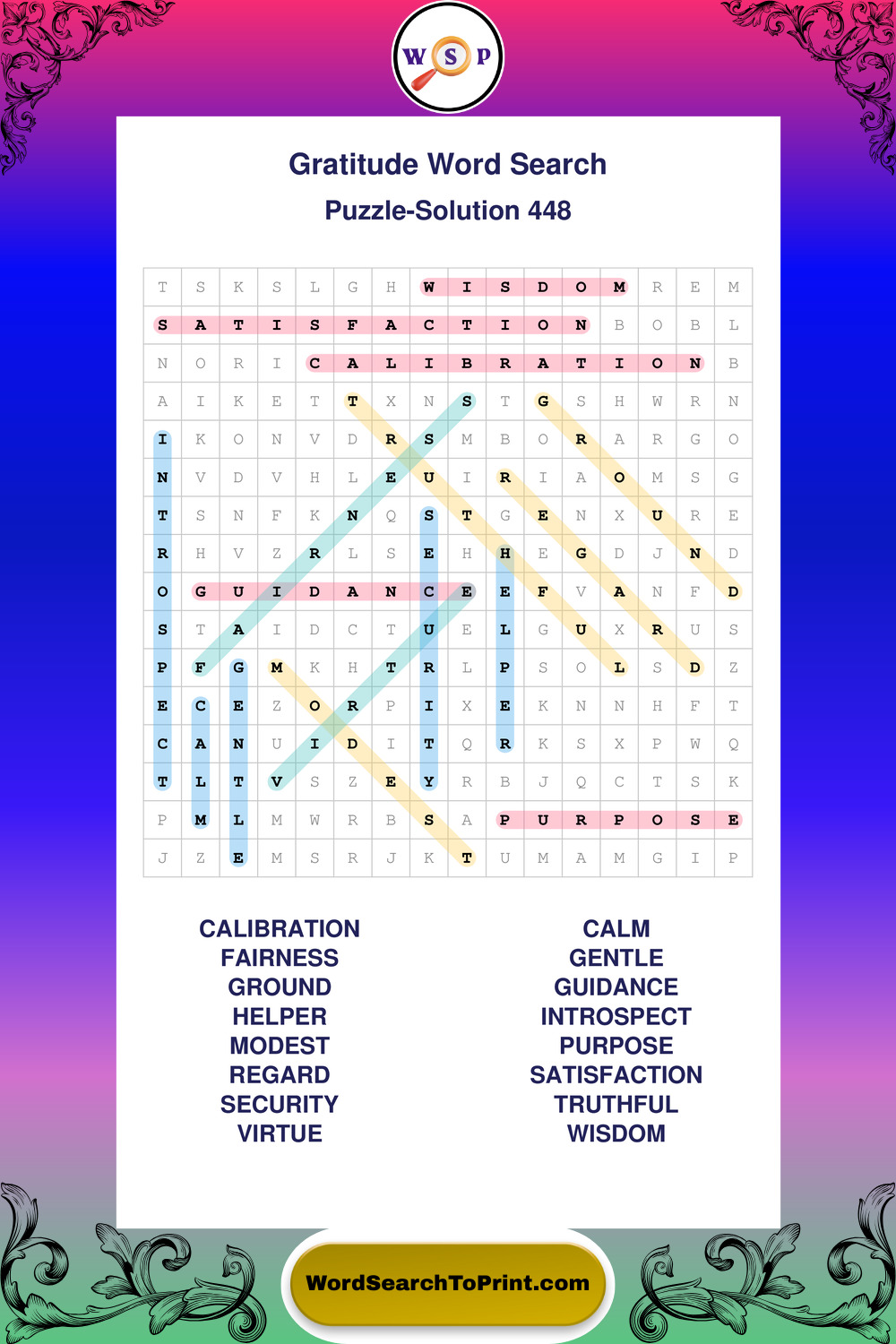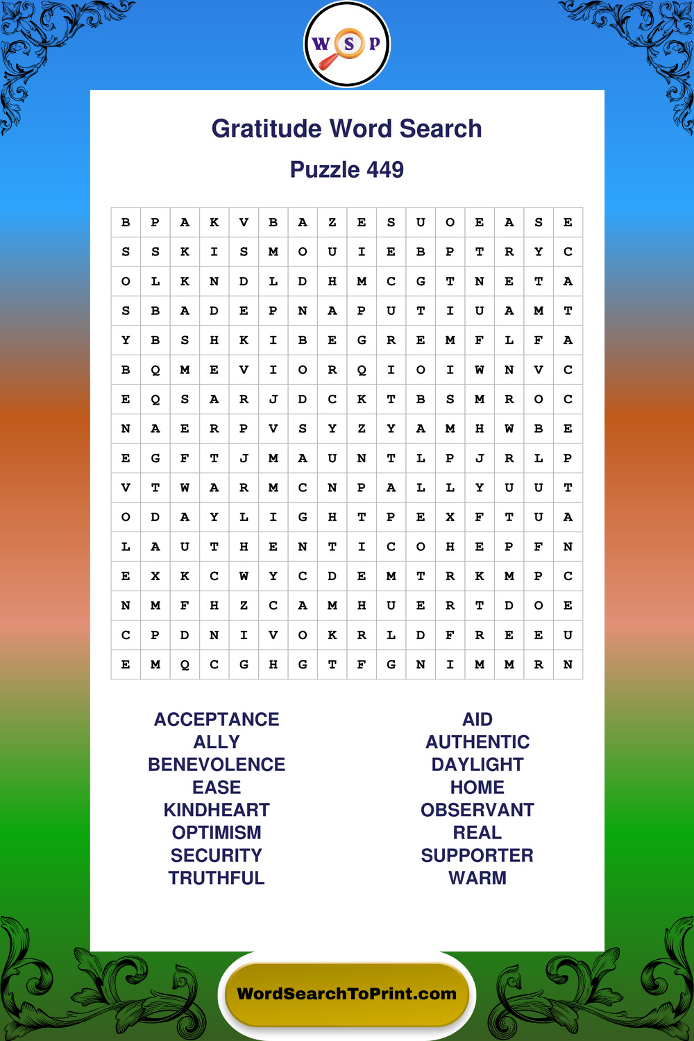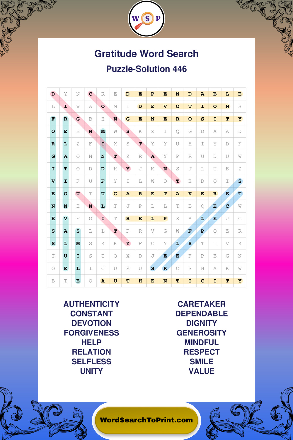 Browse our free large print Gratitude wordsearches below. All puzzles are printable and include solutions.