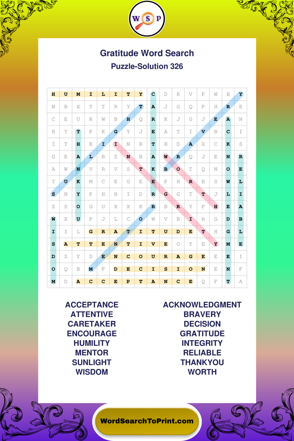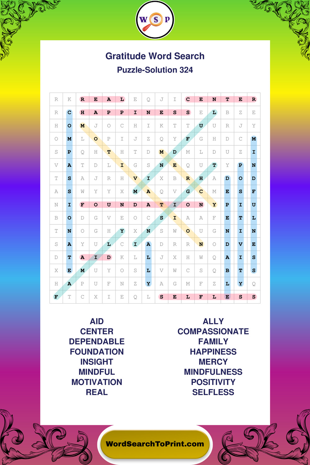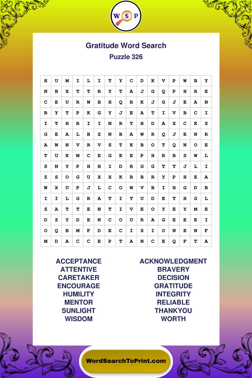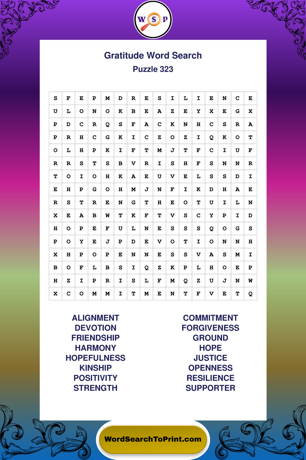 Browse our free large print Gratitude wordsearches below. All puzzles are printable and include solutions.