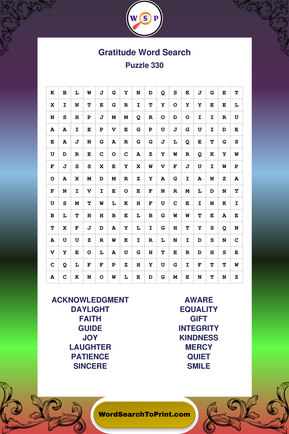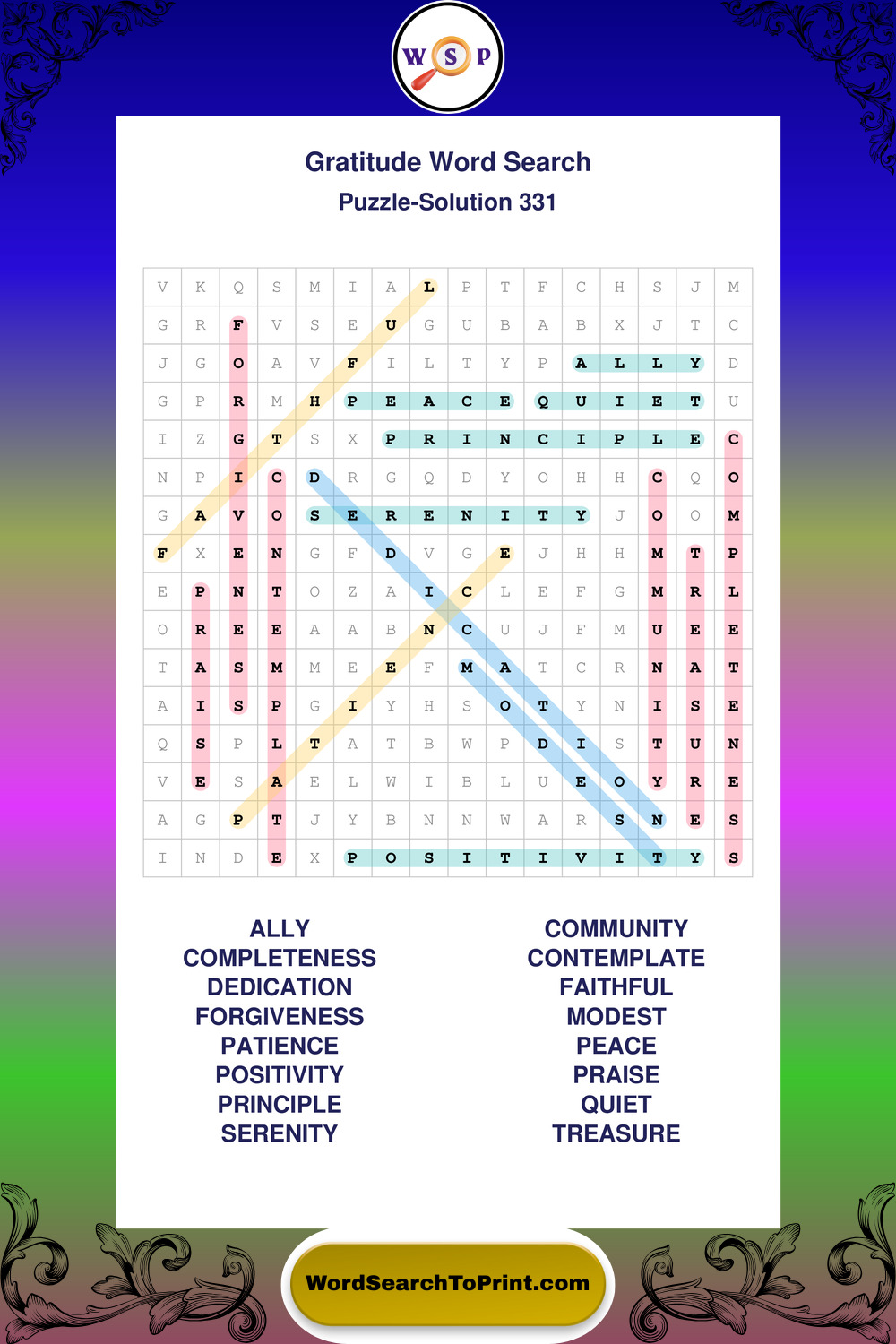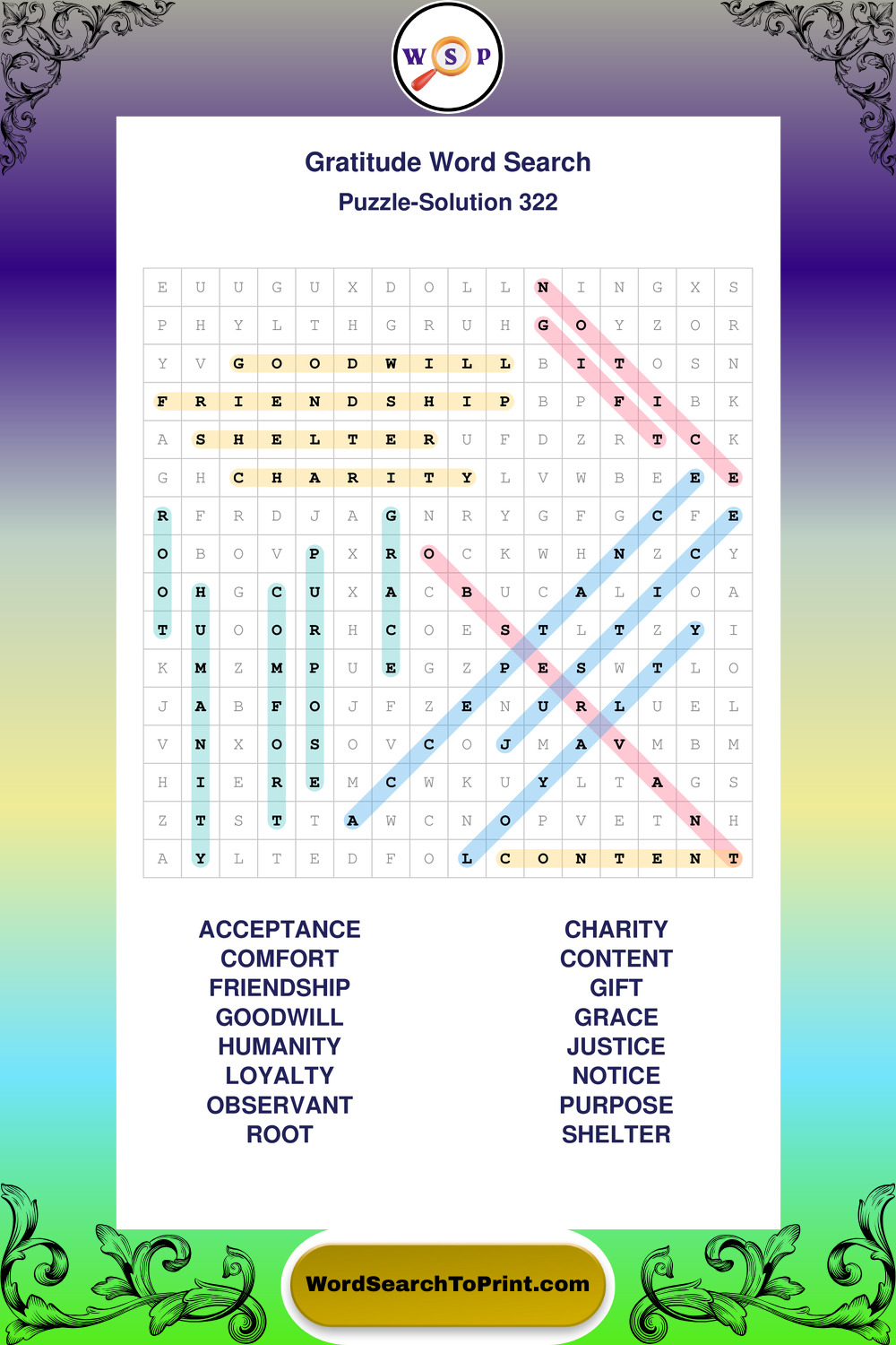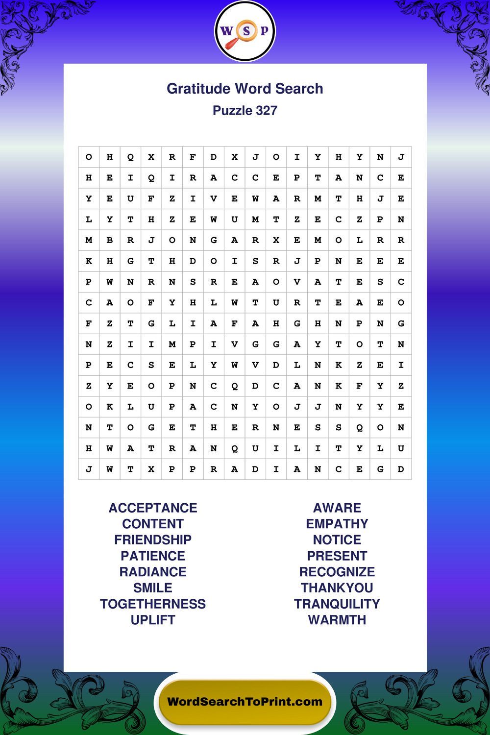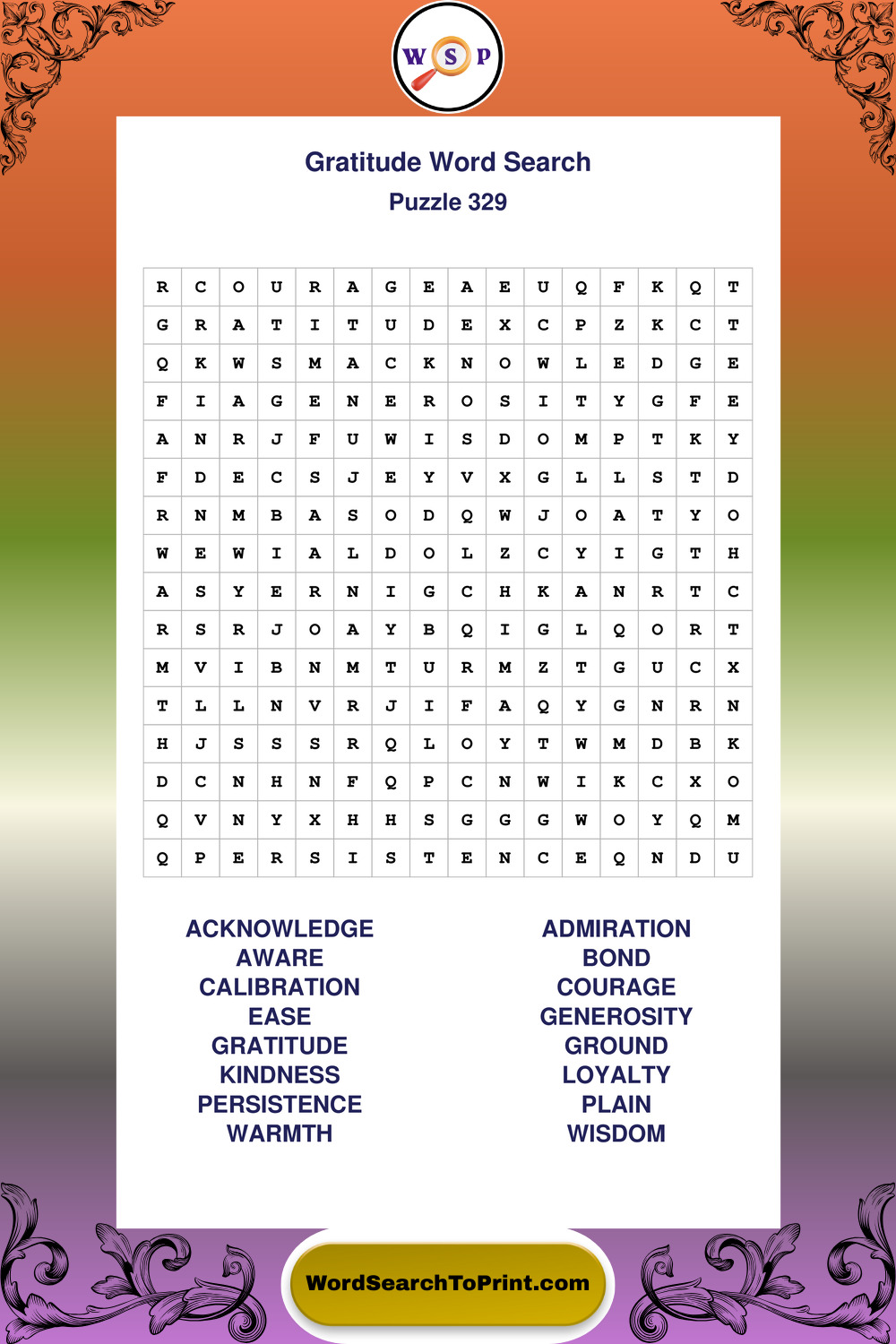 Browse our free large print Gratitude wordsearches below. All puzzles are printable and include solutions.