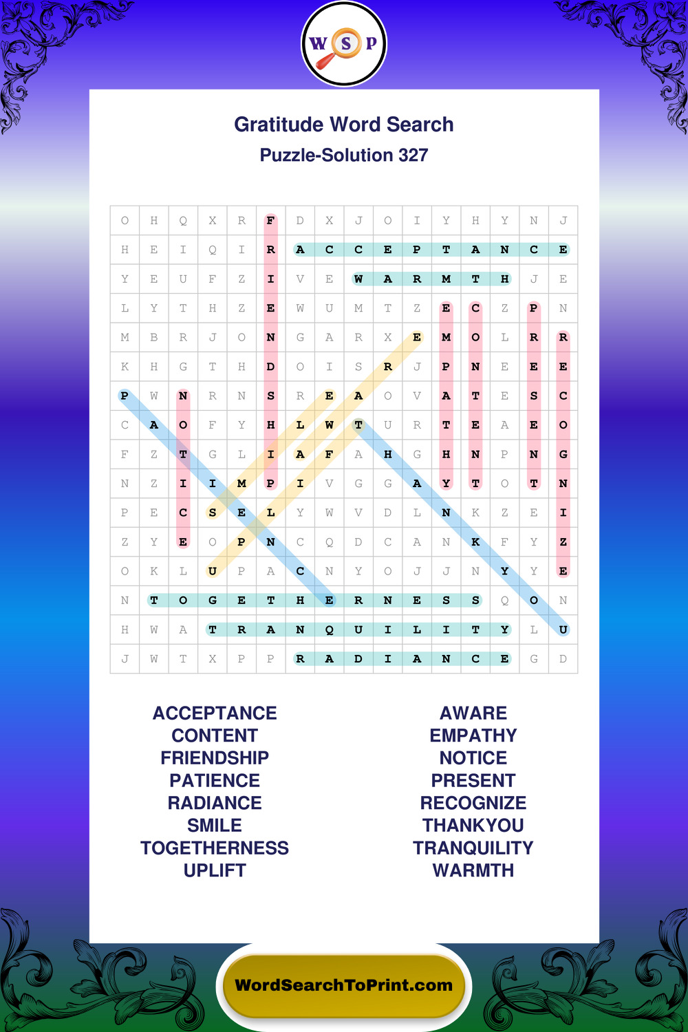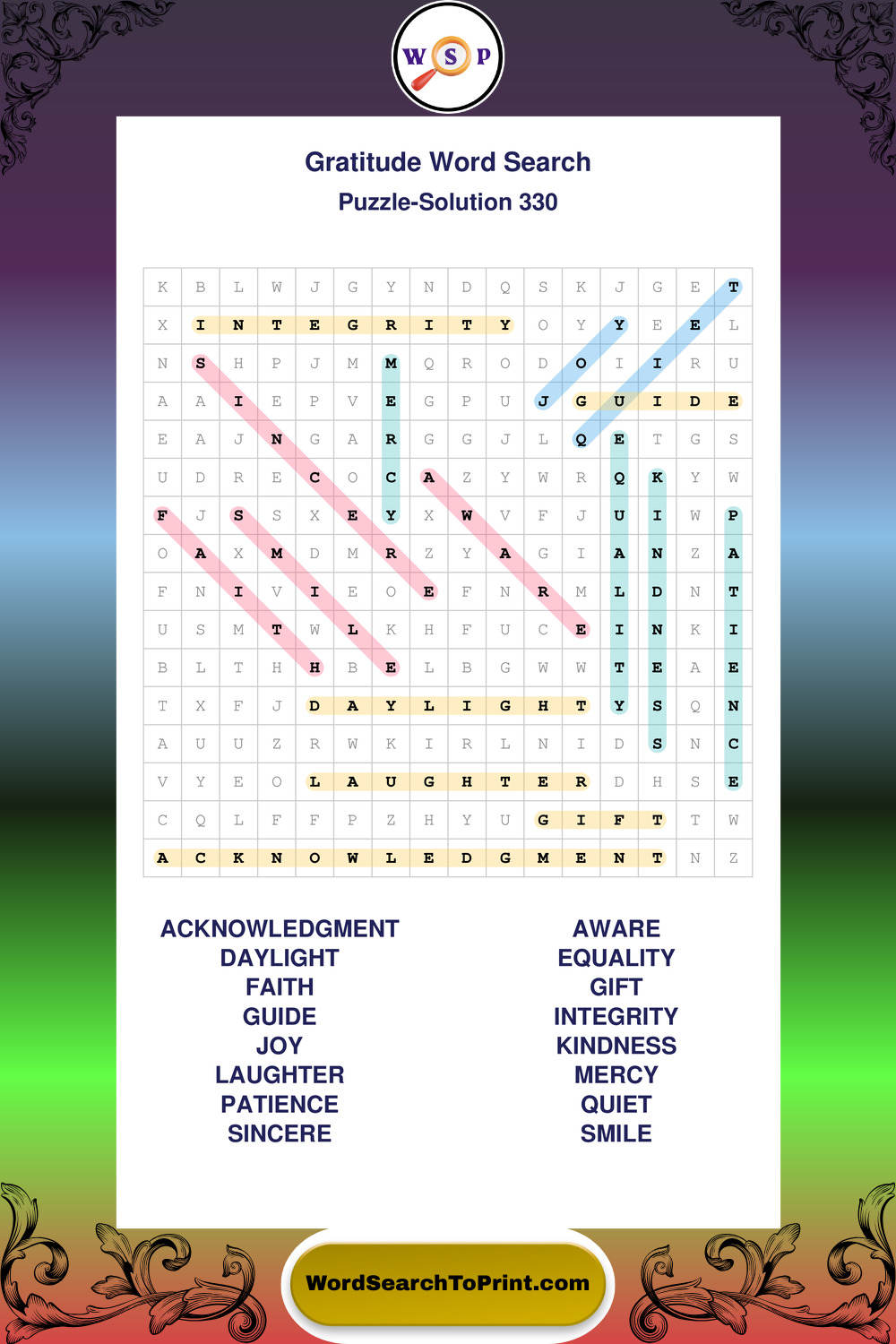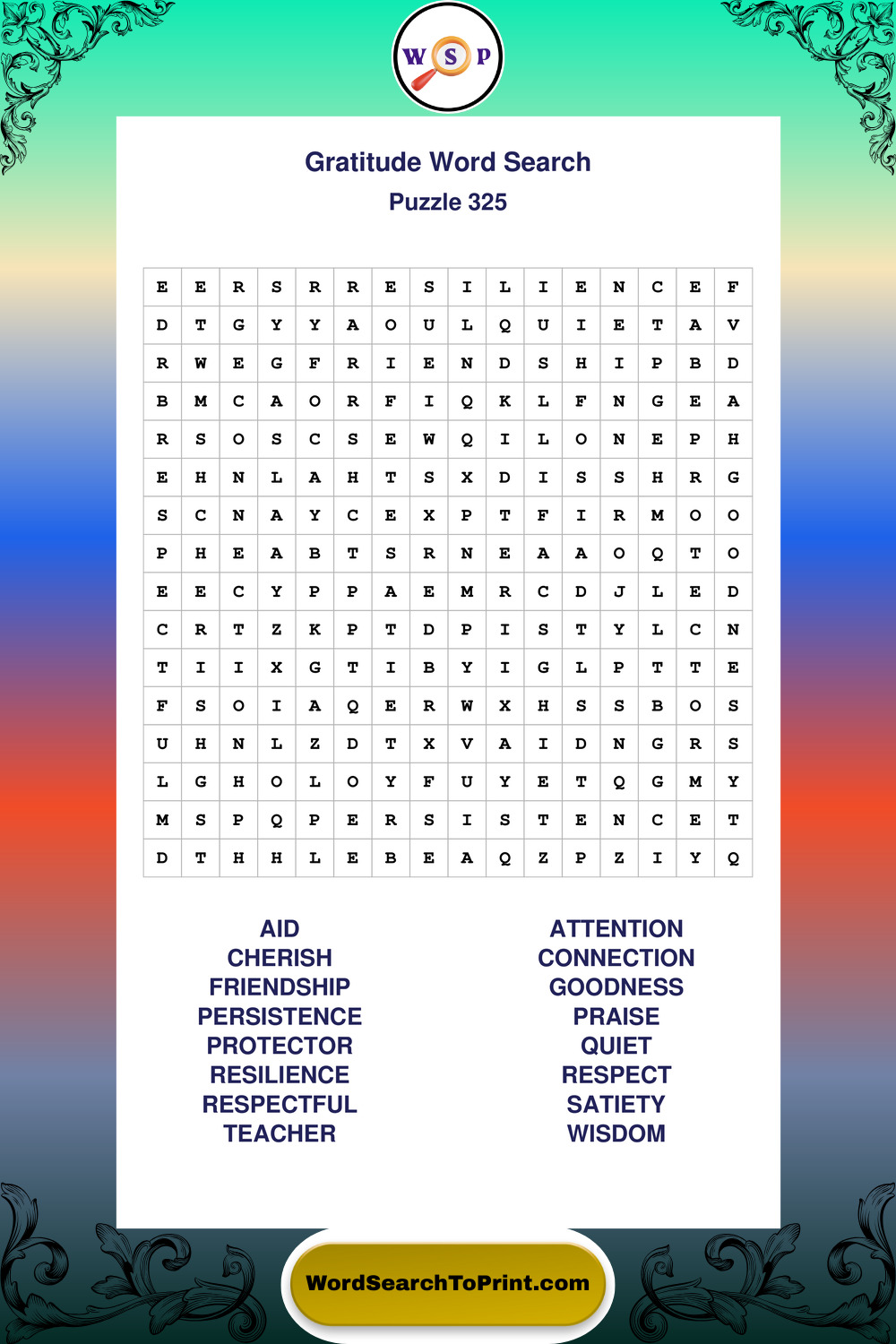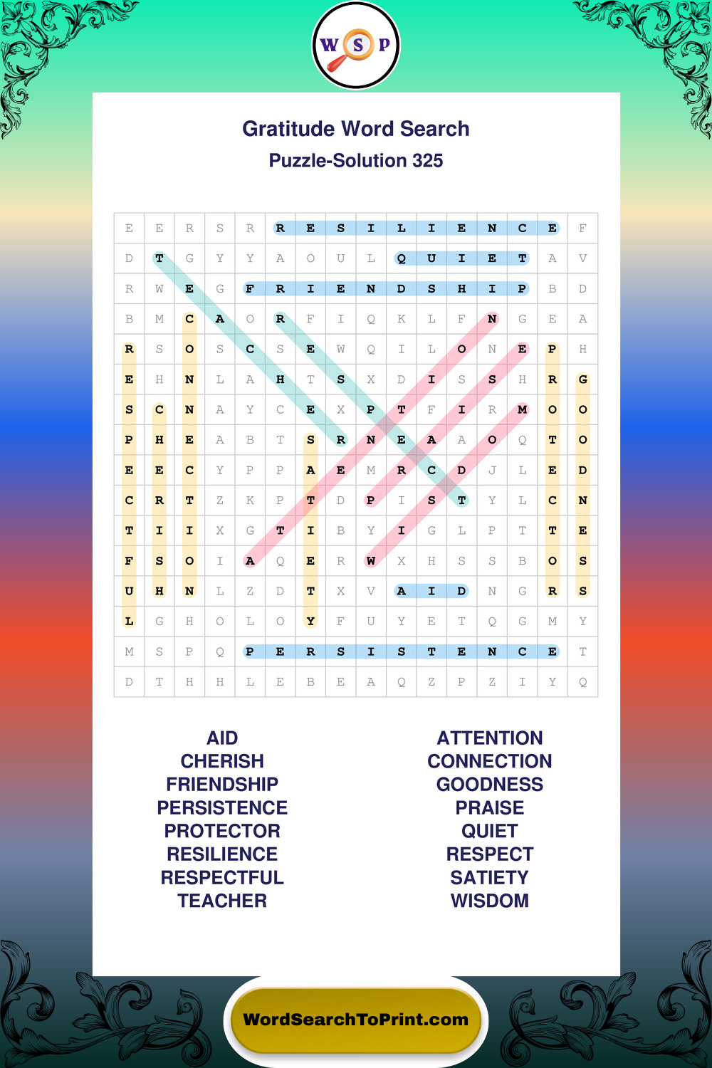 Browse our free large print Gratitude wordsearches below. All puzzles are printable and include solutions.