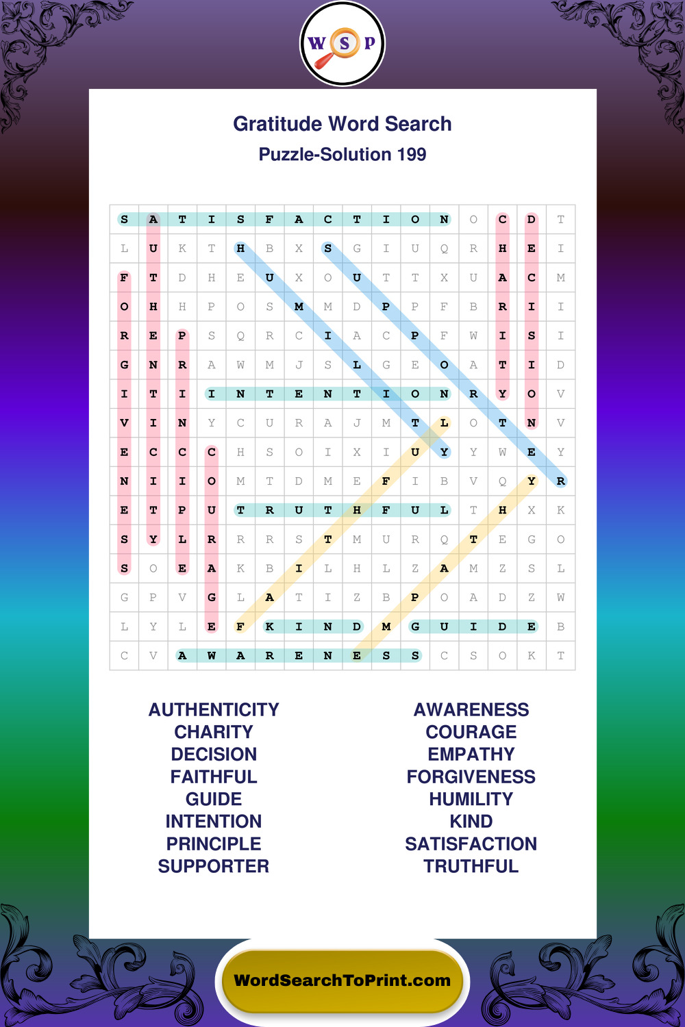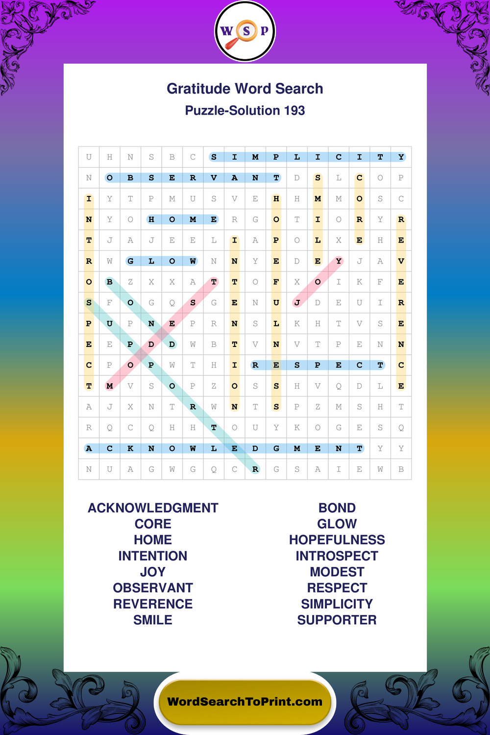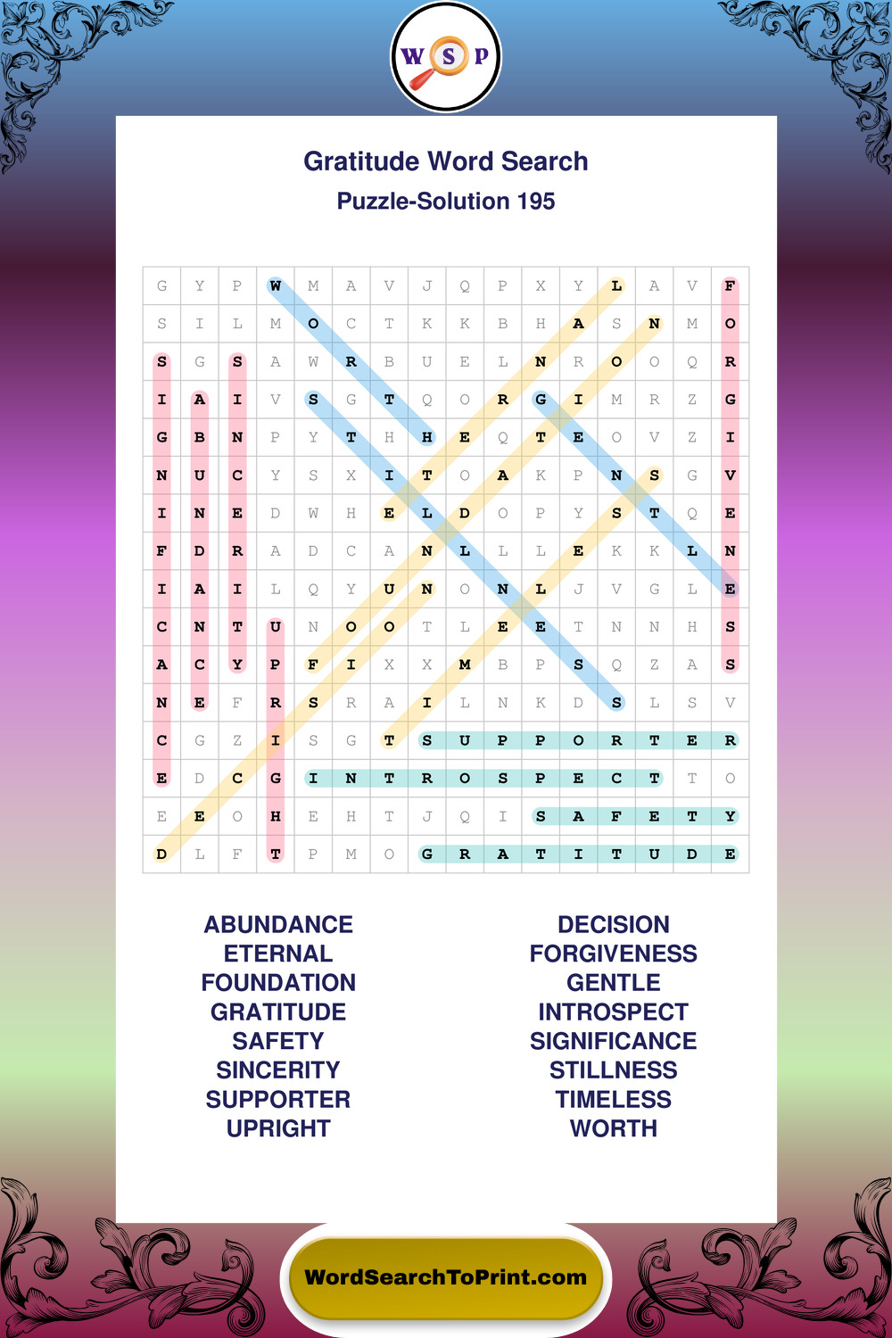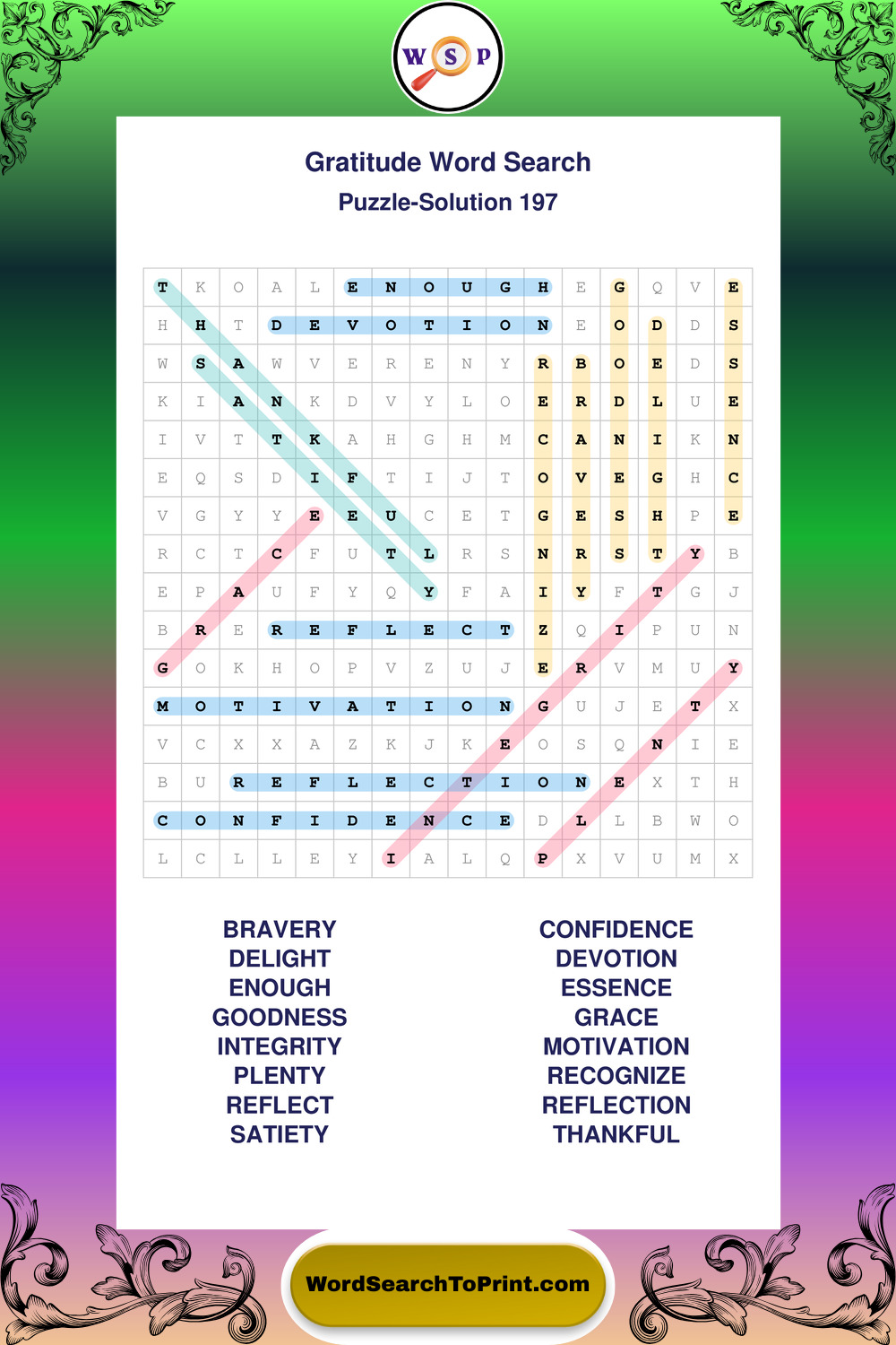 Browse our free large print Gratitude wordsearches below. All puzzles are printable and include solutions.