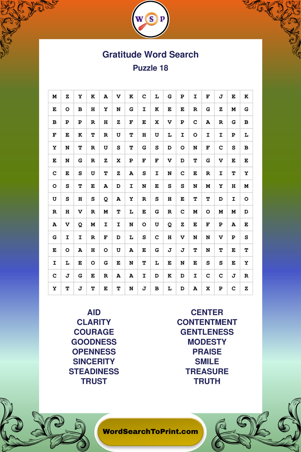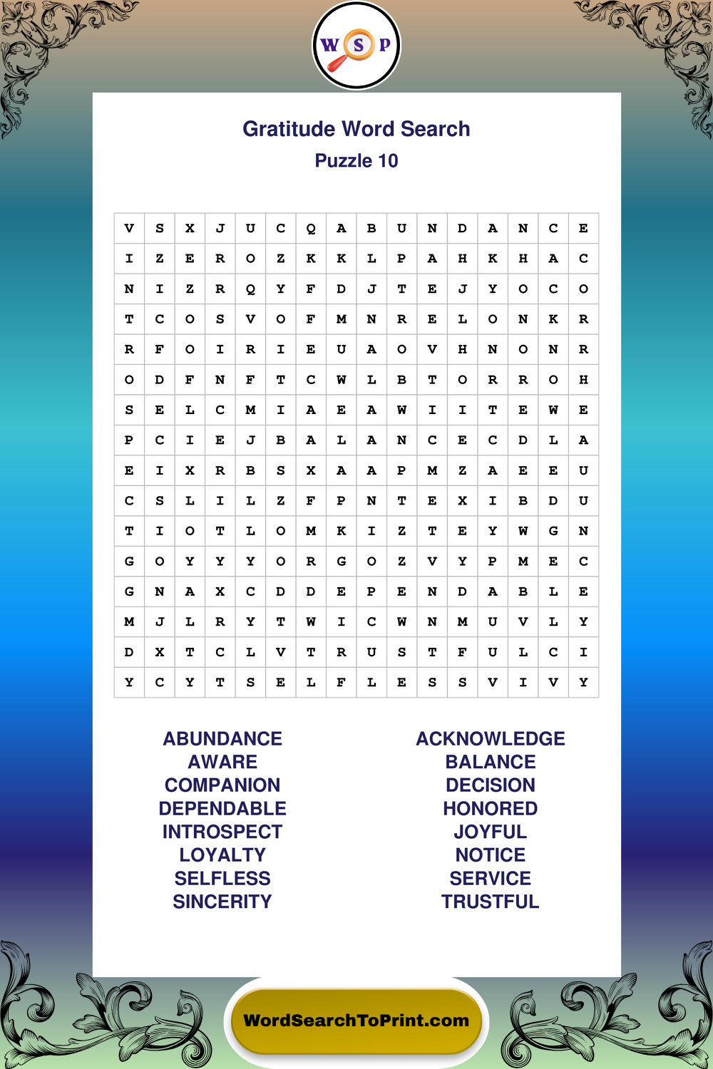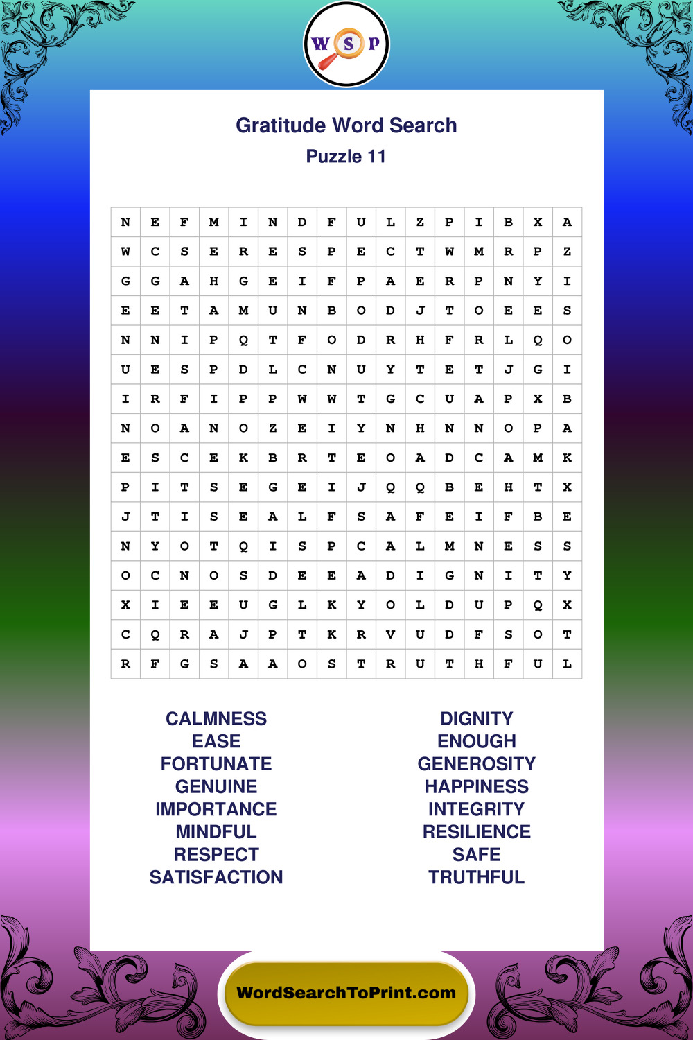 Printable Gratitude Wordsearch Puzzles